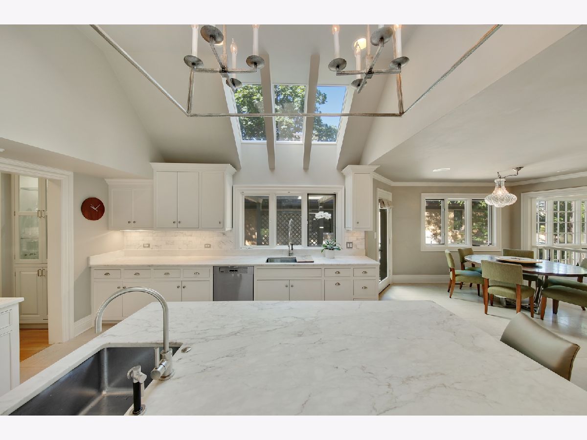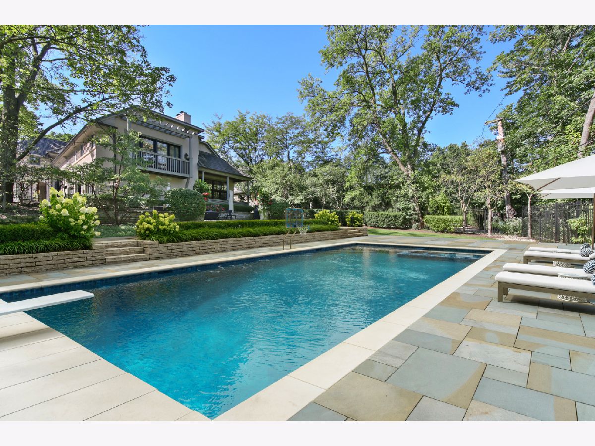 This transitional Southeast Hinsdale property embraces modern conveniences while upholding the highest quality craftsmanship. The foyer opens to a stunning staircase and dramatic living room flooded with natural light. The kitchen is bright, with white cabinets, Calacatta marble counters and island with inlaid sink. A large breakfast nook connects to the kitchen and overlooks the family room. The family room showcases incredible millwork in its unique 2-story design. The wood-paneled study and dining room round out the formal entertaining space. The master suite is picturesque, with a fireplace, terrace overlooking the grounds, and spa-like master bathroom with walk-in shower, soaking tub and dual vanities. Three additional en-suite bedrooms complete the second floor. The basement includes a handsomely designed rec room and a separate play room. A stone patio and pristinely maintained yard complete the space. Within walking distance of town and train. Tesla charging station in garage. Pool is a rendering. Pool installation is subject to village approval.