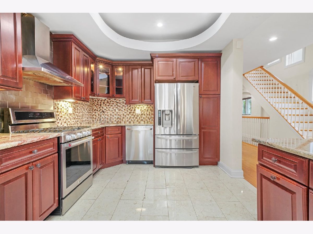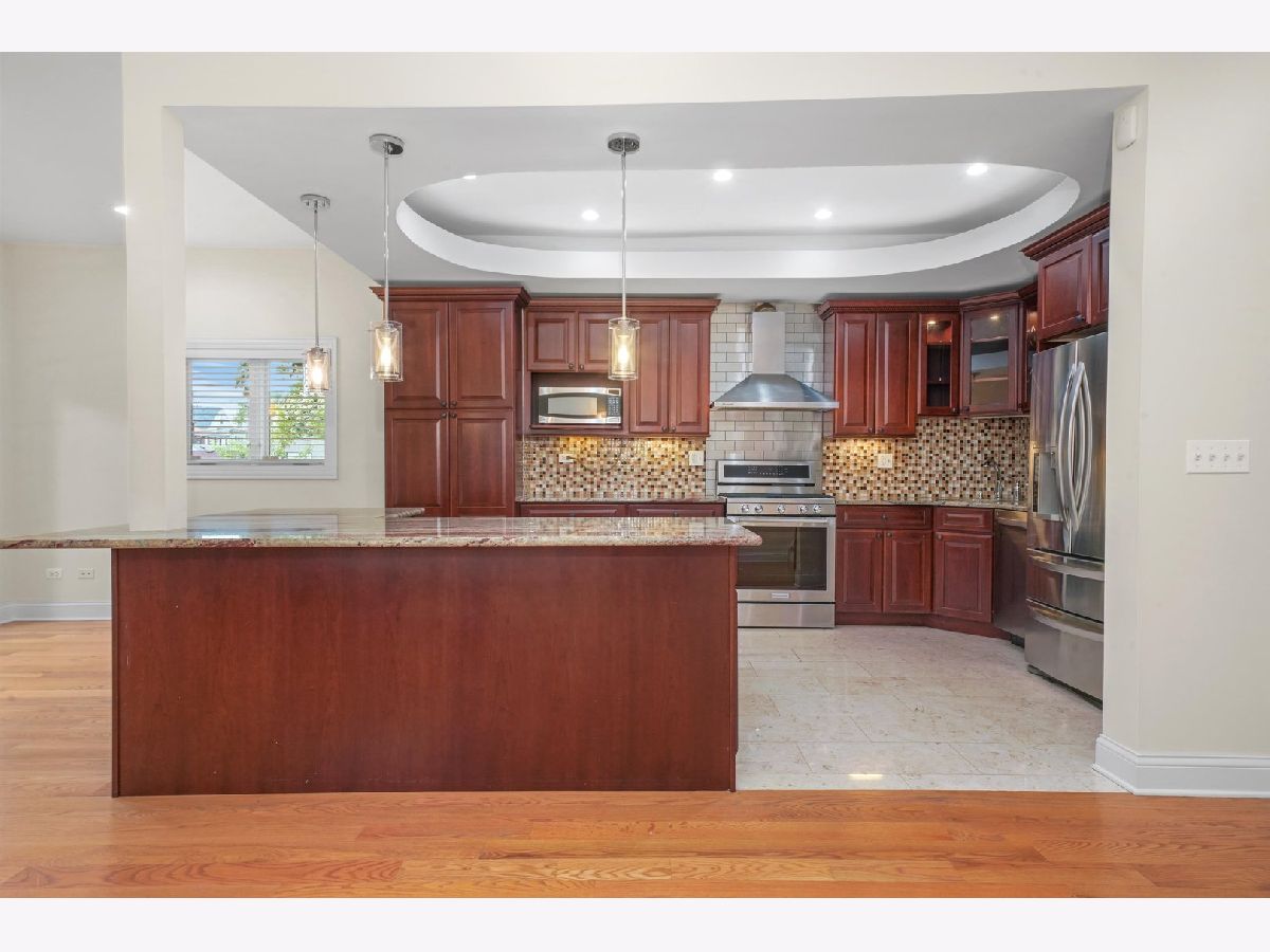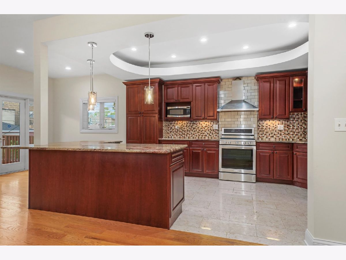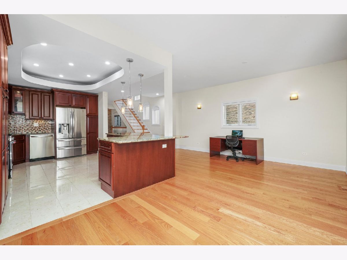 Sunshine, quality construction, and solid brick define this Custom Built 5-bedroom 3.5 bath, 3850 Sq ft home in Chicago. Upon entering through the mahogany and glass-adorned front doors, you'll enter a unique open concept living space where your design and decoration desires are limited only by your imagination. The oversized lot is accompanied by great sheets of sunlight throughout the home- beams amplified by the southern side-facing driveway. Well-appointed spaces include a large living area and formal dining room, illuminated by an ornate stonework-covered gas fireplace. After leaving the living area, you'll pass a powder room, situated alongside the main hallway. If you keep going, you'll reach the family area, breakfast area, and kitchen with custom cabinets & granite countertops - all flowing seamlessly through the first floor. Head up to the second floor via the stairs and you'll find 4 well-appointed bedrooms including the primary bedroom. The sizable primary bedroom is a retreat from the rest of the home where you'll be pampered with an expansive space with 15-foot high ceilings, skylights, an electric fireplace, and French Doors that open up to a future balcony perched high above your new home. The primary bathroom comes with a standing glass shower, jacuzzi, double vanity, and skylight- helping you get ready for the day in style and comfort. The home's lower level boasts numerous windows, bringing in a great deal of natural light. On the lower level, you'll also find another bedroom, full bathroom, dry bar, laundry area, and a wide-open recreational area, all tied together by an ornate gas fireplace that'll keep you warm on cold nights. The story doesn't end with the interior, this home's multiple outdoor spaces help you get the most out of your extra-wide lot with a side driveway, and back doors open to a nice wooden deck. A large two-car garage with extra storage space rounds out the rest of the exterior space, with additional room behind the garage for extra parking or even a basketball hoop or outdoor rec area. However, the home itself is just half the story. Real estate is all about location, location, location, and 4458 N Tripp Avenue sits tucked away within a web of one-way streets. The house is easily within walking distance to Belding Elementary School, Blue Line and Metra transit stops. You'll also benefit from easy access to the I-90/94 Expressway with O'Hare Airport, Downtown, and Lake Michigan all within a 20-minute drive of the property. Additionally, there are plenty of restaurants and shopping options nearby.