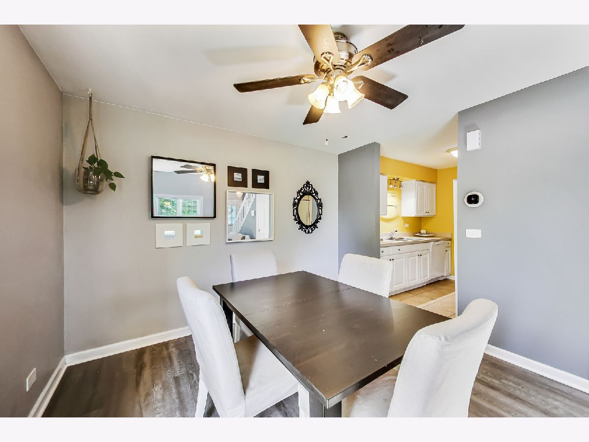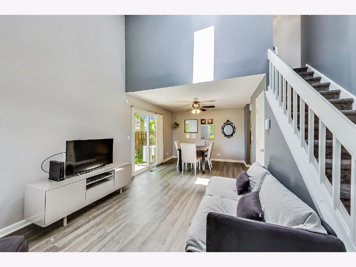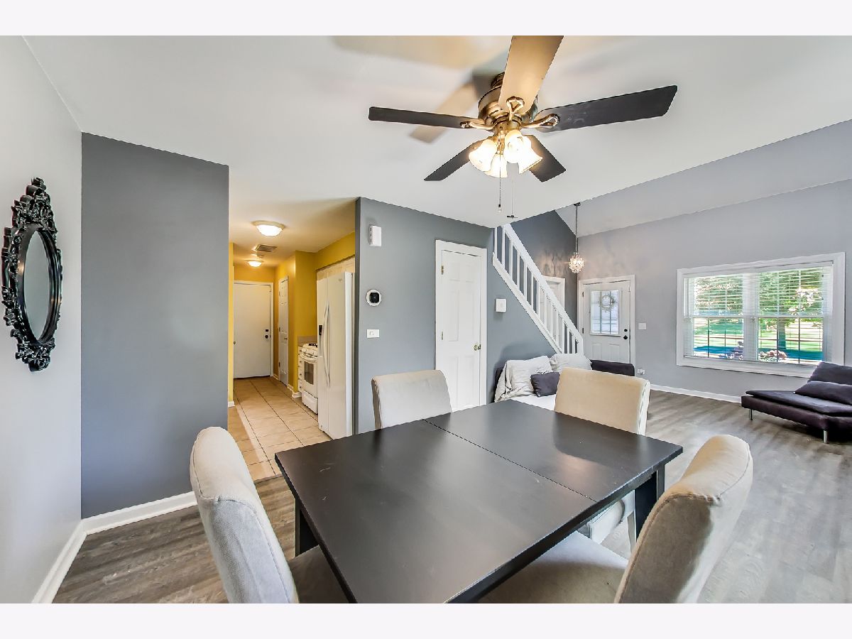 Beautiful south-facing end unit three bedrooms 2.1 bath townhome in Gurnee's Kensington Subdivision. The unit features a galley-style kitchen, dining room, and front room on the main floor with a 1/2 bath, side-by-side newer full-sized laundry, and garage access. Exposed staircase and new stylish laminate flooring. The patio door off of the dining room brings the outside in. Large 1st-floor primary bedroom ensuite. The second floor features two additional bedrooms and a full bath. The seller has recently installed all new thermal windows and patio doors & an updated A/C unit. Picturesque views of the pond out your window and a super convenient location, a short walk to River Trail Park ad River Trail School (K-8). Easy access to expressways.