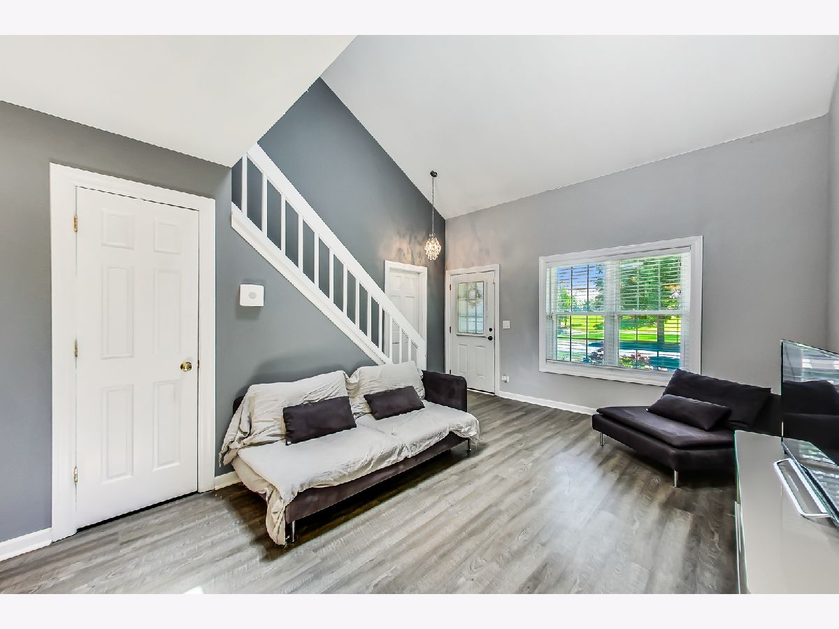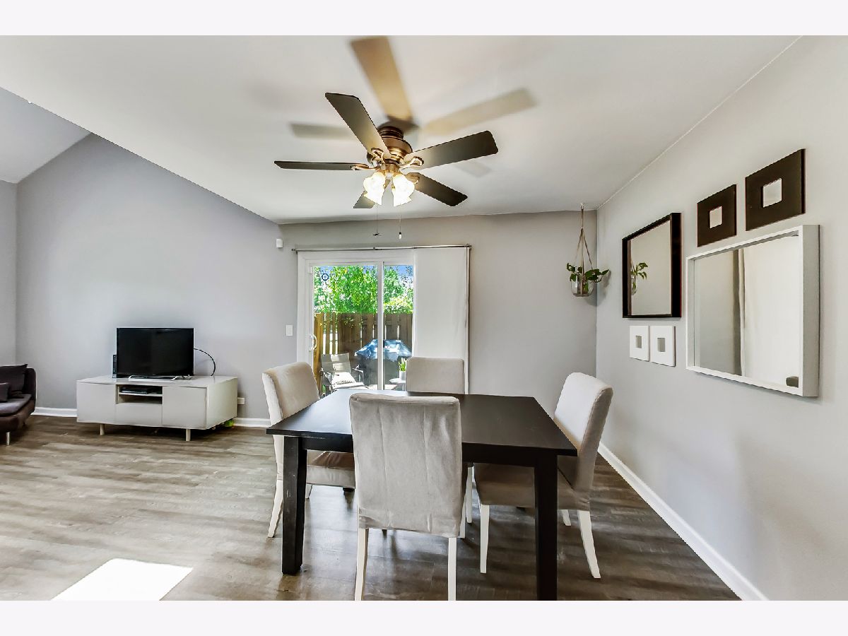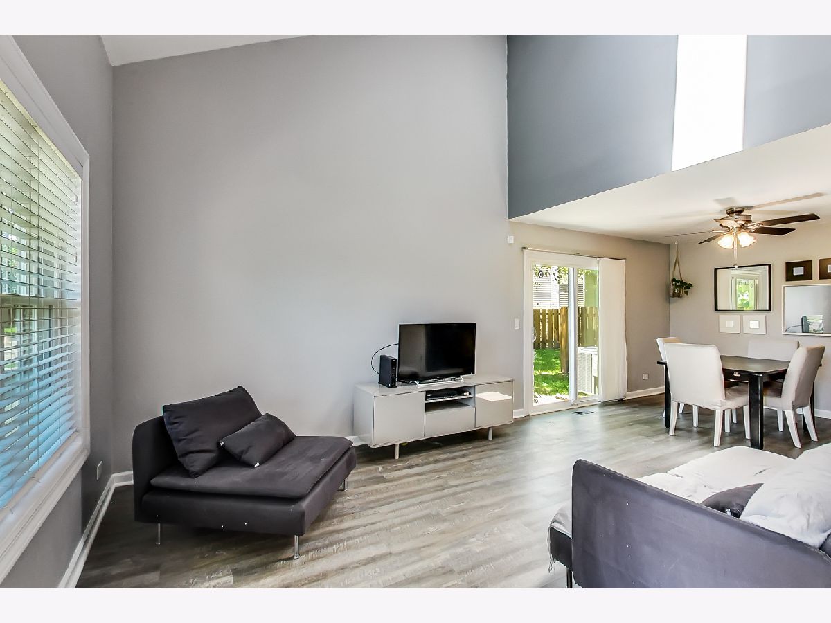 Beautiful south-facing end unit three bedrooms 2.1 bath townhome in Gurnee's Kensington Subdivision. The unit features a galley-style kitchen, dining room, and front room on the main floor with a 1/2 bath, side-by-side newer full-sized laundry, and garage access. Exposed staircase and new stylish laminate flooring. The patio door off of the dining room brings the outside in. Large 1st-floor primary bedroom ensuite. The second floor features two additional bedrooms and a full bath. The seller has recently installed all new thermal windows and patio doors & an updated A/C unit. Picturesque views of the pond out your window and a super convenient location, a short walk to River Trail Park ad River Trail School (K-8). Easy access to expressways.