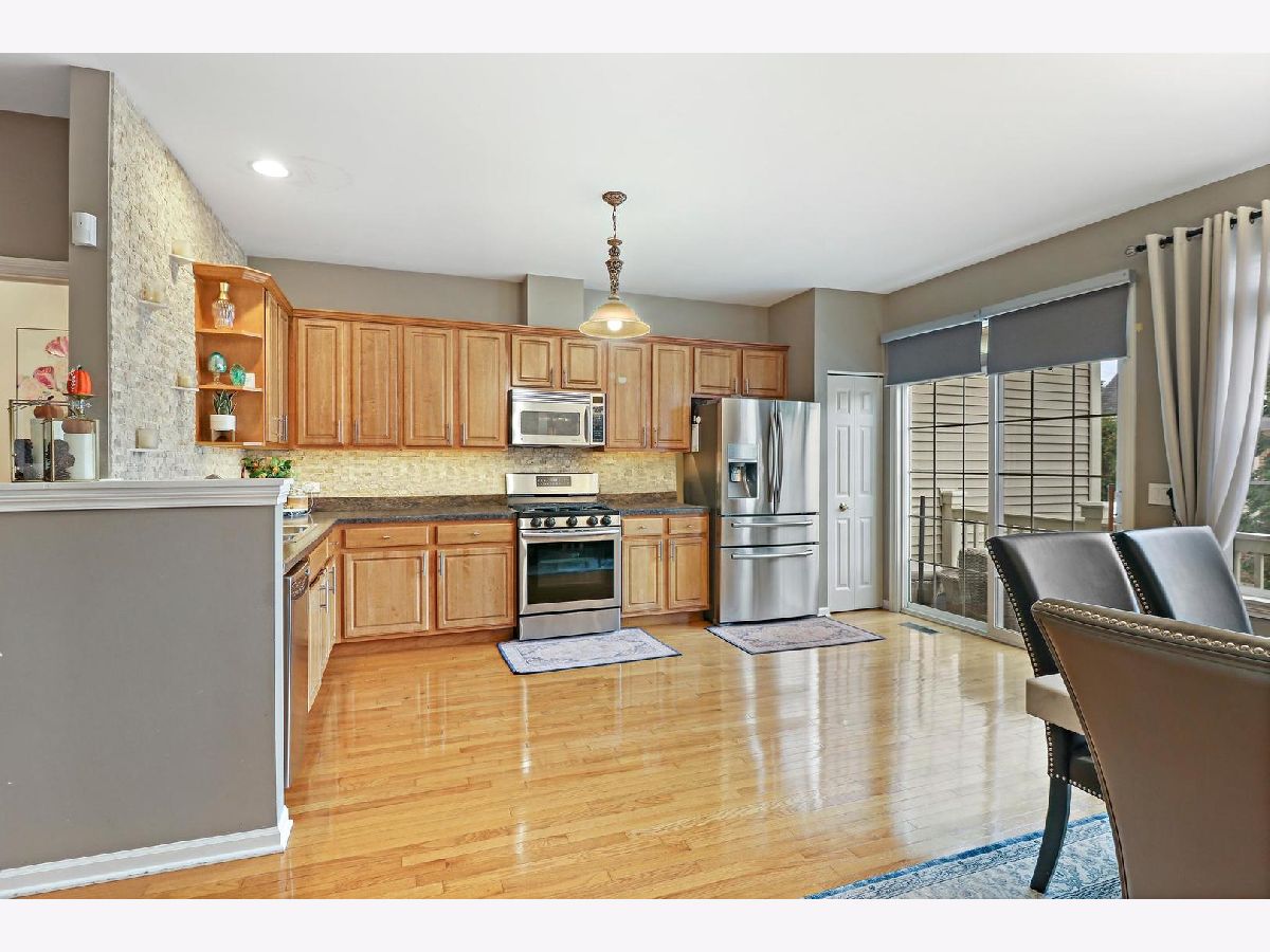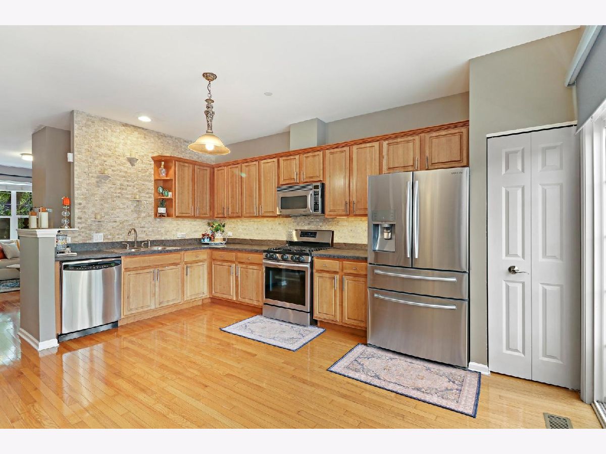 This fabulous, charmingly renovated & beautiful 3 bedroom & 2.5 bathrooms Bartlett unit features open spaces, light & bright windows with natural light streaming in & vaulted ceiling's. You will be amazed at the wonderfully updated kitchen with stone backsplash, newer light fixtures, all newer stainless steel appliances plus a separate pantry. Hardwood floors throughout main, 2nd and all stairs. Second level provides spacious master bedroom with full bathroom & recently updated walk-through closet, one additional bedroom & one additional full bath. Lower level features additional bedroom for guests or home office and large storage closet across from garage entrance. Plenty of guests parking. Truly amazing property in a fantastic subdivision that has so much to offer! Everything has been done for you on all 3 floors. Walk to Downtown Bartlett & Metra Station in 15minutes or less. Convenient to numerous parks, shopping & dining. You don't want to miss this one!!!!
