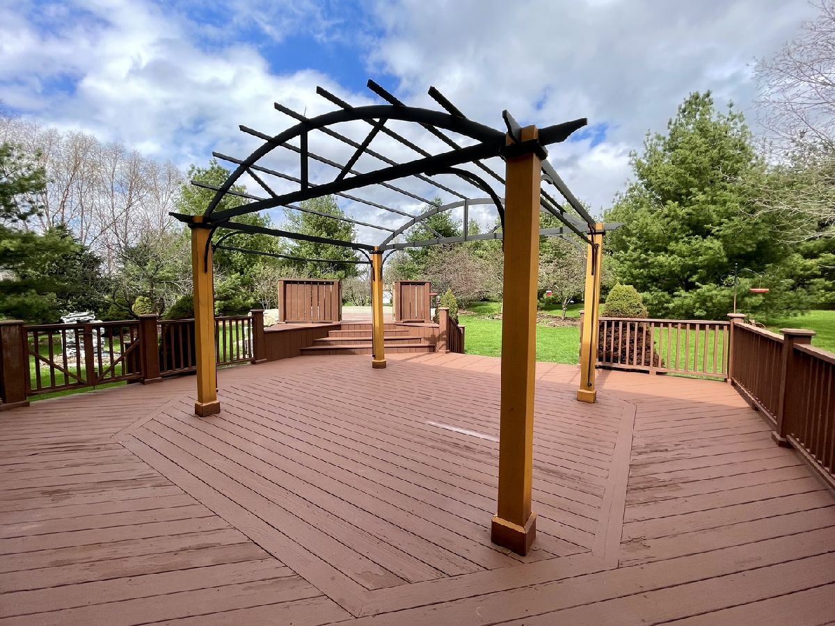 This home has a lot to offer if you're looking for space and privacy! Many mature trees outlining the perimeter on this 1.08 acre lot. The living room with vaulted ceiling has an abundance of windows that let the light pour in. Large chef's kitchen with granite countertops, stainless steel appliances, hardwood floors and center island, all open to eat-in area and continues into family room. Enjoy completely private views out to the large back yard and nature! The family room has a brick fireplace and wet bar as well. 4 generously sized bedrooms upstairs with very large master bedroom and bathroom with vaulted ceiling. The master bath leads to two walk-in closets! Fully finished entertainer's basement with pool table, full bathroom, and extra basement bedroom. Could re-purpose basement bedroom to home gym, game room, or bonus room. Unfinished utility room has plenty of built-in shelving for storage. Large 30ft, 4.5 ft deep above ground pool connected to the deck out back is meant for fun for a lot of people! Large deck with pergola. Huge 30 ft shed in back can store a large mower with plenty of extra room to spare. New roof and gutters in 2021. New pool liner and 25,000 BTU pool heater and gas regulator 2021. 3-car insulated garage with epoxy floors.