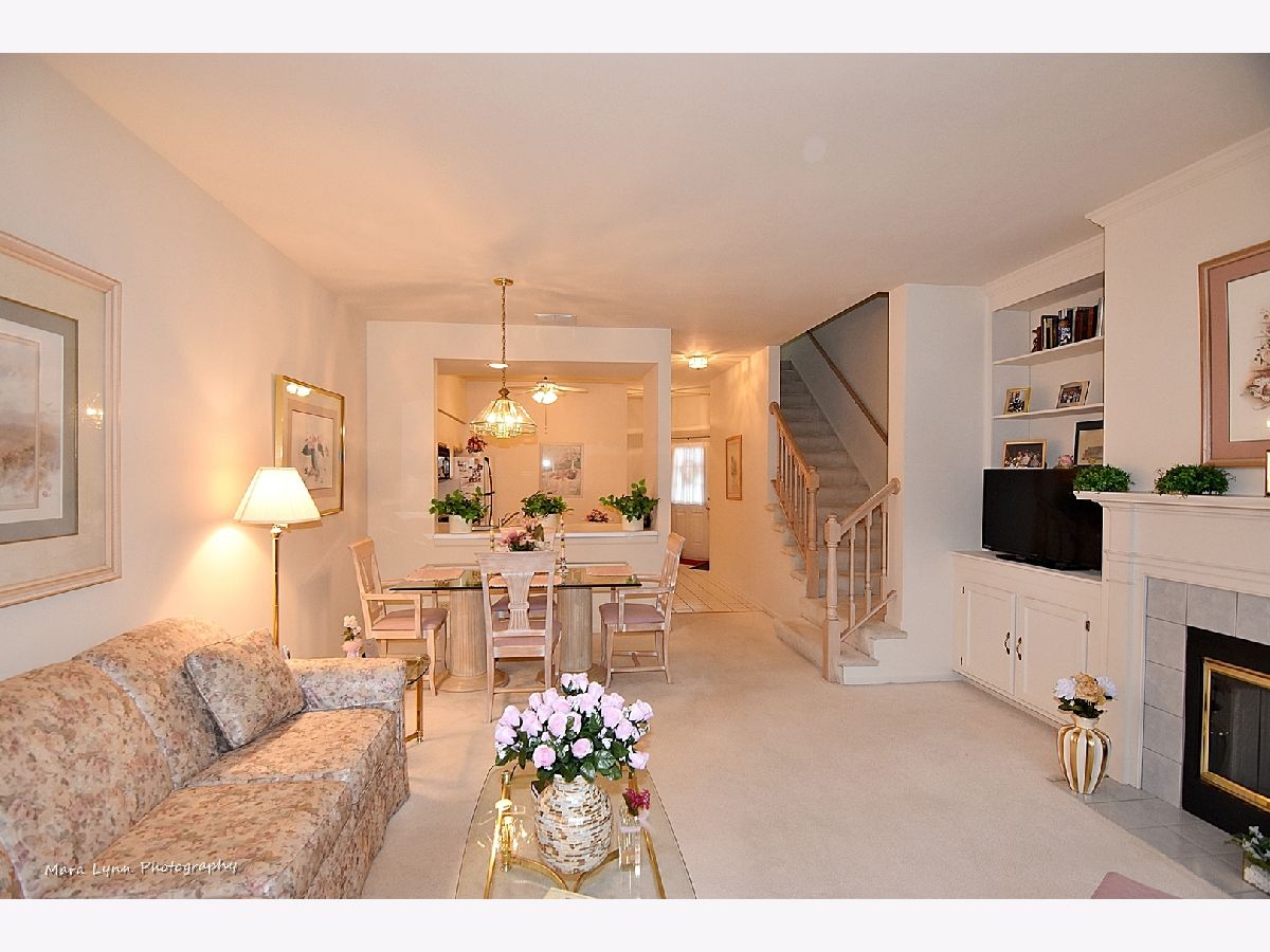 Wonderful location with peaceful views backing to spacious green-way. Sliding glass door leading out to patio allows you to appreciate the beauty. Unit has been freshly painted with neutral color and has 6 panel doors and white trim. There are custom built in shelving and cabinets around a gas fireplace, a ceramic foyer in kitchen and additional storage under stairs. 2nd floor has two bedrooms with vaulted master and laundry for convenience. New furnace, water heater, and storm door, tinted windows. Meticulously cared for this 2 bedroom 2.1 bath unit is close to shopping and restaurants.