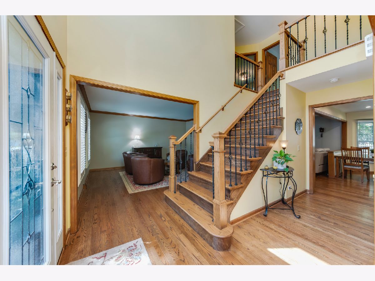 The opportunity is now to own this East facing, timeless Georgian style home in beautiful Oakhurst. This home is truly move in ready with all the major mechanicals updated. Stepping into the foyer you are greeted with the grand staircase updated with hardwood treads and wrought iron balusters. Hardwood floors flow throughout the entire first floor. Formal living room and dining room flank the foyer. The open concept kitchen and family room offer a perfect space for entertaining. The amazing kitchen remodel added maple cabinets, granite countertops giving you tons of work and storage space. The family room has an inviting gas log fireplace and overlooks the beautifully landscaped and fenced back lawn. A spacious mud/laundry room and the powder room complete the first floor. Upstairs you find the 4 spacious bedrooms. The owner's suite features tray ceilings and includes its own private bathroom and huge walk-in closet. This private bathroom has been updated with a new, dual bowl vanity and features a whirlpool tub and separate shower. The finished basement offers so much additional space. The office offers a flexible space for a 5th bedroom or exercise room. The rec room is wired for surround sound and features a wet bar, perfect for game day! Two additional storage areas in the basement as well. The backyard is spacious, fenced and has a very private feel. The stamped concrete patio will be the ideal place to relax or host family and friends. Some of the countless updates include ** 2021 - Washer, Dryer, Dishwasher ** 2020 - Refrigerator ** 2019 - Windows ** 2017 - Additional and Refinish HW Floors, Back Door, Garage Door Opener ** 2016 - Front Door ** 2015 - Furnace, A/C ** 2014 - New Kitchen, Hot Water Heater, Oven/Range, Microwave, Disposal ** 2009 - Roof. Incredible location to I-88, Route 59 Metra, shopping, and dining. Highly acclaimed 204 schools!