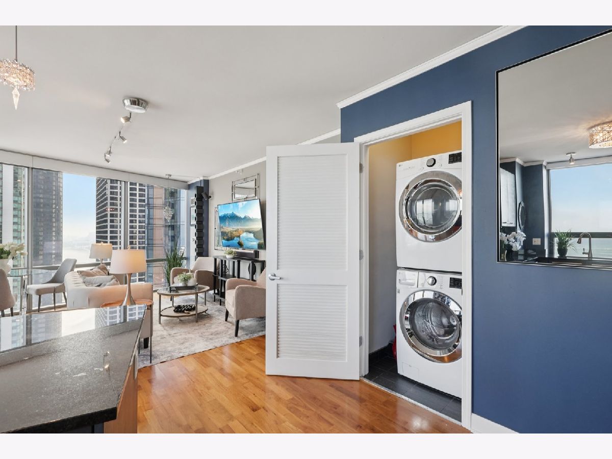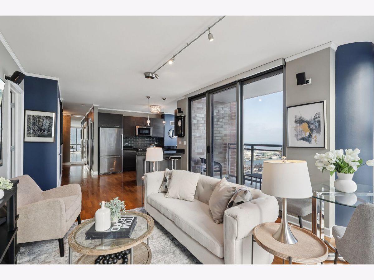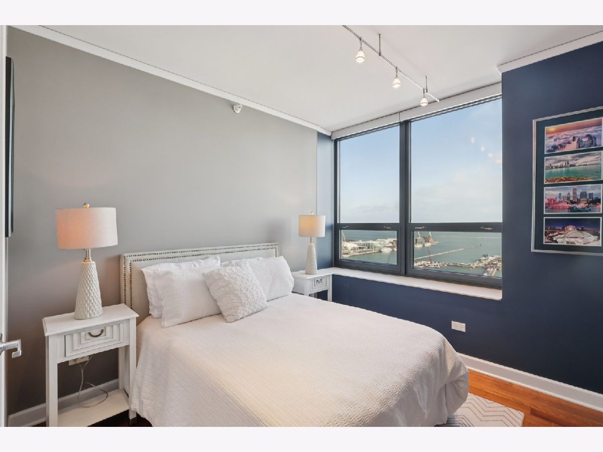VACANT and staged to showcase its flow, scale and finishes. A deeded parking space (#419) with wall mounted bike rack INCLUDED IN THE PRICE! and a same level storage unit adds convenience. Click the 3D button for an immersive virtual tour and explore every detail up close. This Lakeshore East southeast corner residence delivers iconic views of Lake Michigan, Navy Pier and the Chicago River from the 21st floor. The 2 bed, 2 bath layout is elevated with Snaidero cabinetry, new KitchenAid appliances, Carrera marble vanities, rich hardwood floors, a tiled laundry room with oversized LG washer and dryer, Swarovski crystal lighting, Nest smart thermostat, surround sound wiring, California Closets and custom window treatments. The home offers a seamless blend of comfort and sophistication. Building amenities rival luxury resorts with a 24-hour door staff, rooftop indoor pool, outdoor hot tub, two sundecks, a state of the art fitness center with Peloton bikes, theater room, billiards and game lounge, business suites, conference room, library and multiple lounge spaces. Set in an award-winning neighborhood steps from the lakefront, Mariano's, Millennium Park and the heart of downtown, this is refined urban living. HOA of $767 covers heat, AC, water, gas, parking, common insurance, doorman, TV/cable, fitness center, pool, exterior maintenance, scavenger, snow removal, and internet. Building reserves total $3.1M.