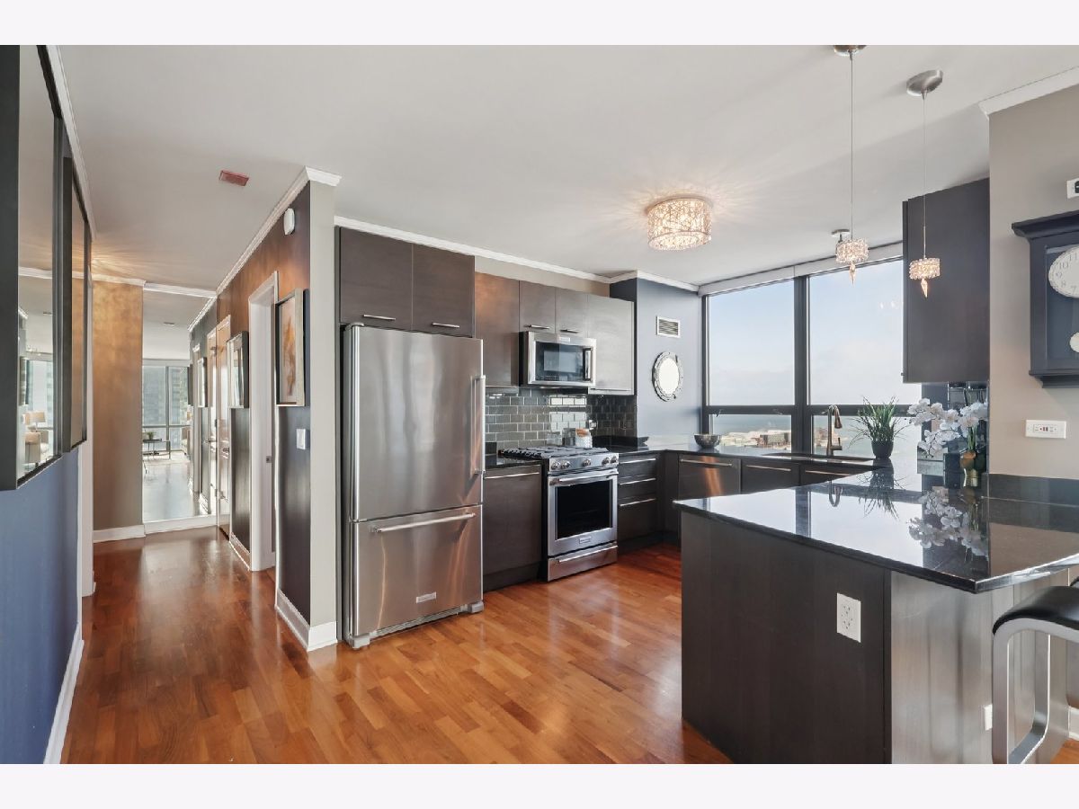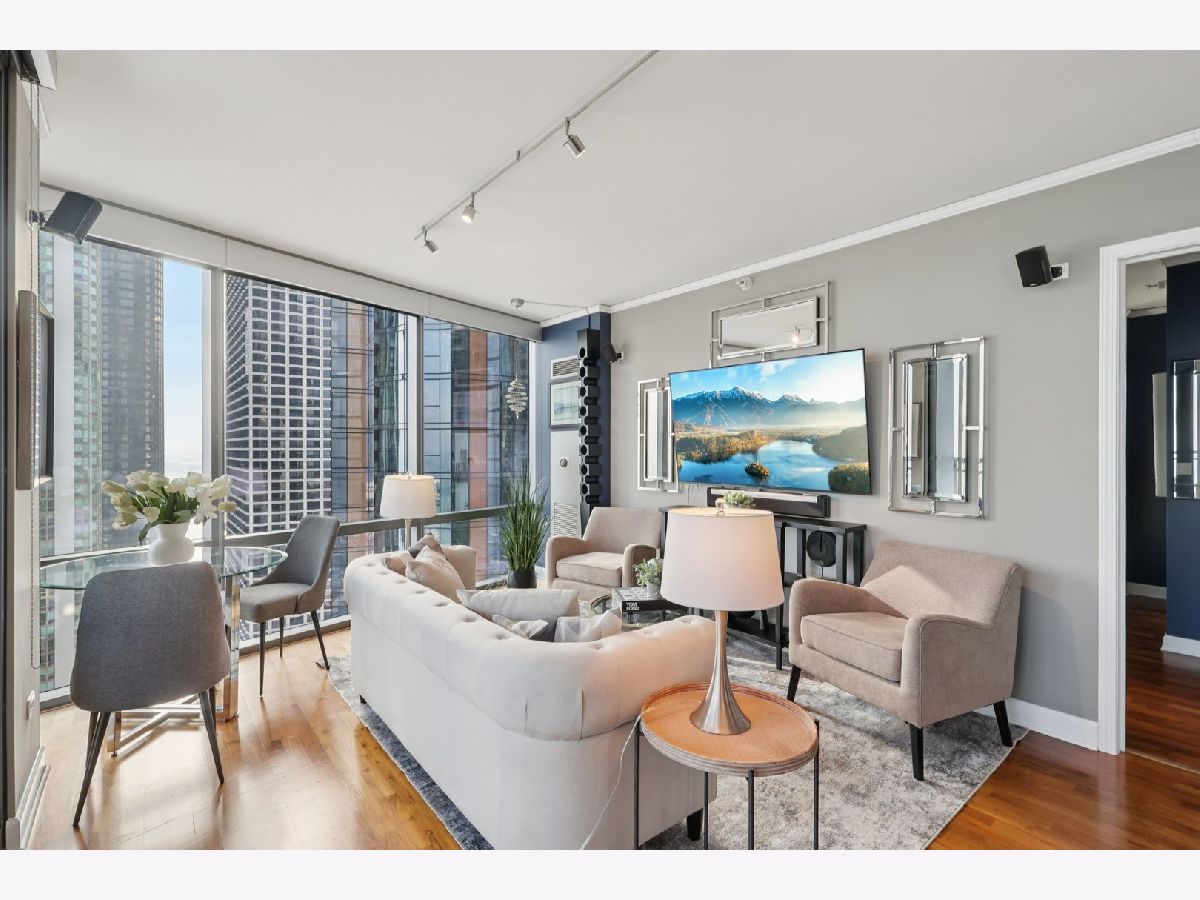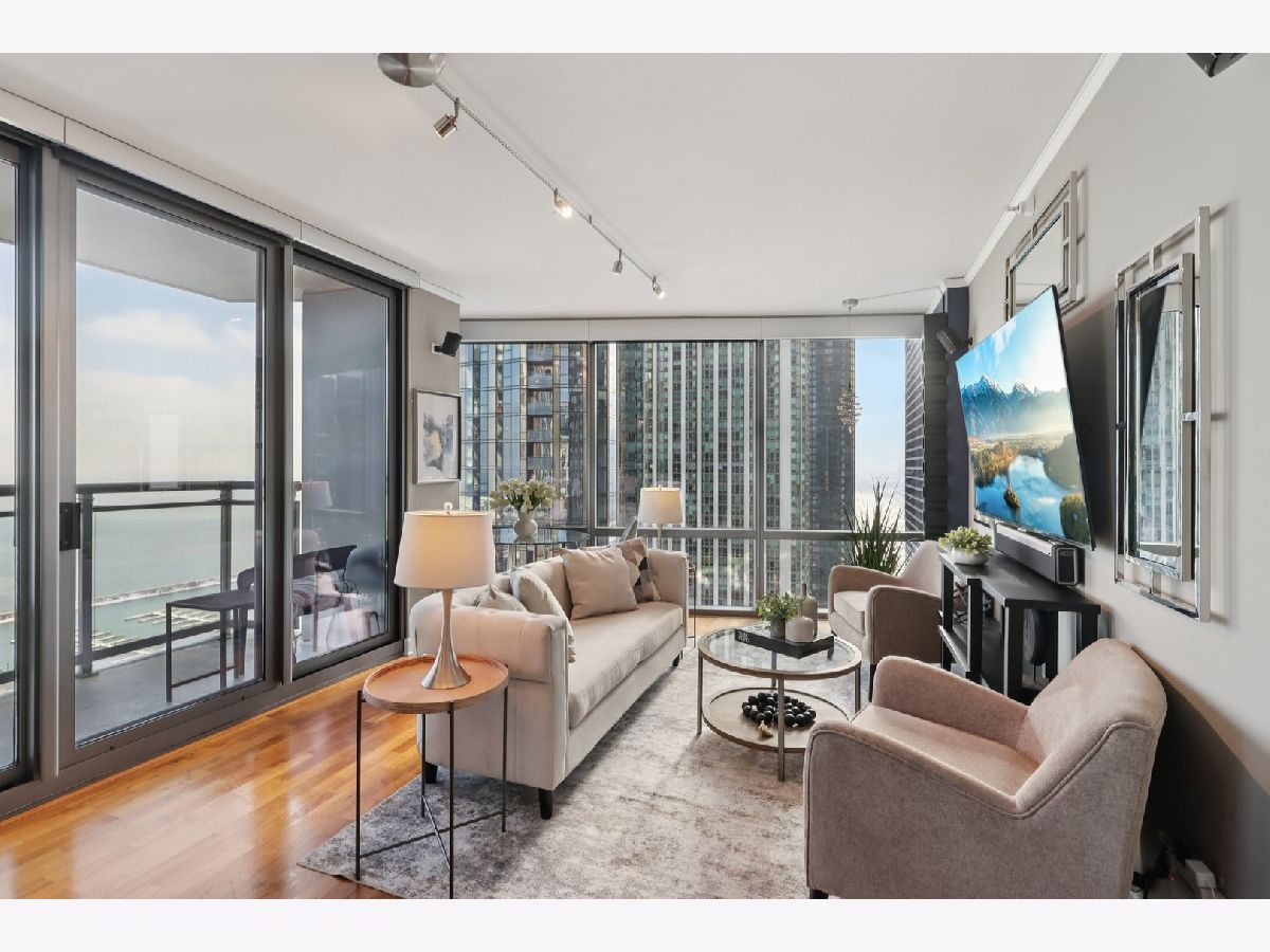 VACANT and staged to showcase its flow, scale and finishes. A deeded parking space (#419) with wall mounted bike rack INCLUDED IN THE PRICE! and a same level storage unit adds convenience. Click the 3D button for an immersive virtual tour and explore every detail up close. This Lakeshore East southeast corner residence delivers iconic views of Lake Michigan, Navy Pier and the Chicago River from the 21st floor. The 2 bed, 2 bath layout is elevated with Snaidero cabinetry, new KitchenAid appliances, Carrera marble vanities, rich hardwood floors, a tiled laundry room with oversized LG washer and dryer, Swarovski crystal lighting, Nest smart thermostat, surround sound wiring, California Closets and custom window treatments. The home offers a seamless blend of comfort and sophistication. Building amenities rival luxury resorts with a 24-hour door staff, rooftop indoor pool, outdoor hot tub, two sundecks, a state of the art fitness center with Peloton bikes, theater room, billiards and game lounge, business suites, conference room, library and multiple lounge spaces. Set in an award-winning neighborhood steps from the lakefront, Mariano's, Millennium Park and the heart of downtown, this is refined urban living. HOA of $767 covers heat, AC, water, gas, parking, common insurance, doorman, TV/cable, fitness center, pool, exterior maintenance, scavenger, snow removal, and internet. Building reserves total $3.1M.