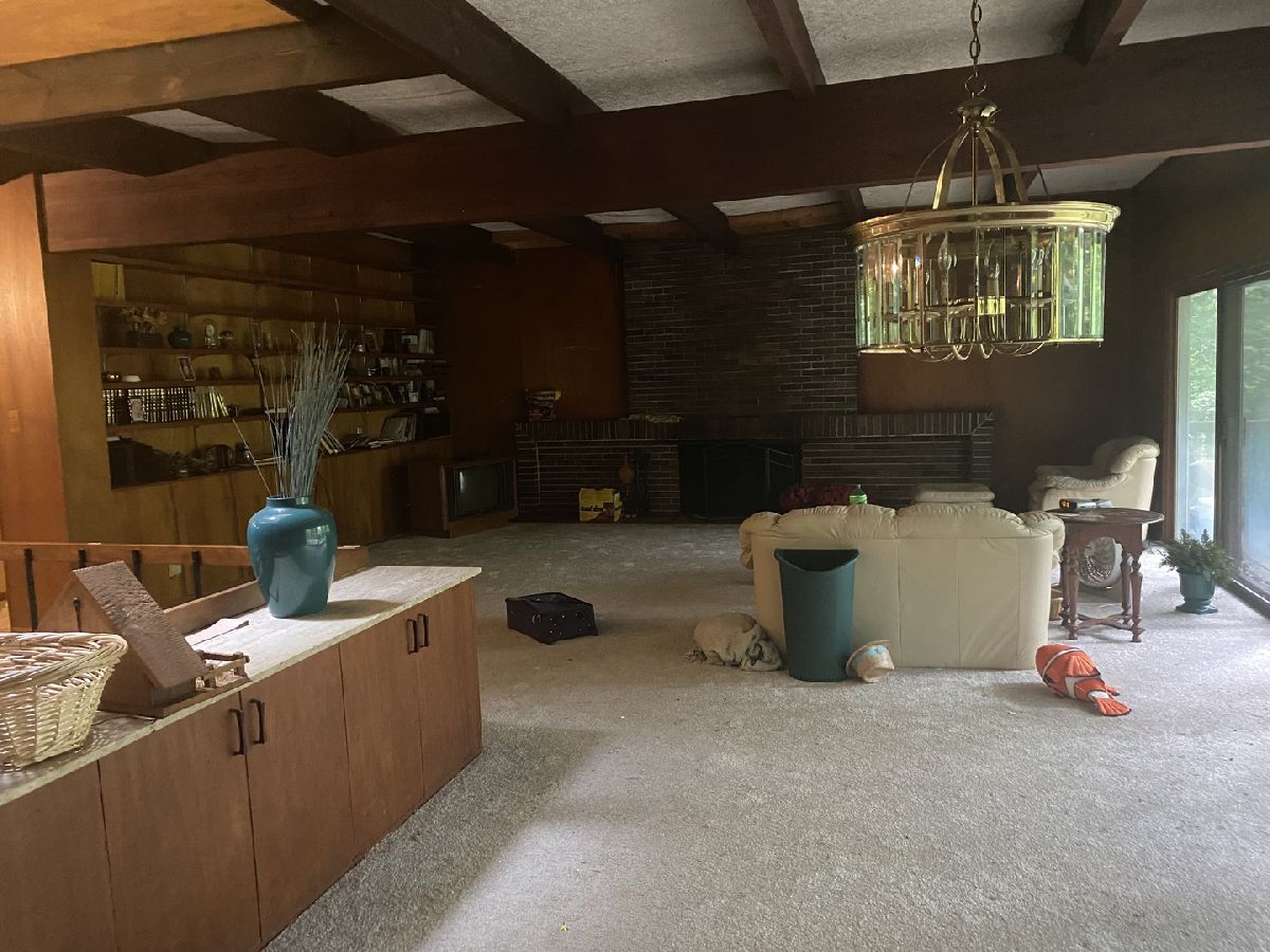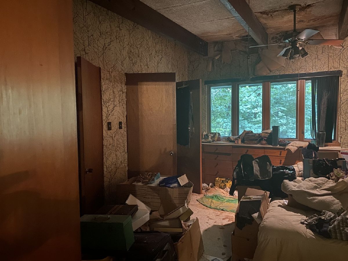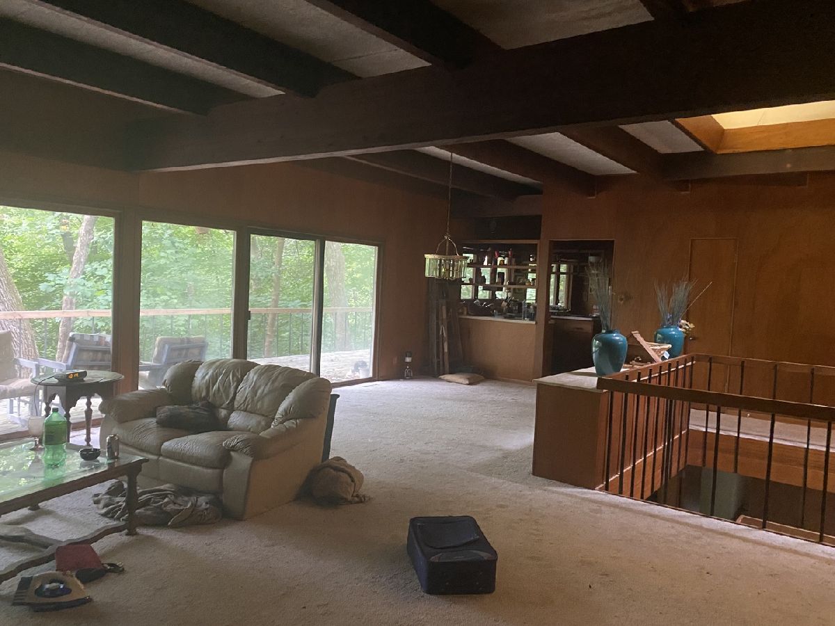 If you are looking for an amazing piece of property to build or re-build your dream home, this is it. This property is 3.72 acres of wooded lot and creek frontage and access and is in unincorporated New Lenox. The home itself is not in the flood zone, so there is no flood insurance required. There are some amazing features in this California style, hillside ranch. The open concept floor plan has plenty of entertaining space and the home is perfectly perched among the trees and above Hickory Creek. The views are amazing from the front and back of the home. The long front drive keeps the home hidden from view, so if you are looking for privacy, this is where you will find it. Main level has 2 bedrooms with a great room, eat-in kitchen and full bath. The lower level has 2 additional bedrooms, a family room, laundry room and small office/utility room. This home has amazing features if you are a mid-century modern/California contemporary fan and have the ability to restore it. If not, then diligence is needed to build what you would like. This is not a home for DIY, this home will require innovation, and will need a complete gut rehab or a tear down. The property is being sold as-is/where is and with all current personal property in the house and around the property. An amazing house and property that needs a new owner. **All room sizes are estimates only**