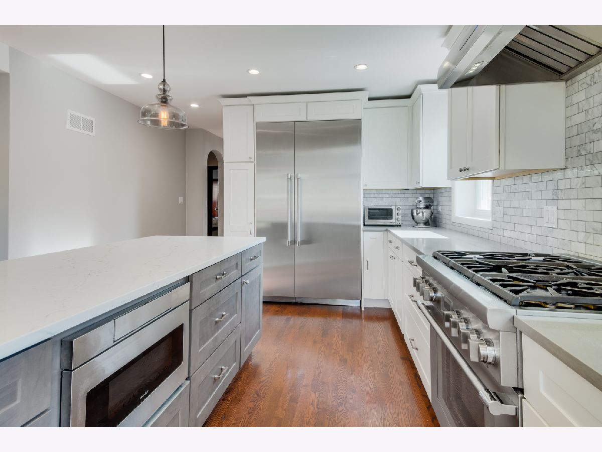 Don't miss this large brick 4 bed/3 bath home in Mayfair on an oversized corner lot. This rehabbed home has an abundance of amazing features. The first floor features a formal living room, 2 bedrooms, hardwood floors, and a large family room open to the gorgeous chef's kitchen (remodeled in 2020) with a large island/breakfast bar, white shaker cabinets, and Thermador appliances - range with hood, refrigerator, and dishwasher. The second floor includes 2 bedrooms (one behind a secret bookshelf), full bath, walk-in closet, plenty of storage, and a bonus tandem sitting room/potential 3rd bedroom. The dry finished basement is carpeted and includes an enormous rec room with wet bar, two custom built play room/lofts, separate laundry room, full bath, and additional storage. The expansive backyard on a lot and a half is fenced and has plenty of room to entertain and enjoy the warm summer nights. There is plenty of available street parking and if a garage is desired there is plenty of room to build one with easy access from the alley or get a permit for a side driveway. Unbeatable location - across the street from a school and steps to Mayfair Park, XSport, Old Irving Brewing, CTA Blue Line, Metra, I-90, I-94, 6 Corners, restaurants and shopping. Seller prefers close date before 6/1 and rent back through 6/8