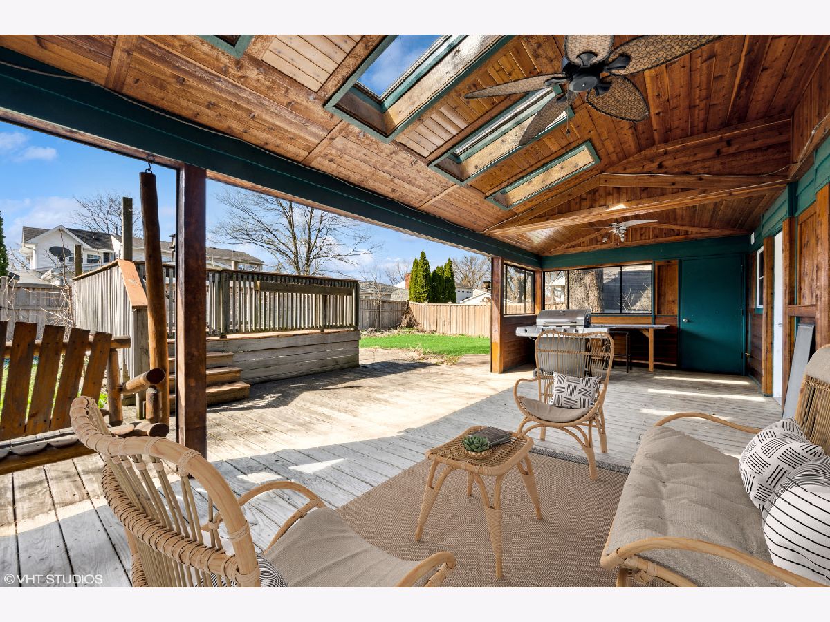 Welcome Home! Located in the highly desirable Fremd High School district, this charming home offers a tremendous opportunity to create your dream home by adding your own personal touches. The first floor features a large, sunny living room & dining room combination, open kitchen, cozy family room with a fireplace, half bathroom and separate laundry room. From the family room, you can access your spectacular backyard complete with a HUGE covered patio and spacious yard. Upstairs you'll find your primary suite complete with a large walk-in closet and a fireplace, three additional spacious bedrooms and a second full bathroom. All bedrooms have hardwood floors. The partially finished basement has a rec room perfect for a second family room or playroom and a separate storage room. If you are looking for a home that is conveniently located just minutes away from shopping, dining, and entertainment options, with easy access to major highways for an easy commute, this charming home is the perfect fit for you. Estate sale - property being sold as-is.