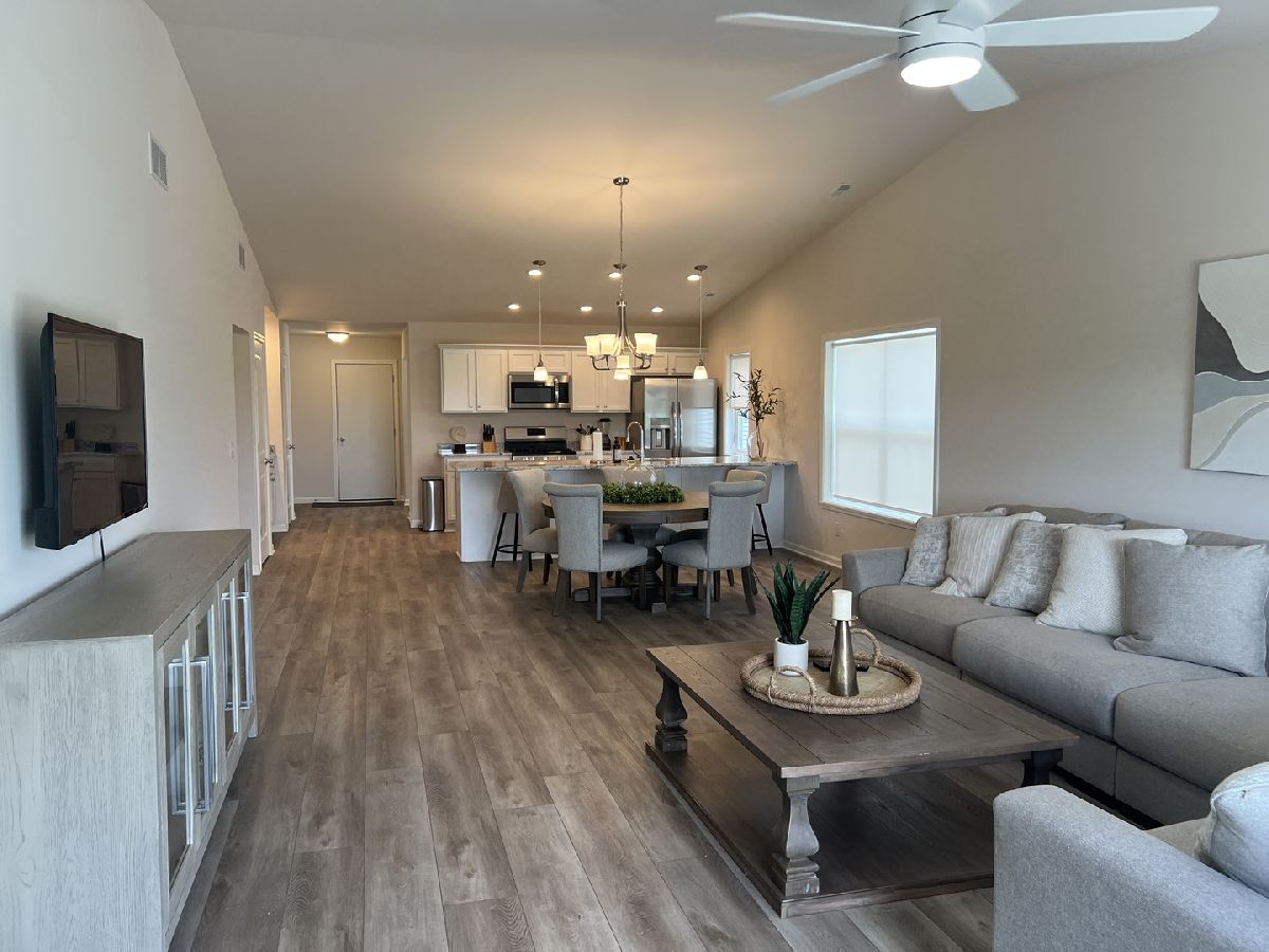 Immaculate & Upgraded Ranch-Style Condo in Prime Location! Enjoy low-maintenance living in this meticulously maintained and beautifully upgraded ranch-style condo! Located just minutes from I-90, shopping, dining, and entertainment, this home offers the perfect blend of comfort, convenience, and style. Step inside to an inviting open floor plan with luxury vinyl plank flooring flowing seamlessly throughout the entire home. Just off the foyer, you'll find a spacious office/den filled with natural light-ideal for remote work, hobbies, or extra living space. The well-appointed kitchen is a standout, featuring granite countertops, quality cabinetry, a pantry, stainless steel appliances, a butler's pantry, and upgraded lighting. The kitchen opens to the dining area and vaulted-ceiling living room, creating the perfect setting for both everyday living and entertaining. A sliding glass door leads to a patio-ideal for grilling or enjoying your morning coffee outdoors. The private primary suite offers a walk-in closet, a large bath with double sink vanity, generous shelving, and a walk-in shower. A second spacious bedroom is situated on the opposite end of the home, along with a full bath with a tub and a conveniently located laundry room. The attached 2-car garage adds to the ease and practicality of this stunning home. This move-in-ready condo is a must-see-schedule your showing today and discover the perfect blend of function and modern comfort!