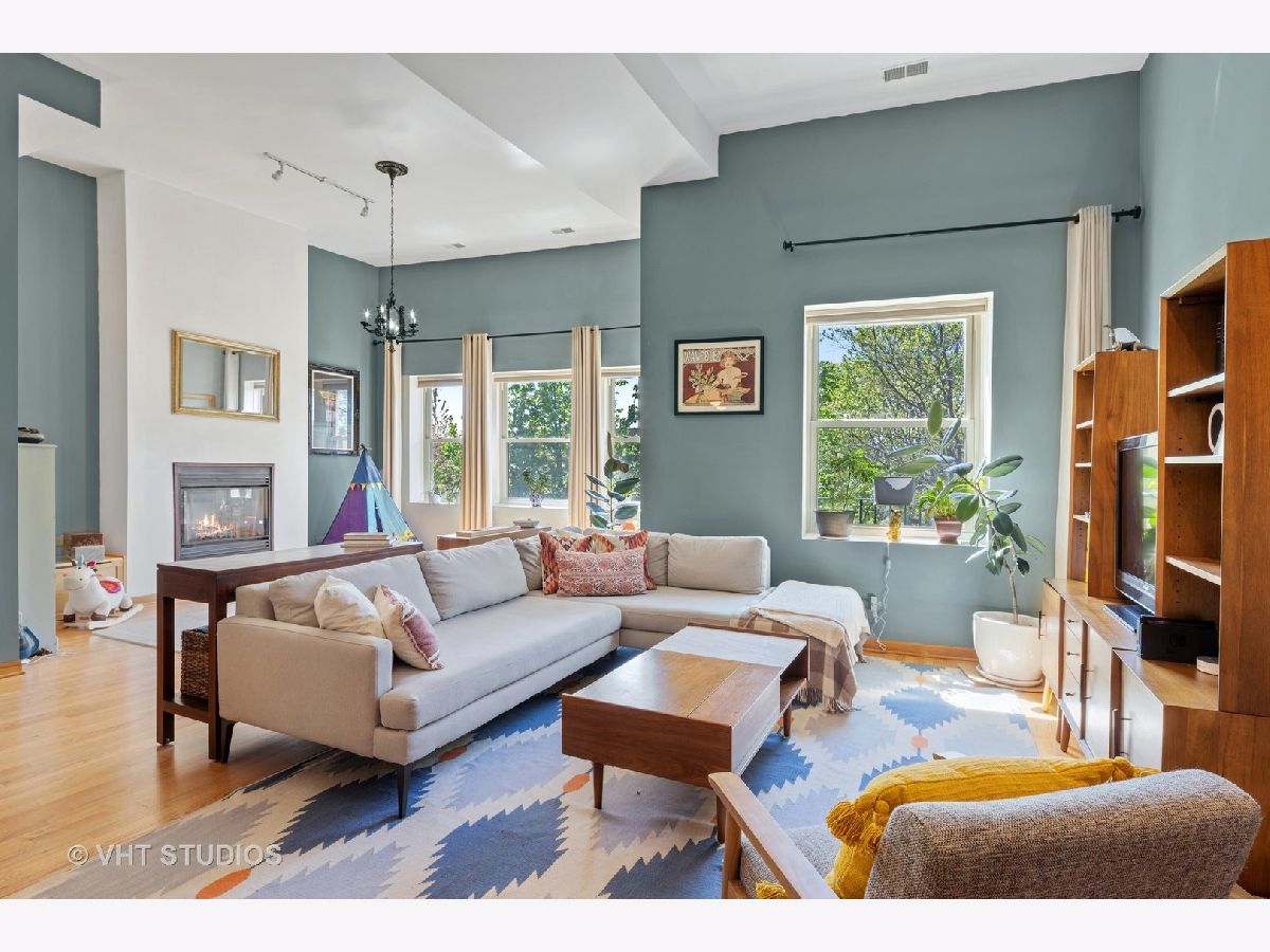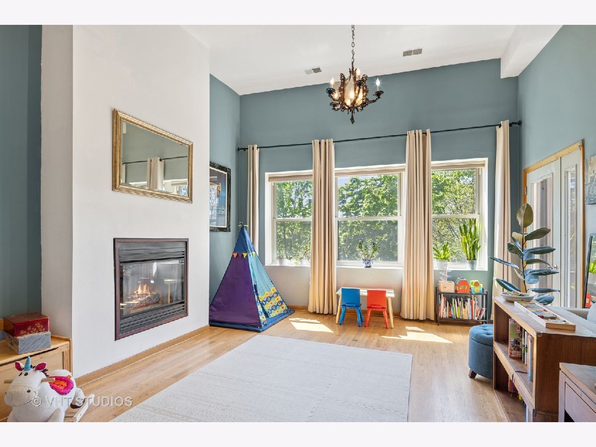 Spectacular top floor home with soaring ceilings and huge open living and dining space plus two private outdoor spaces. Spacious open layout features open kitchen with large breakfast bar and plenty of space for cooking & baking prep, as well as entertaining, seating for 6 or more, stainless appliances, and a window over sink. Large and open living space with gas fireplace offers options for configuring living and dining space and easily accommodates plenty of large furniture. Nearby nursery provides private space for terrific home office, den, or exercise equipment or yoga room. Exceptionally large primary bedroom with recently redone bathroom with large walk-in shower with bench and rain shower. Large second bedroom offers plenty of space for home office and guest accommodations and leads to large back deck for terrific summer relaxing, grilling and urban gardening. And front deck off living room overlooks beautiful street lined with mature trees and historic homes. Recent improvements in last 5 years include, refinished floors, new primary bath, added den and coat closet at entry, new Bosch dishwasher, and newer hot water heater, washer & dryer, and refrigerator. Additional storage and garage parking also included. Solid association and beautiful building within walking distance of transportation and lots of great coffee shops, restaurants, and shopping in and around Sheridan Park.
