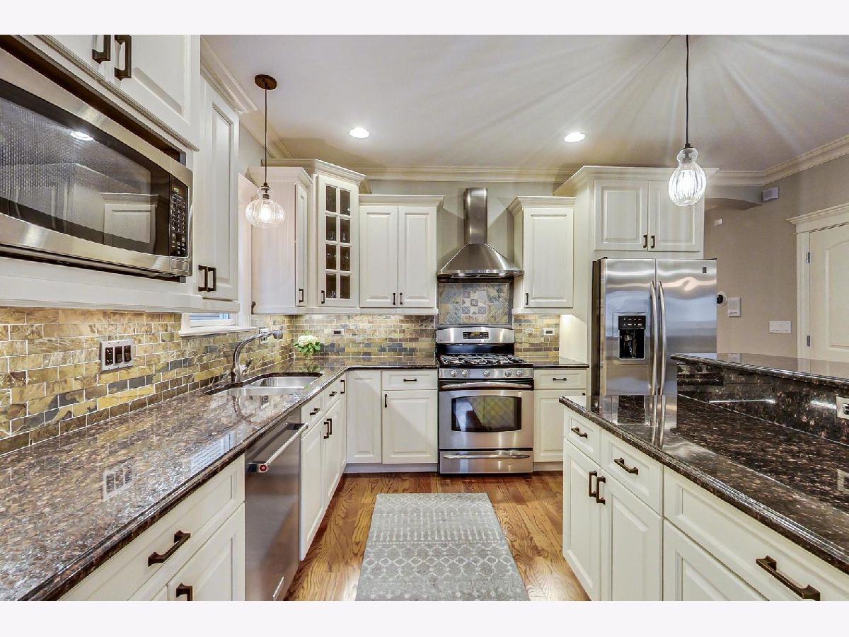Gorgeous immaculate 15 year old extra wide single family on a quiet tree lined street that checks all the boxes. The main floor features an open living room/dining room with wood burning fireplace and upgraded custom millwork. Large white chefs' kitchen with granite and stainless steel appliances and island opens to the sunny family room with french patio doors to an attached deck. The second floor boast 3 bedrooms, 2 bath and laundry with a stunning master suite with spa like bath and huge walk in closet. The lower level offers an expansive recreation room with great light, fireplace and wet bar. Bonus 4th bedroom/office and great storage complete the lower level. Front porch, 2 Car Garage and professionally landscaped rear yard
