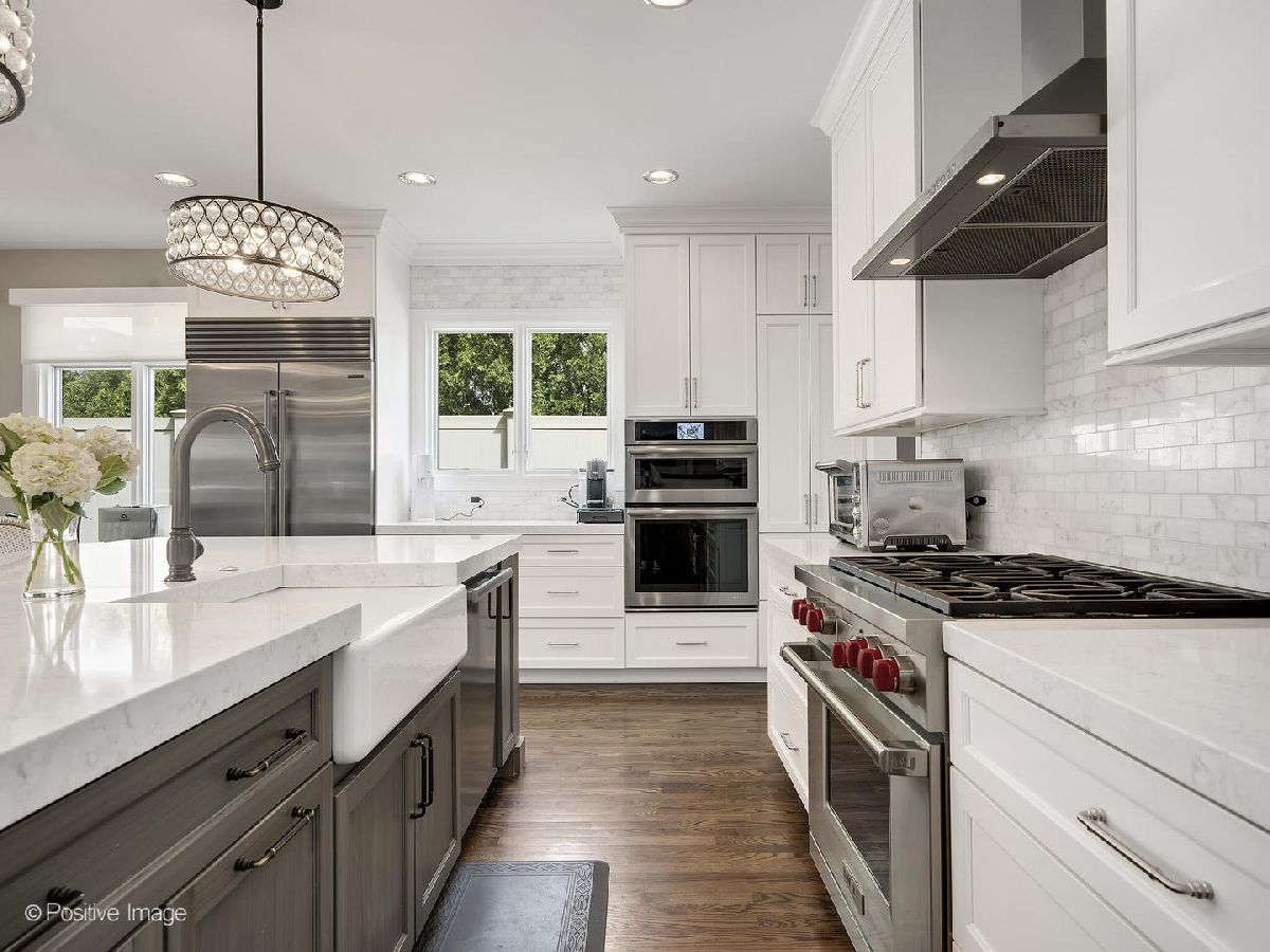 IN-TOWN, beautiful brick home only steps from shops, restaurants & train! Main floor offers open floor plan with bright family room, formal living room, private office, dining room, and newly remodeled eat-in kitchen with large island, chef's appliances, custom cabinetry, and gleaming quartz countertops. Four bedrooms on 2nd level, including a fabulous master suite with a large walk-in closet with custom shelving and a spa-like master bathroom. Convenient, large 2nd floor laundry room! Newly-finished and spacious 3rd floor bonus room which can be used as a playroom, office, gym, or additional bedroom. Wonderful lower level with large recreation room, full bath and 5th bedroom...tons of storage space also. Plenty of outdoor entertaining space including large paver patio open to fully fenced, private backyard. 2-car attached garage. A+ in style, organization and location! Top rated schools! Don't miss it!