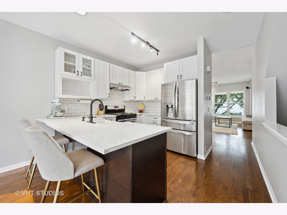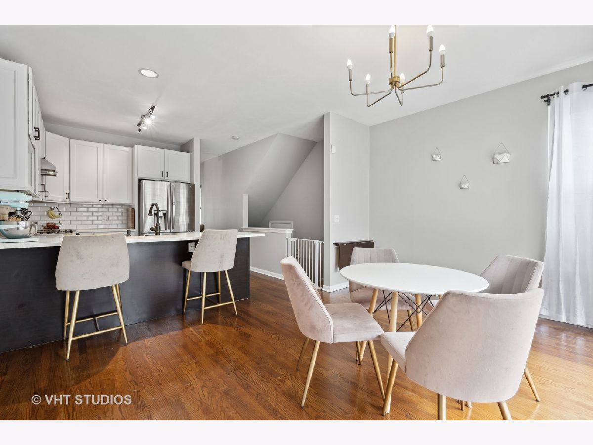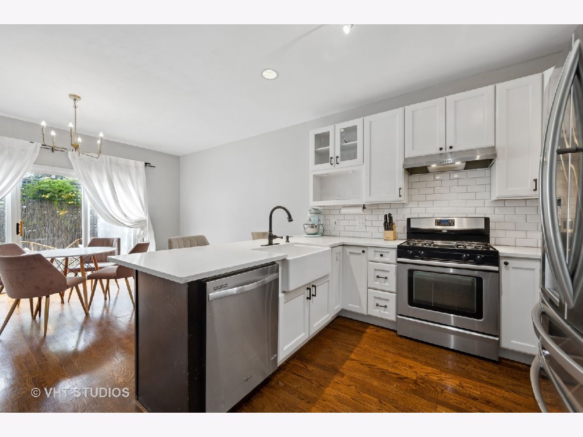 Welcome to this fantastic 4BR/2.5BA end unit townhouse in the coveted Terraces of Old Irving Park! As you walk into this gorgeous townhouse from the incredibly quiet tree-lined one-way street, you'll be greeted by a formal foyer with a giant entryway closet. Moving into the spacious living room that features a cozy wood-burning fireplace, surround sound and convenient powder room. Walking back to the fully updated kitchen with custom white cabinetry, gleaming white quartz countertops with eat-in breakfast bar, trendy farm sink, black hardware, timeless subway tiled backsplash and stainless steel appliances. The adjacent dining room can fit an 8-person dining with ease table and great for those family gatherings. Proceeding to the 2nd floor is where you'll find 3 very large bedrooms with two nicely appointed full bathrooms. The gigantic primary suite, that can easily accommodate a California king sized bedroom set, a large organized walk-in closet and vaulted ceilings. The lower level features a large family room that's perfect for a home theater or a kid's play room and a nicely sized 4th bedroom. There's a large mechanical room on this level with a side-by-side laundry and utility sink. There's great closet & storage space in this home for those all important Costco runs. The 2-tiered back deck with one car garage and 1 car tandem outdoor parking space makes this the one you've been searching for. This subdivision includes a nice nature trail, tennis court and basketball court. Incredible Old Irving Park location that's steps to Kolmar Park, grocery stores, Target, Starbucks, Eris Cider House, shops, restaurants, and nightlife that The Six Corners has to offer. Also close to CTA buses & Blue Line, Metra, expressway access and Belding Elementary School!