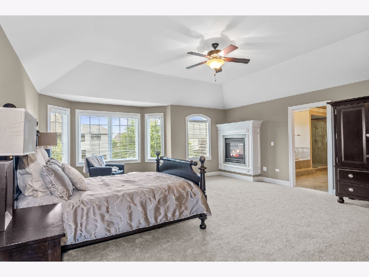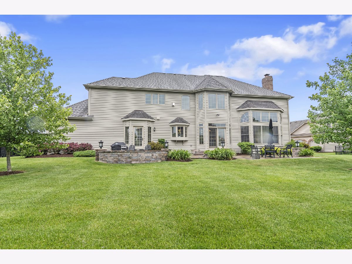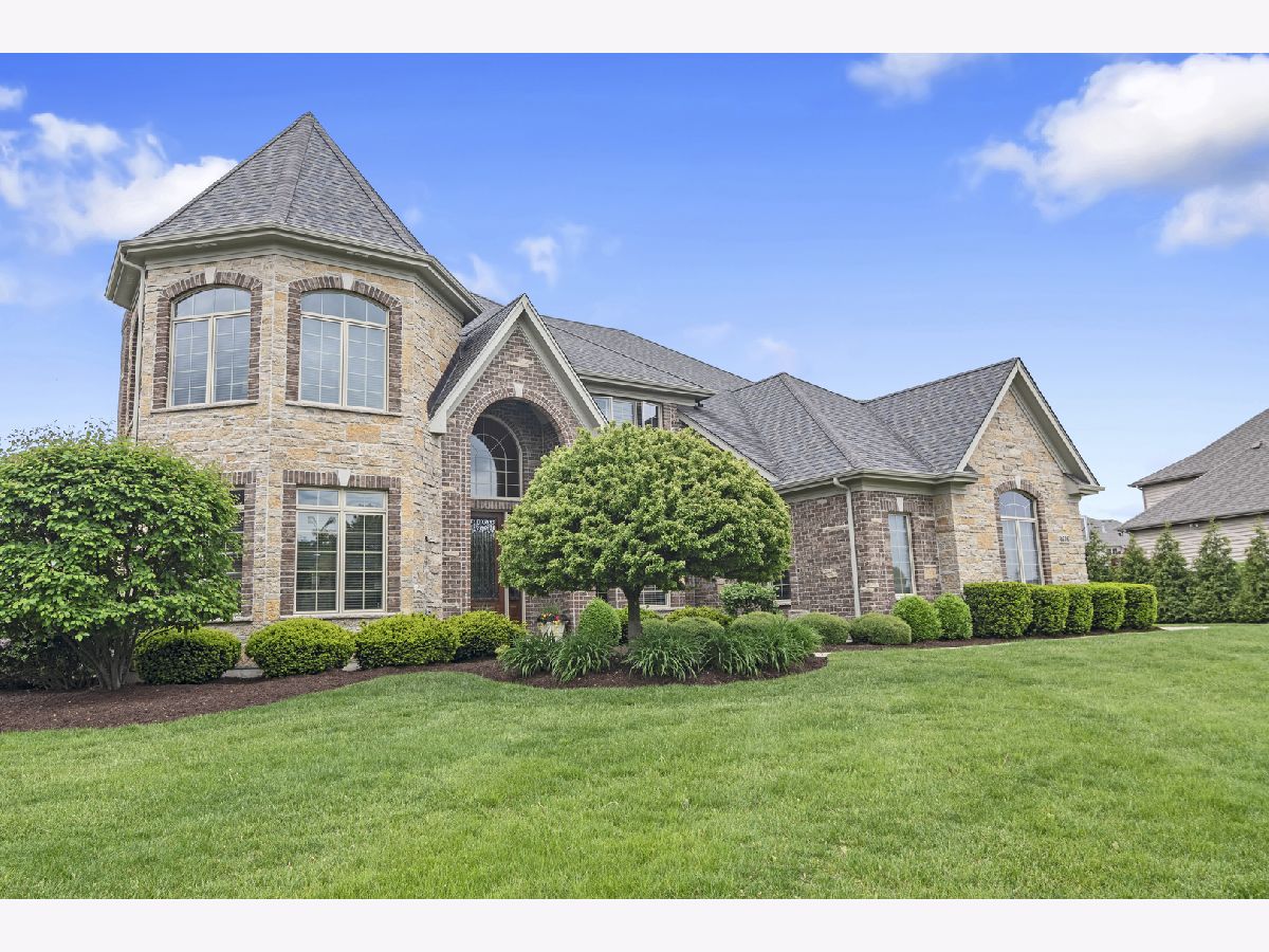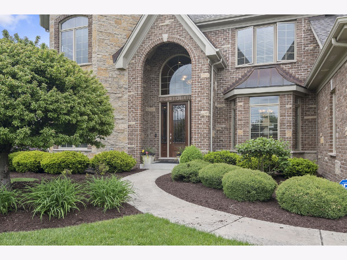Stunning brick front home in much desired Ashwood Park neighborhood. You are greeted with an elegant and spacious two story entrance and beautiful staircase. The light and bright formal living room is accented with crown molding, wainscoting and hardwood floors. A spectacular 2 story stone fireplace and large windows highlight this family room. You will fall in love with this open kitchen which has a 5 burner cooktop, double oven, island with seating area, walk in pantry, a wet bar complete with a beverage refrigerator and a spacious eating area. A butler pantry provides additional counter and cabinets adjacent to the formal dining room which highlights include crown molding, wainscoting, and hardwood floors. Enjoy working at home in your private den which also leads out onto the paver patio. The master suite is a private retreat with a double sided fireplace that can be enjoyed in the bedroom and from your jacuzzi style tub. Three additional bedrooms are spacious and have their own private bathrooms. A catwalk provides stunning views of your first floor and your outside yard. There is plenty of entertaining room on the outside paver patio complete with fire pit and lighting which overlooks this large private backyard. The full deep pour 2250 sq ft basement, which is pre plumbed for a bathroom, provides you the opportunity to create another great living area. A side load four car garage also gives you additional storage space. This home is conveniently located close to the beautiful clubhouse that offers 3 pools, a water slide, tennis courts, indoor basketball court, work out room and gorgeous party room. Award winning school district 204. You will fall in love with this elegant home.