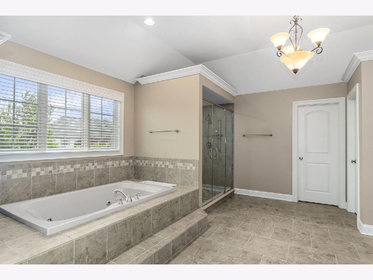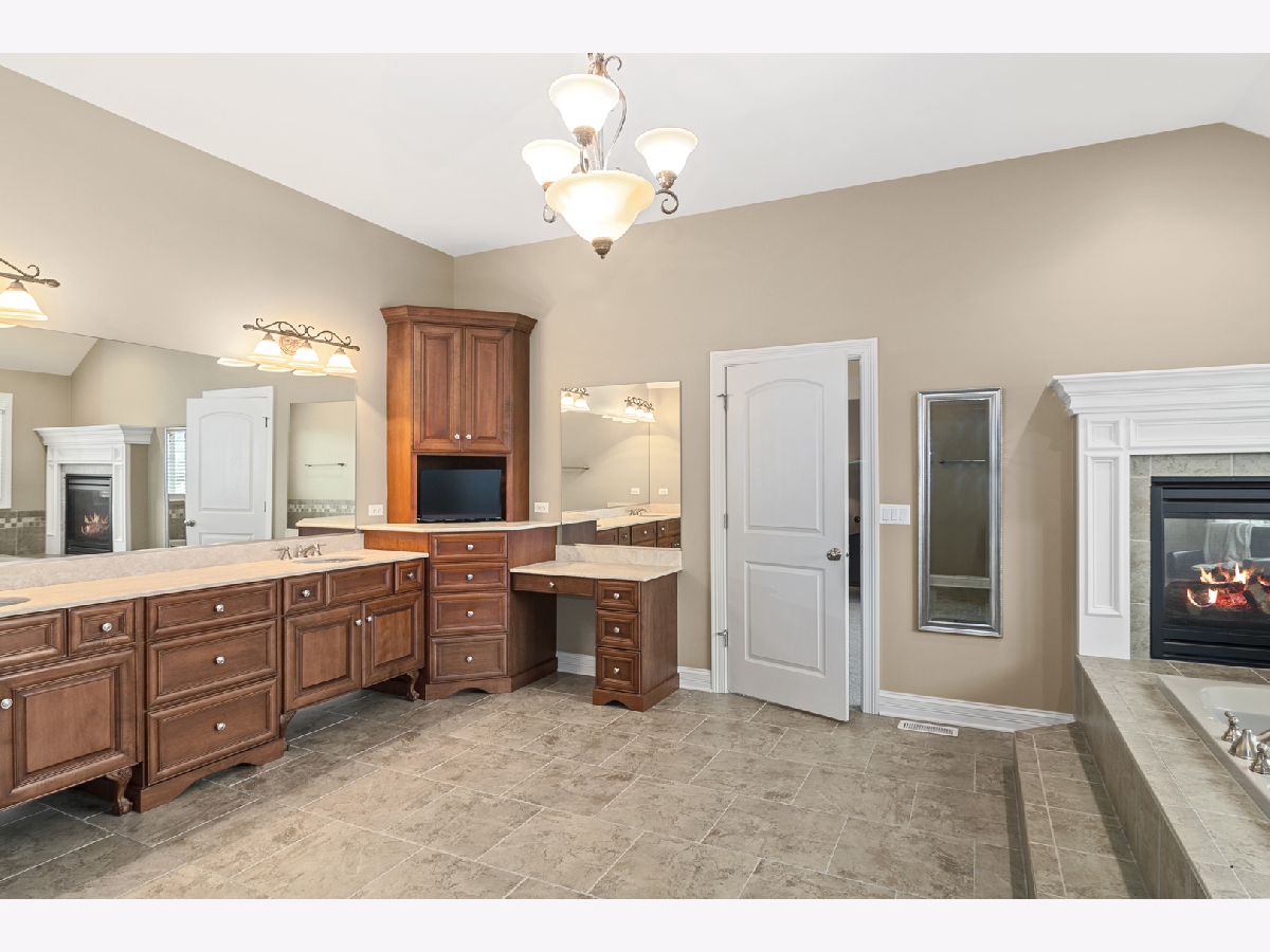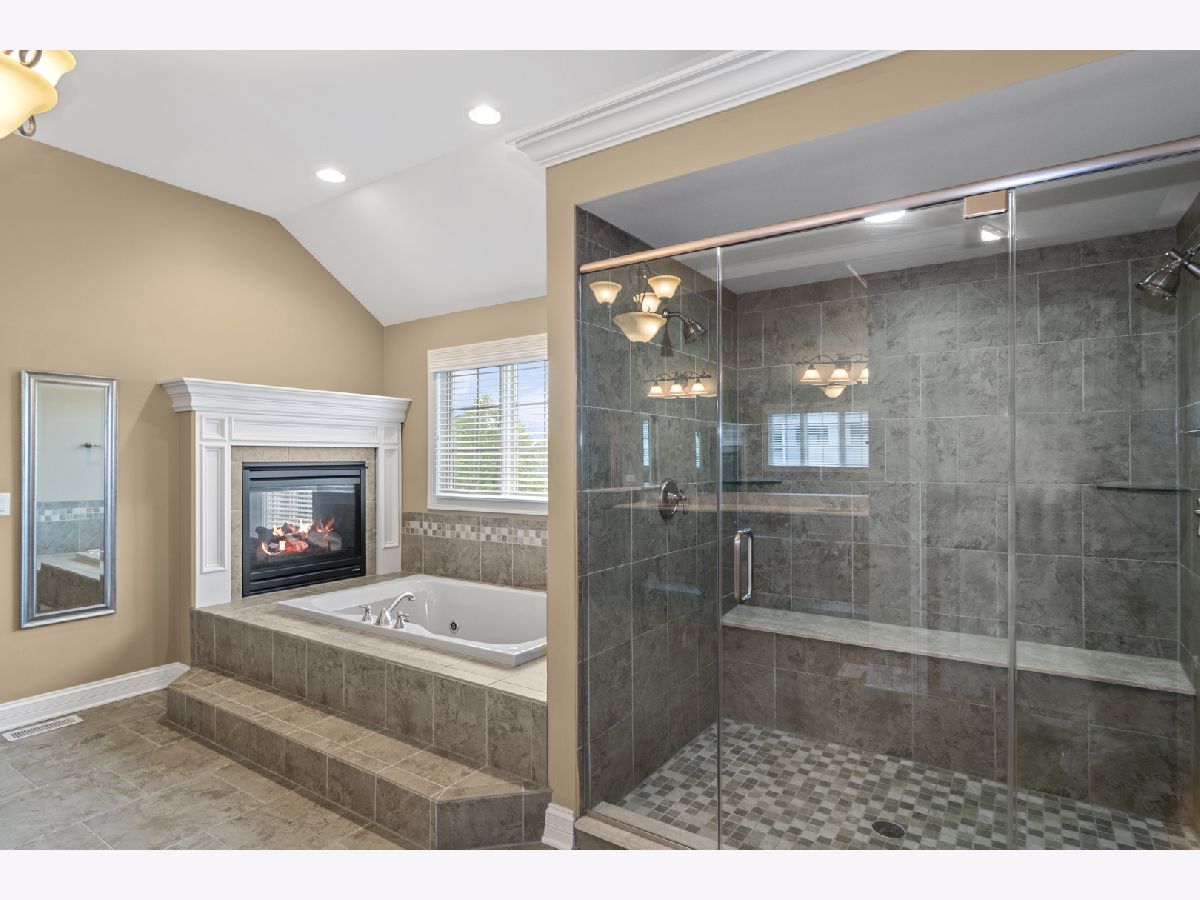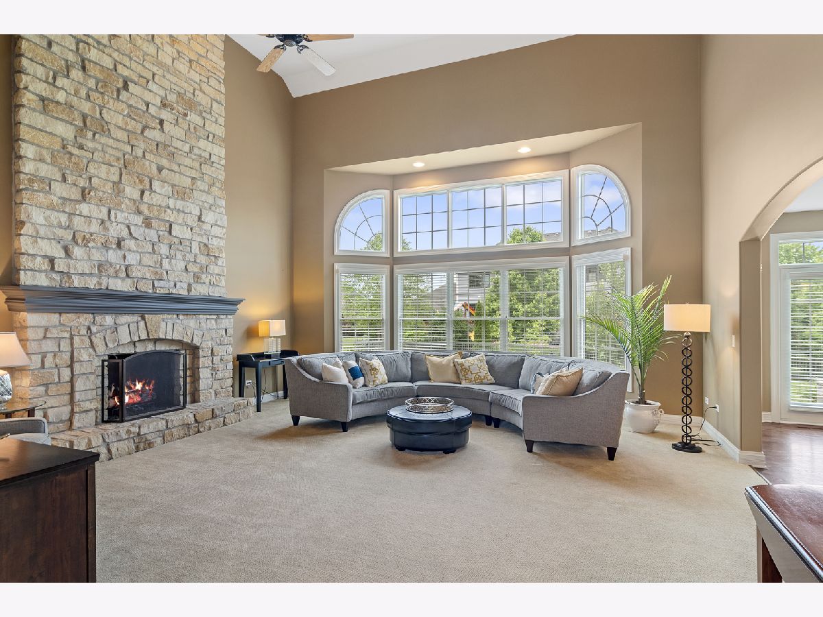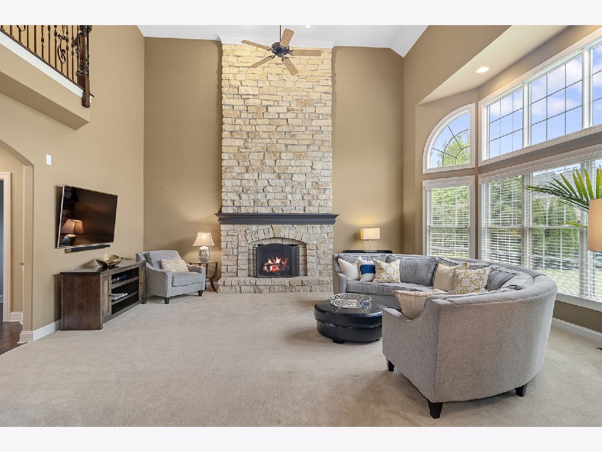 Stunning brick front home in much desired Ashwood Park neighborhood. You are greeted with an elegant and spacious two story entrance and beautiful staircase. The light and bright formal living room is accented with crown molding, wainscoting and hardwood floors. A spectacular 2 story stone fireplace and large windows highlight this family room. You will fall in love with this open kitchen which has a 5 burner cooktop, double oven, island with seating area, walk in pantry, a wet bar complete with a beverage refrigerator and a spacious eating area. A butler pantry provides additional counter and cabinets adjacent to the formal dining room which highlights include crown molding, wainscoting, and hardwood floors. Enjoy working at home in your private den which also leads out onto the paver patio. The master suite is a private retreat with a double sided fireplace that can be enjoyed in the bedroom and from your jacuzzi style tub. Three additional bedrooms are spacious and have their own private bathrooms. A catwalk provides stunning views of your first floor and your outside yard. There is plenty of entertaining room on the outside paver patio complete with fire pit and lighting which overlooks this large private backyard. The full deep pour 2250 sq ft basement, which is pre plumbed for a bathroom, provides you the opportunity to create another great living area. A side load four car garage also gives you additional storage space. This home is conveniently located close to the beautiful clubhouse that offers 3 pools, a water slide, tennis courts, indoor basketball court, work out room and gorgeous party room. Award winning school district 204. You will fall in love with this elegant home.