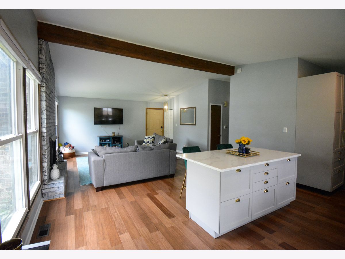 OH 5/29 12pm-2pm- Beautiful 2020 remodel! Spacious ranch home features 3 bedrooms, volume ceiling and open concept living and dining. Cook like a chef in this NEW 2020 kitchen with stainless steel appliances, large undermount sink, ample cabinetry & built-in pantry, and new light fixtures. Eat and entertain around the 6ft "marbled" quartz counter island which adds additional storage. Next to the kitchen is room for a full dining table. New bamboo wood floors adorn the main living space as well as the master bedroom, with option to finish the 2nd & 3rd bedroom with the existing material that the seller will provide. Volume ceilings with gorgeous wood beams highlight the refreshed brick fireplace in the living room. 2020 remodeled full bathroom. Relax in your large private backyard, which backs to the forest preserve and walking trails. The unfinished basement provides the option of an additional 1,088sqft of living space and opportunity to build additional equity. Attached carport has extra secured storage. 2020 Furnace & Washer Dryer, 2019 Front Windows, 2011 Roof. Top rated Downers Grove North High School and Maercker Elementary. 4 Minute drive to tons of restaurants and entertainment in Downtown Downers Grove, and 5 min drive or 20 min walk to Fairview Ave. Metra! Click on 3D Tour and Property Video!