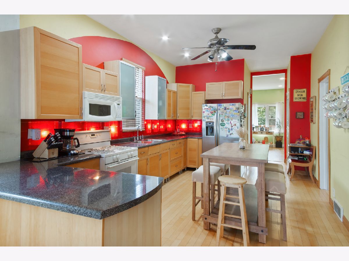 Welcome to the heart of Mayfair!! This 4 bedroom, 3 bathroom home sits right in the center of one of Mayfair's most coveted blocks! The wide front steps have served as a gathering place for neighbors for many years! Upon entry, the living room features huge windows and an impressive open staircase with a skylight above that shines daylight throughout the staircase and entranceway. The large kitchen has bar seating, ample storage, a large pantry, an office or breakfast nook, and plenty of space to spare for a kitchen table. There's a unique backlit backsplash that creates a dramatic effect over the kitchen countertops. You'll find a bedroom and full bathroom on the main floor. Upstairs features two large bedrooms and a sitting area. The primary bedroom has a balcony that looks over the beautiful back yard. The upstairs bathroom has jack-and-jill access to the primary bedroom and the hallway to accommodate the second bedroom. The basement has a media room, 4th bedroom, full bathroom and laundry. The beautifully landscaped backyard on an extended lot has two decks: one off of the kitchen and another with a seating area adjacent to the garage nestled between peach trees and a pond. This home is walking distance to St. Eds, Old Irving Brewing, the Irish American Heritage Center, and Mayfair Park. This is a COMMUTER'S DREAM...an easy stroll to the blue line and metra, and super fast access to drive to 94, 90, and O'Hare. This is a great opportunity to live in Mayfair. Schedule your showing today!