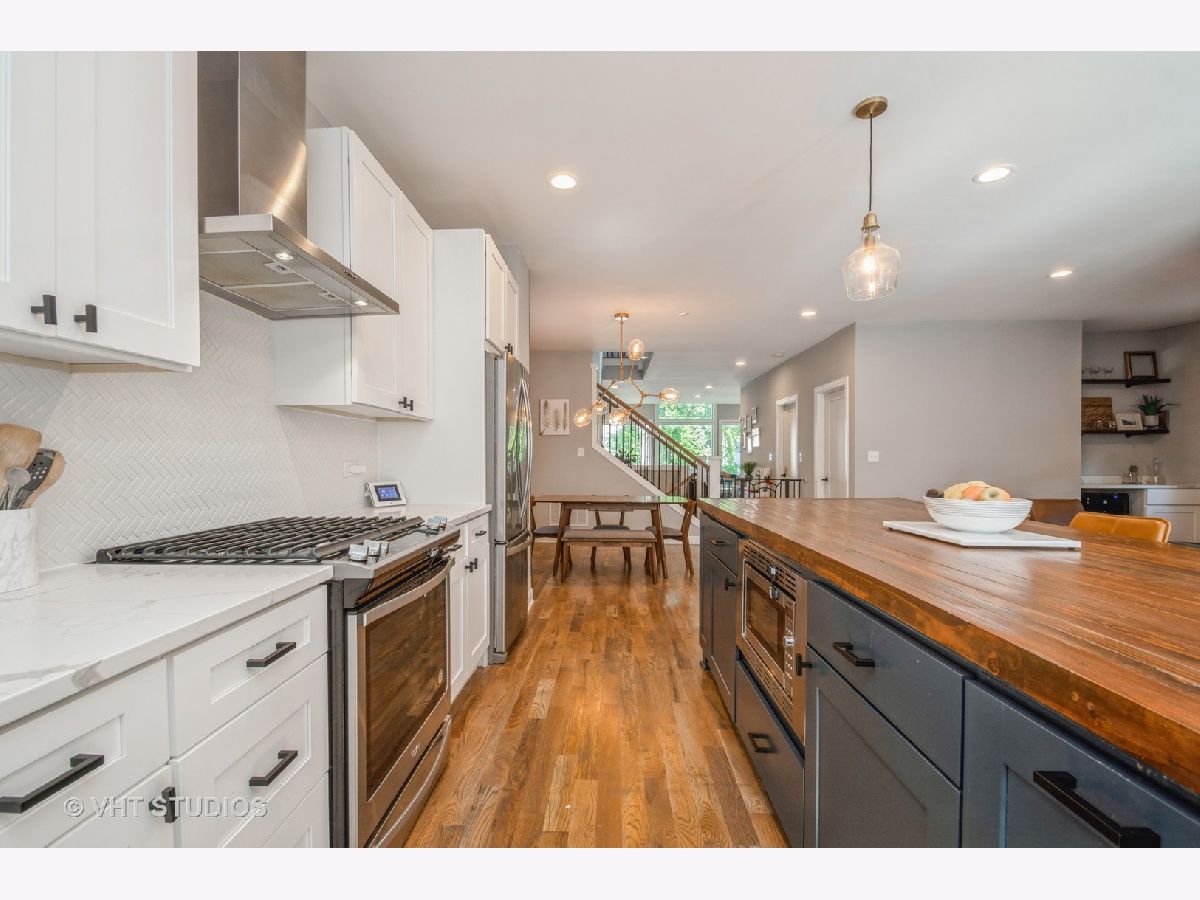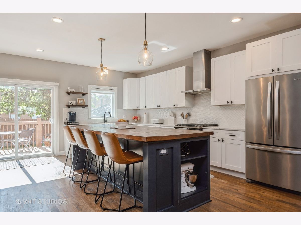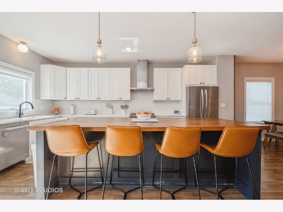 Take advantage of living in a beautiful 5 bedroom/4bathroom full gut rehab, down to the studs, in 2019 in the heart of Albany Park. During this renovation, a second story was added that includes a large primary suite with a spa-like bathroom and an expansive walk-in closet, 2 additional bedrooms with an adjoining bathroom each with their own vanity, and a laundry room with side-by-side W/D. New HVAC, roof, electrical, and windows with custom Hunter Douglas blinds throughout. This home features an open floor plan perfect for entertaining with a large white kitchen with quartz countertops and a 9ft butchers block island, walk-in pantry, mudroom, large living room, gas fireplace, dining room with a built in wine storage, and an additional sitting room/breakfast room with dry bar. Finished basement provides family room, 5th bedroom and a full bath. In addition to the fantastic interior, this home also has a spacious back deck overlooking a fenced in yard and a driveway leading to a 1 car garage. Don't miss this opportunity to own this gorgeous home!