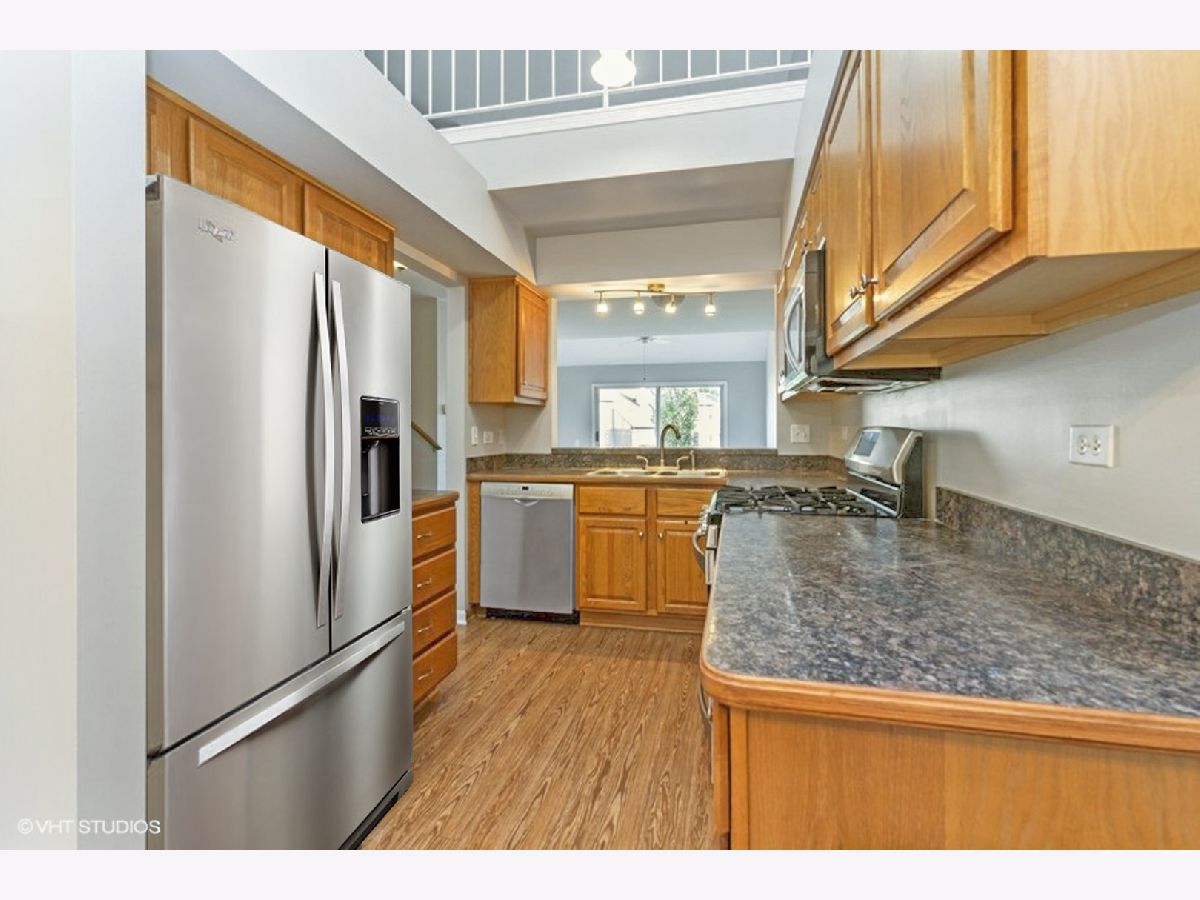 An incredible townhome across the street from park, walking trails and tennis courts! Walking distance to grocery store and shopping plaza. The property was just freshly painted throughout and BRAND NEW CARPET installed! BRAND NEW Refrigerator, BOSCH dishwasher, BRAND NEW microwave too! The kitchen cabinets were replaced in 2006 with brand new solid oak cabinets. Sun-drenched eat-in table space as well as serving window opening up to living room. FIRST FLOOR MASTER BEDROOM & HUGE LOFT ON 2ND FLOOR THAT CAN BE A 2ND BEDROOM! Each level has a FULL BATH and the main floor bathroom was just COMPLETELY REMODELED in 2020 with soaker tub! 1st Floor Laundry! Enjoy your two-story ceiling living room with wood-burning fireplace and skylights for plenty of natural light! Extra large slider lets you enjoy your backyard patio backing to the larger than usual greenbelt! 2 car garage! Welcome Home to 4545 Burnham Dr in North Hoffman Estates, attending highly acclaimed Whiteley Elementary School, Plum Grove Junior High and Fremd High School, rated one of the best high schools in Cook County! Talk about a solid investment!