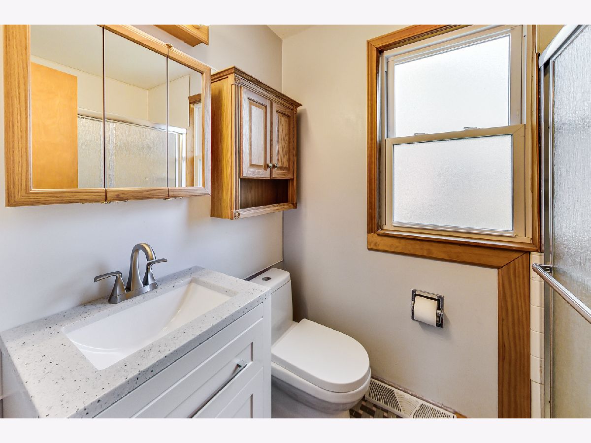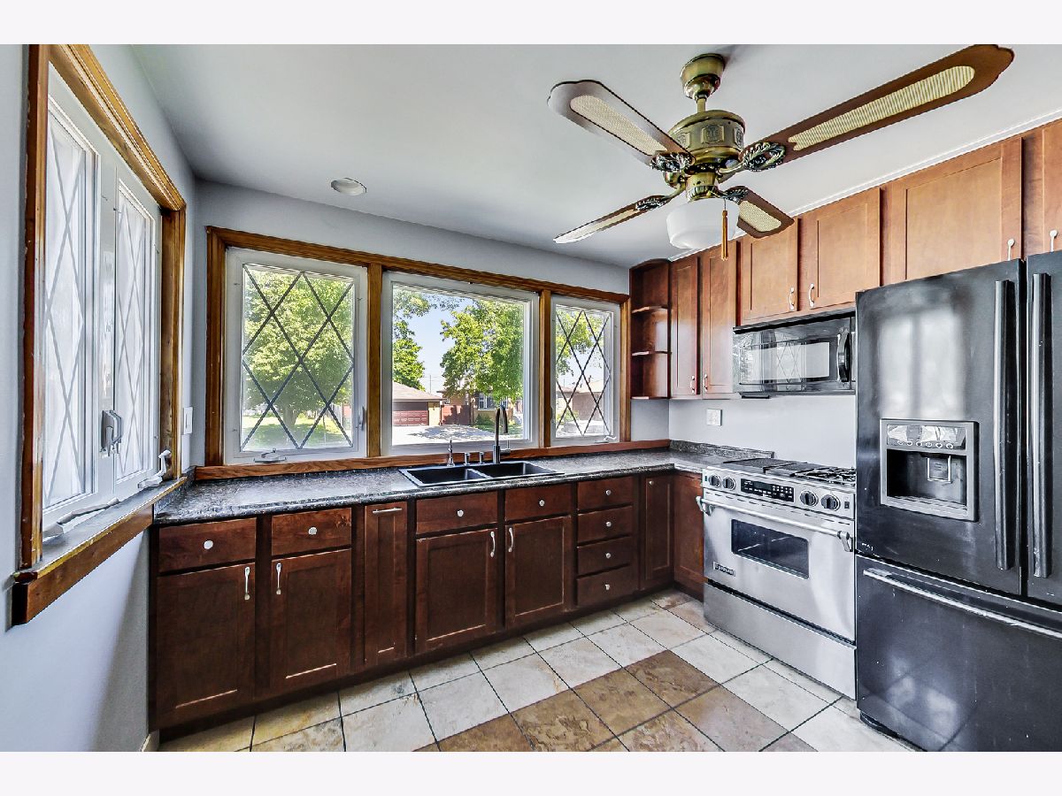 Raised 3br, 2ba ranch with side drive and double lot in Schiller Park. Living room, dining room, updated kitchen with 2br and full bath with hardwood under carpet on first floor. Basement with 3rd bedroom, full bath, recreation room and separate work, laundry and utility room. Newer windows, sump in laundry room, brand new ejector pump, 2-car garage and an older greenhouse in the fenced yard. Park across the street, close to expressways and public transport. New kitchen range to be installed.