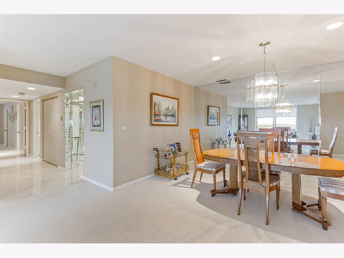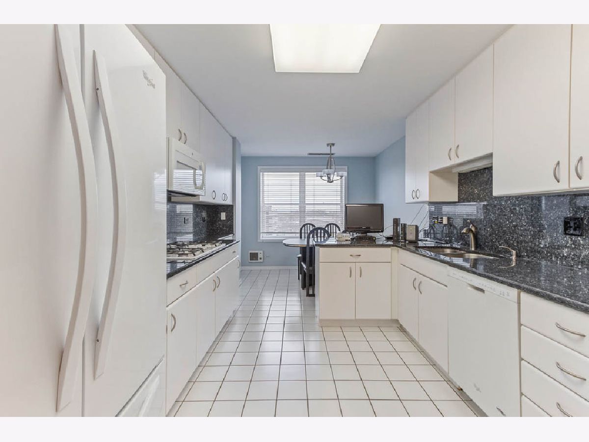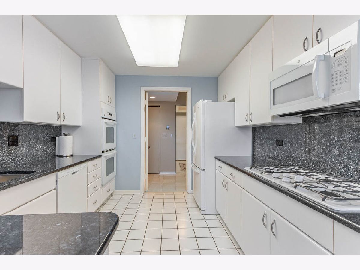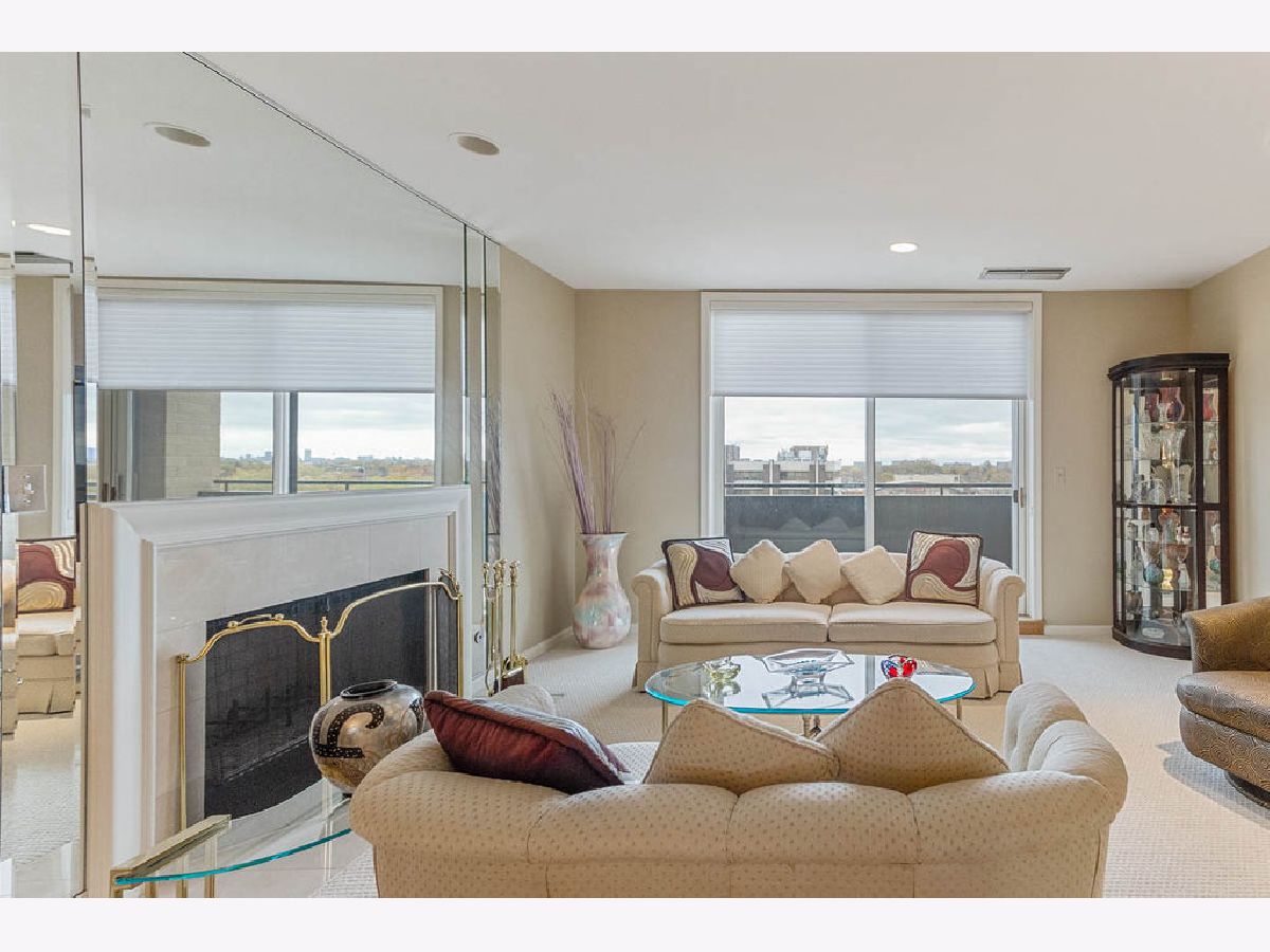 Barclay Place! Lovely, East-facing, 6th floor unit with city views. This 2 bedroom, 2 bath unit has been lovingly maintained throughout. Marble foyer with double entry guest closet and custom table. Large living room and dining room with gas-start fireplace and access to the tiled balcony is ideal for entertaining. The eat-in kitchen boasts granite countertops and loads of cabinet space. The spacious primary bedroom features a walk-in closet, full bath with jacuzzi tub, separate shower and dual vanities. In-unit laundry, same floor storage and 2 heated garage parking spaces (37 & 38), make this an ideal home. Amenities include 24 hr doorman, on-site engineer, pool, exercise room, party room and tennis courts. Estate sale. Property being sold "as-is".