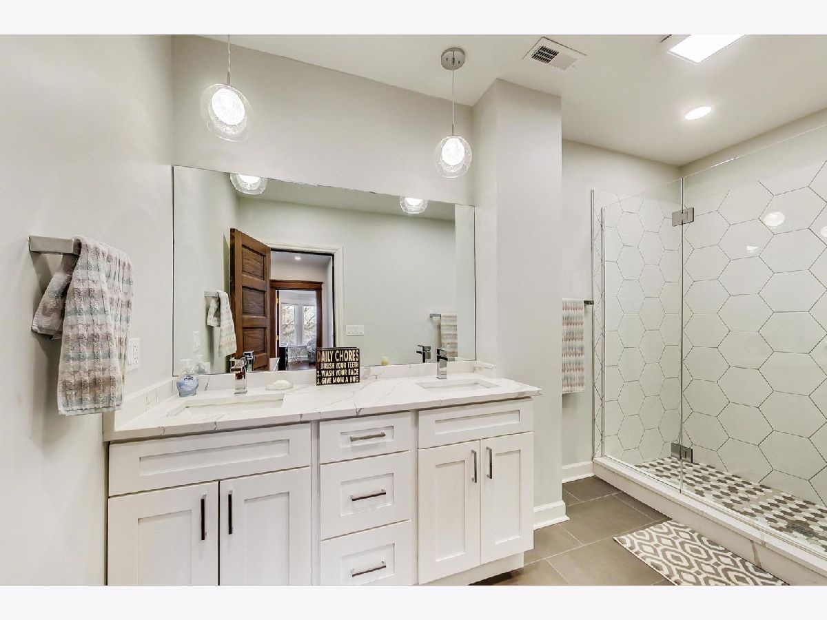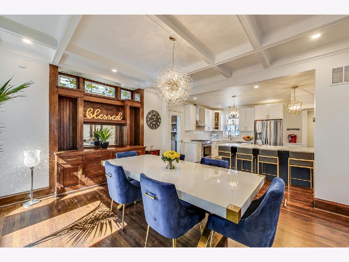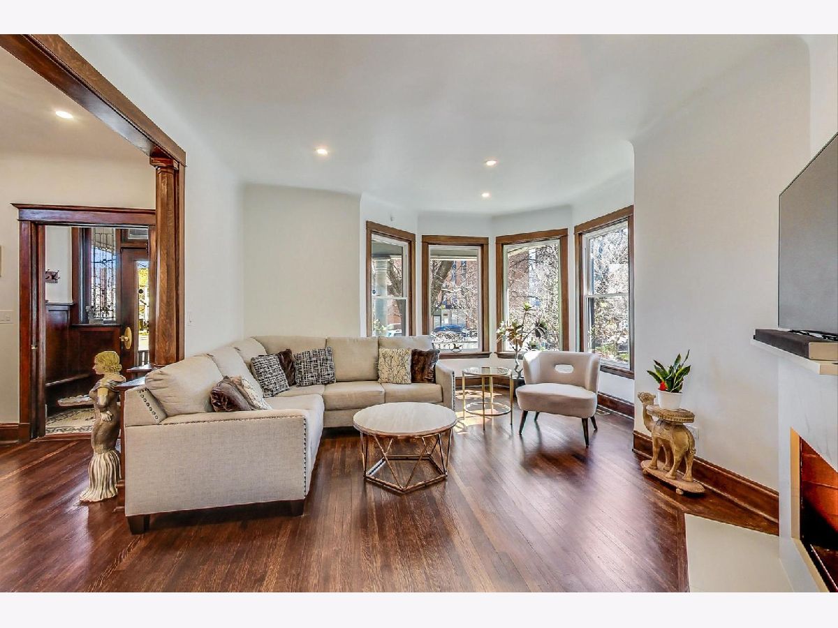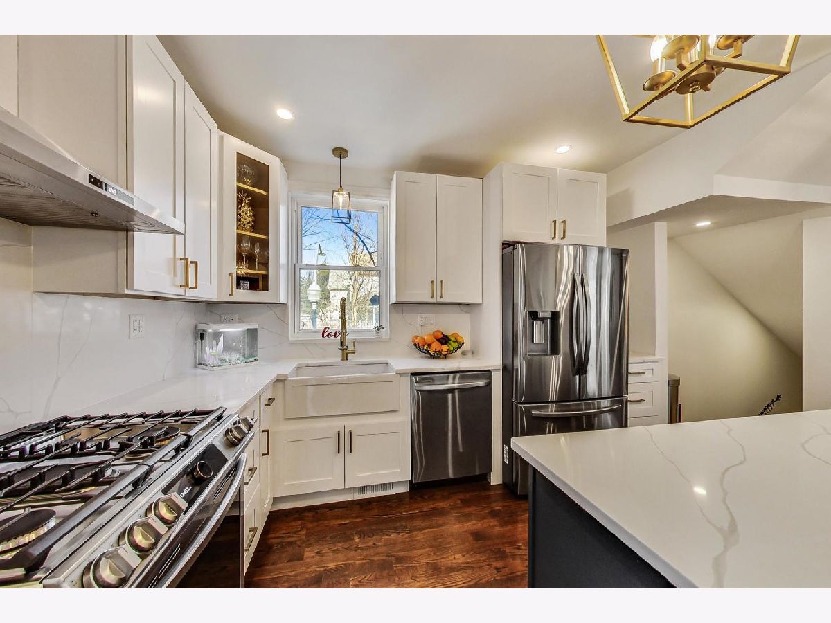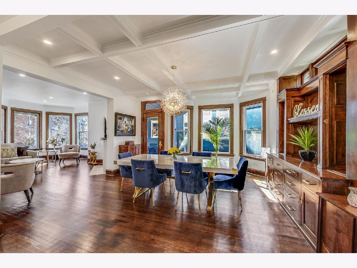 Located in the heart of the desirable Ravenswood/Lincoln Square neighborhood of Chicago, this stunning three-story Victorian home blends traditional charm with newly finished modern updates Completely remodeled in 2022. Offering 5 bedrooms, 3 bathrooms, and 4000 square feet of living space with incredible old world charm mixed with new modern flair! Brand new kitchen boasts new white solid wood Shaker style cabinetry blended with quartz countertops, stainless steel appliances, and an 8-ft island with solid wood blue cabinetry, a built-in microwave and wine cooler (2022), and breakfast bar. The main level offers large open floor plan offering living room with new picture windows, modern electric fireplace with quartz mantle. The perfectly positioned dining area has traditional refinished wood cabinets and coffered ceilings, along with door leading to your outdoor wrap around side porch. Taking you to the second floor is a one of a kind solid oak staircase leading you to the three spacious bedrooms and remodeled bathroom with a double vanity and stand-up shower. The third-floor master suite has an ensuite master bathroom with marble double vanity and large shower, and a walk-in closet. The fully finished walk-out basement provides recreation area, 5th bedroom, full bathroom, laundry room with a new washer/dryer, and extra storage. Recent upgrades include a new roof, electric, dual HVAC system, hot water heater, vinyl siding, gutters, and a newly paved 3-4 car tandem driveway. The home retains its original stained-glass windows and features an attached side and front porch. Situated on a tree-lined street, it's minutes from parks, top restaurants, shopping, and Lincoln Square, with easy access to public transit and I-90/94. A perfect blend of vintage charm and modern convenience-don't miss this one!