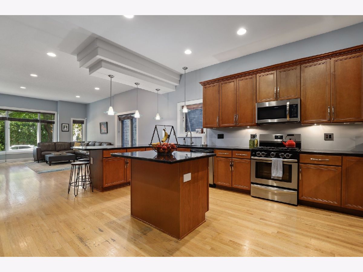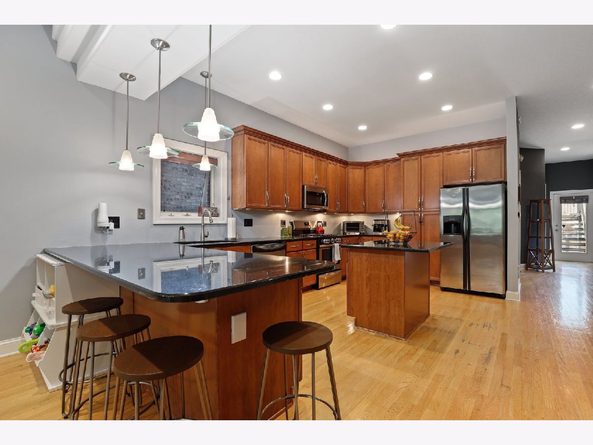 Welcome home to this bright 4 bed 2 bath duplex down in the heart of Bridgeport. Enjoy the expansive open kitchen with tons of cabinet space, granite counters with breakfast bar, center island, and stainless steel appliances. The kitchen overlooks the spacious front room which has enough room for the front room and dining table. Radiant heated floors and high ceilings that provide a great light and feel. Master bedroom setup on the main level with en suite master bath with dual bowl vanity, granite counters and separate walk-in shower and jacuzzi tub. Lower level has 3 very large bedrooms and an oversized bathroom with dual bowl vanity, granite counters, and Marble tub surround with glass sliding door. Full-sized laundry allows for side by side units and additional storage. 1 Exterior parking spot included in the price. Enjoy the rear private deck great for grilling! Fantastic location! EZ access to 90/94, short distance to White Sox Park, and all Bridgeport has to offer. Schedule your showing today!