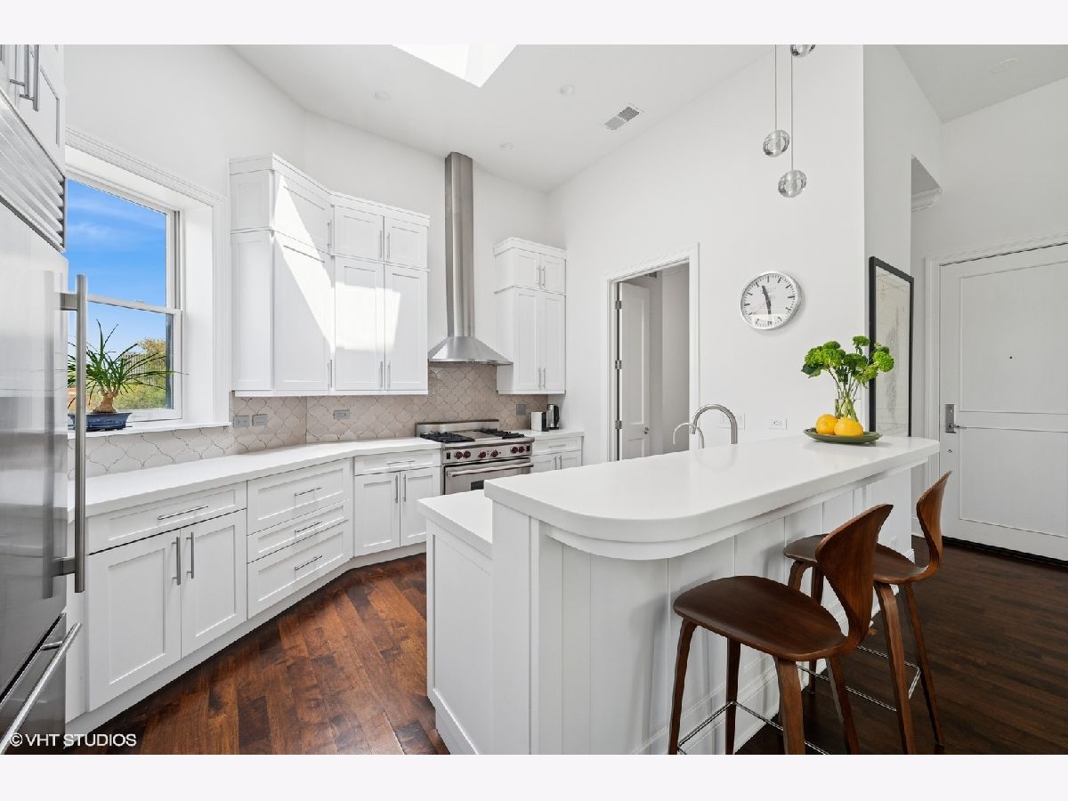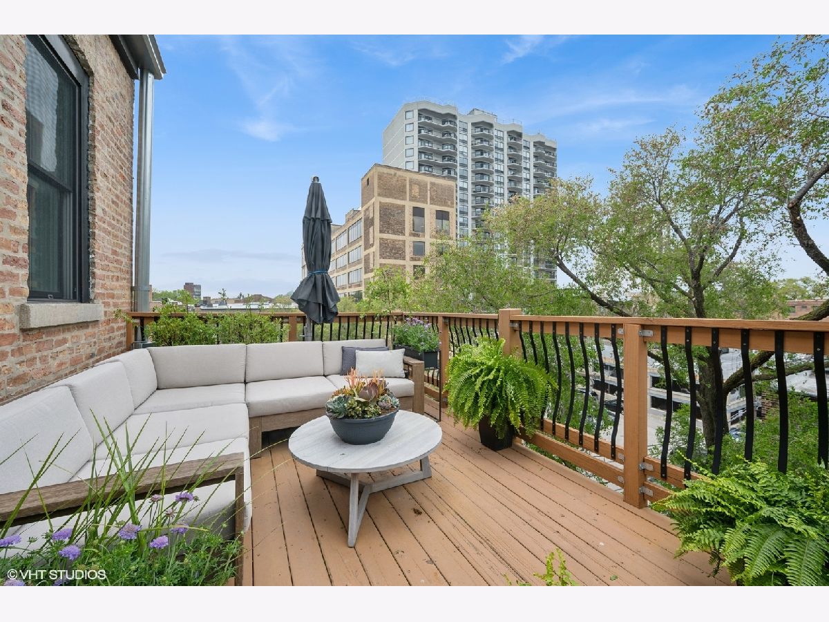 Welcome to your top floor sanctuary in the heart of East Lincoln Park. Offering an unparalleled quality of life in one of Chicago's most coveted neighborhoods. This unbeatable location provides easy access to the Chicago shoreline and its 1,500 acres of Lincoln Park's green space at the East end of Deming, as well as a variety of shops, coffee houses, and unlimited dining options to the West on Clark, and to the North on Broadway. Featuring three spacious bedrooms and two and a half beautifully updated bathrooms, this home is designed with both style and functionality in mind. The primary suite is a true retreat, boasting afternoon sunsets, two walk-in closets with custom built-out organizers, a water closet, large soaking tub, separate shower, and an oversized vanity-providing ample space for both relaxation and daily living. The open-concept living room has 14ft ceilings, gorgeous hardwood floors, treetop views, and an abundance of natural light! North ,East, South, and West-facing windows throughout! The kitchen is a chef's dream, offering ample prep space while being thoughtfully integrated into the main living area for flow of entertaining. Enjoy the convenience of side-by-side washer and dryer, forced heating and cooling to ensure comfort throughout the seasons, and private elevator access that opens directly into your home. Step outside onto your private outdoor deck and enjoy the afternoon sunset glow, perfect for relaxing or entertaining. A home with the classic, vintage Lincoln Park charm AND updated electrical, plumbing, windows, 4 skylights, and today's modern amenities is hard to find! Secure elevator building with Latch entry system, dedicated exterior parking with EV charger, and gated entry offer peace of mind. Additional amenities include a bike room, common storage, video intercom, and a security system.