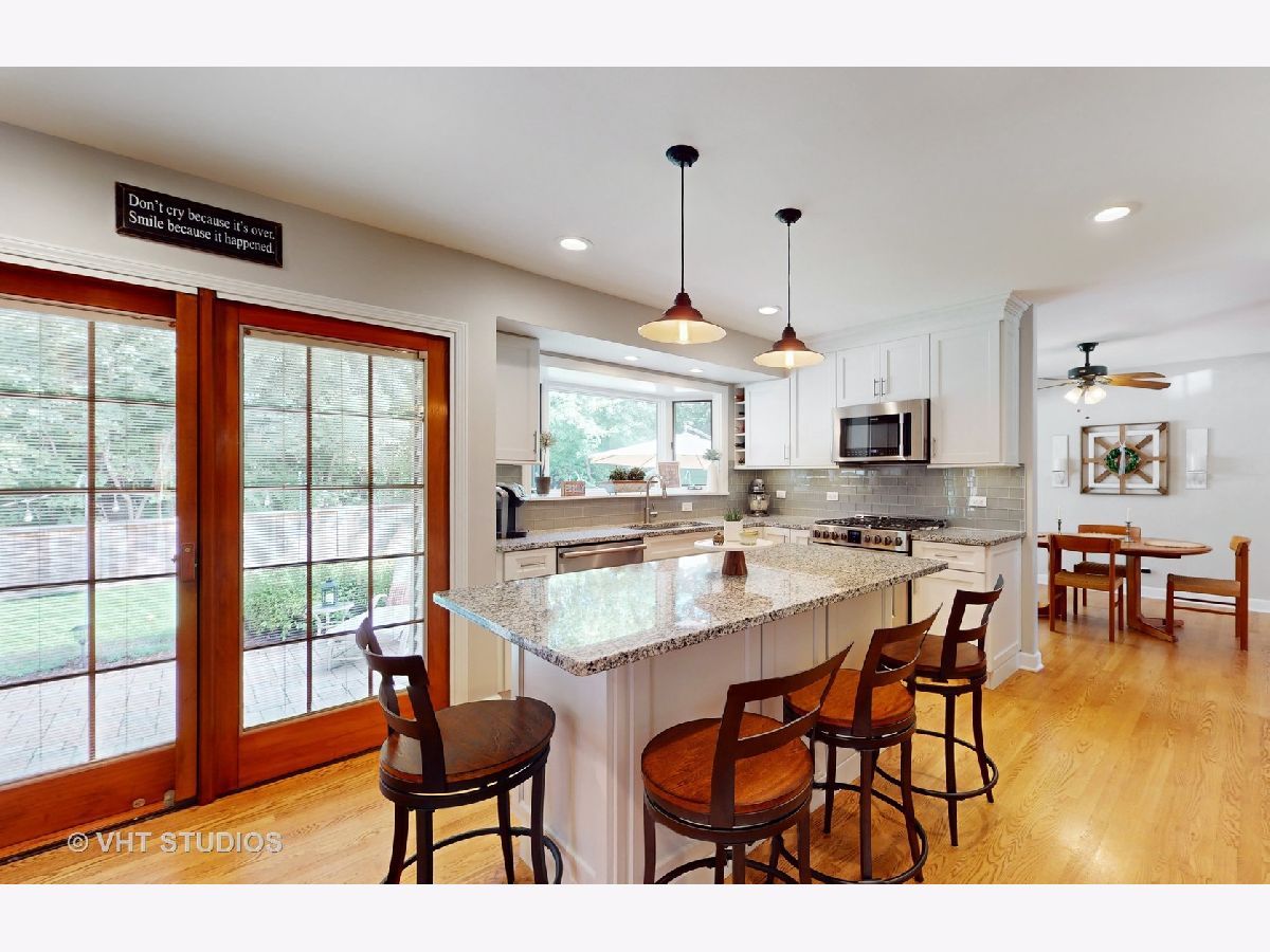 Meticulously maintained home by long time owners. A light and bright open floor plan welcomes you in to this warm and inviting home. This beauty has been well cared for and consistently updated over the years. As you enter, you'll notice the gleaming hardwood floors and elegant detail. A spacious living room with bay window wrapping around to your dining room with custom cabinet and sliders to your patio. You'll be taken back by this updated kitchen which boasts custom cabinets, glass tile backsplash, granite counters, a cozy fireplace and all stainless-steel appliances. Off the kitchen is a nice sitting area or space for that extra kitchen table which also opens to your patio. Main floor master bedroom with private updated bath and his/hers closets. Upstairs hosts 3 more generous bedrooms all with new carpet. (note: bedrooms have hardwood underneath) and another updated full bathroom. Basement is fully finished with wet bar and laundry room. There is a nice clean, deep crawl space, perfect for all that extra storage. Don't forget about your private oasis of a backyard. It's fully fenced, with private mature landscaping, and gorgeous paver patio and storage shed! Fremd High School. Close to all area amenities. Truly Move-In Ready!
