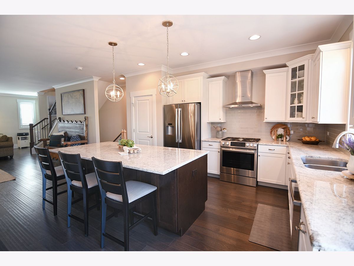 Walk to downtown Geneva - Luxurious maintenance free lock and leave living! Gorgeous 3 bedroom, 2.2 bath 3 yr old townhouse in like new condition. Open concept floor plan features: great room/dining room/den with integrated office nook and Chef's kitchen featuring a huge double island, granite counters, stainless steel appliances. Hardwood floors, beautiful trim and doors, accent walls, family room/flex room in lower level features a powder room and bar with beverage fridge, upstairs is a luxurious master suite with walk-in closet, private bath, and two more bedrooms, convenient 2nd fl laundry, outdoor balcony overlooks central courtyard with fireplace and trees- location, location, location - just 4 blocks from restaurants and shops, 8 blocks to train, across from Wheeler park and Fox River and right on the bike trail - just under 2300 square feet! Attached two car garage with TONS of integrated storage - live the good life! Across the street form million dollar townhomes. Dogs allowed.