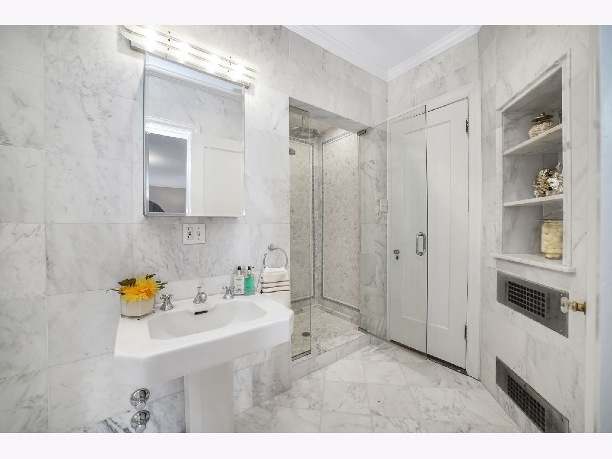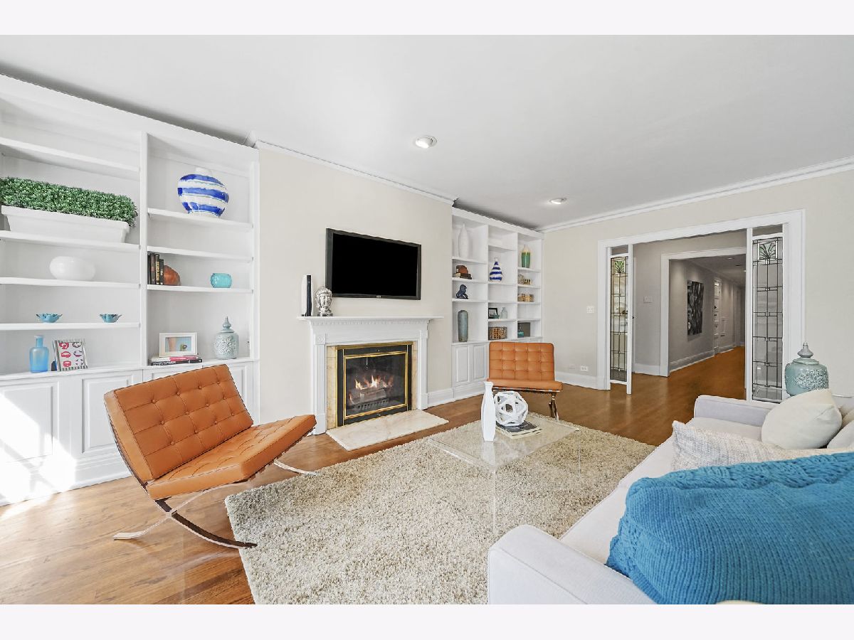 NEW PRICE - CHARMING EAST LAKEVIEW 2200SQFT 3BR/3BA + GARAGE INCLUDED. This bright, south facing condo offers a graciously proportioned floor plan just steps from the lake, restaurants and transportation that make this neighborhood desirable. A private foyer entrance with antique glass, hardwood floors throughout and impressive family room w/ wood burning fireplace & built-in cabinets that open flows to large private dining room. Freshly updated kitchen with eat-in island, custom backsplash and NEW stainless steel appliances. Three bedrooms each with their own connecting ensuite full bath. Unit features radiator heat included in assessment, central air conditioning (space pak), wood windows and french doors over looking the front and rear yard. Additional storage and bike room in basement. This professionally managed 7-unit building features a fenced backyard, convenient guest parking and historic landmarked garage.