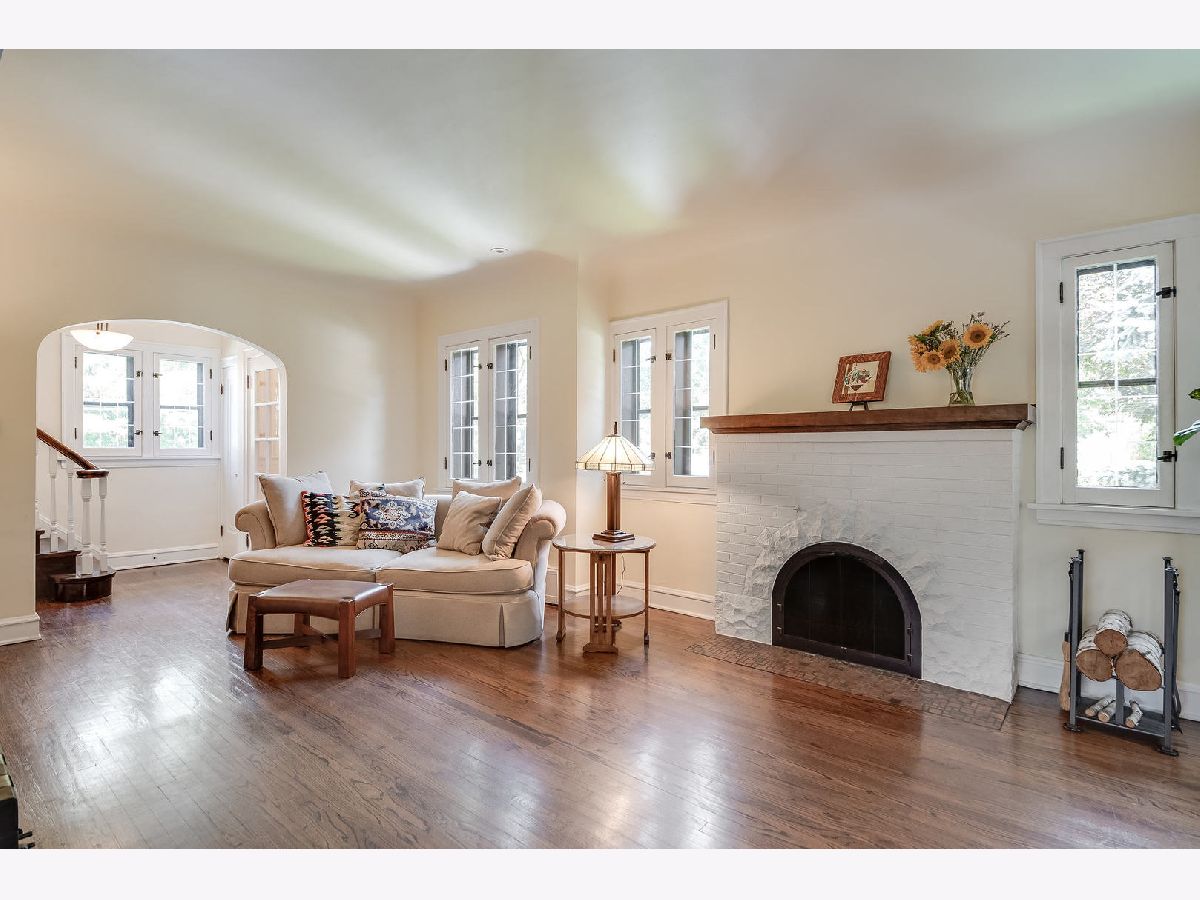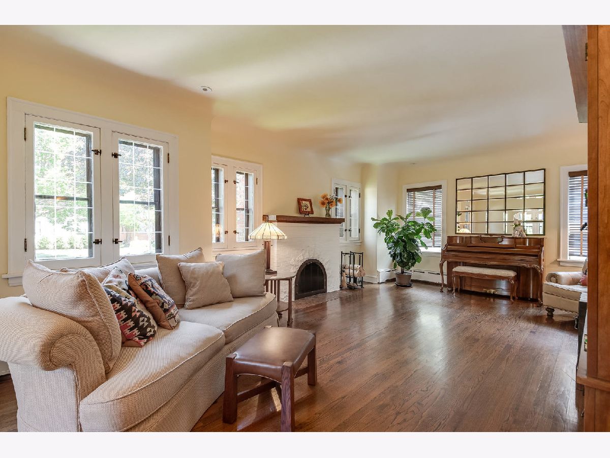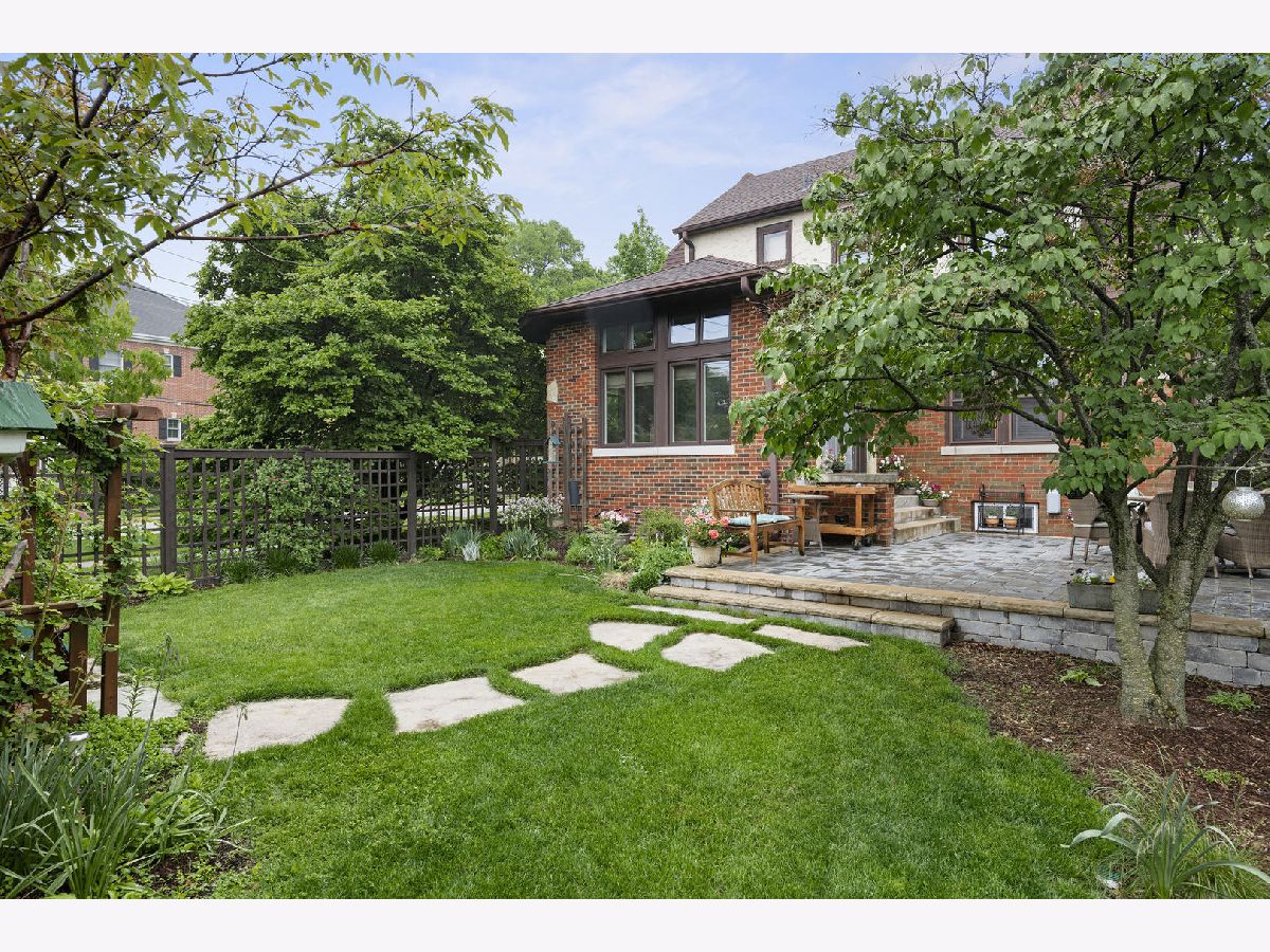 Picturesque 1.5 Story with English flair. A beautiful fireplace frames the LR w/ dark stained HW floors, unique etched windows & coved ceiling. Pride of ownership throughout. Open floor plan kitchen w/ center island flows into 1st floor FR w/ vaulted ceiling and great views of professional landscaped yard & lush garden areas. Newer flag stone walk & entry landings welcomes you into front & side entry doors. LR & BSMT finished with space for office or children's playroom. Backyard covered Lattice Fencing w/ Oversized blue stone patio overlooking backyard. Located steps from the Prairie Path. Walk to town, train, library, parks, schools, and more!