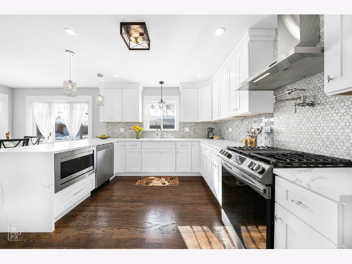 MUST SEE!!! HERES ANOTHER JOE NARDULLI MASTERPIECE!!! COMPLETELY REHABBED BEAUTIFUL CORNER LOT SINGLE FAMILY HOME IN HIGHLY DESIRABLE NORRIDGE. THIS IS PROBABLY THE BEST LOCATION IN NORRIDGE. MASTER BEDROOM HAS ITS OWN BATHROOM. WHITE AND GREY SHAKER CABINETS WITH CUSTOM CROWN MOLDING AND POT FILLER OVER THE RANGE. HIGH END PLUMBING FIXTURES THROUGHOUT TWO BLOCKS FROM NORRIDGE POOL AND PARK DISTRICT. NORRIDGE HAS GREAT PUBLIC SCHOOLS. THIS TYPE OF LARGE CUSTOM BUILT CORNER LOT OVERSIZED RAISED RANCH RARELY BECOME AVAILABLE!!! 3 LARGE BEDROOMS ABOVE GRADE IN THE HOUSE!!!! ADDITIONAL 2 ROOMS IN BASEMENT FOR OFFICE, BEDROOMS, OR STORAGE. ALL NEW PLUMBING AND 75 GALLON HOT WATER TANK, BRAND NEW 1 INCH WATER SERVICE INSTALLED FROM THE WATER MAIN. NEVER WORRY ABOUT WATER YOUR GRASS AGAIN BECAUSE THIS CORNER LOT HAS A SPRINKLER SYSTEM. ALL NEW ELECTRIC WITH CUSTOM LIGHTING AND CANLIGHTS THROUGHOUT , BRAND NEW HEATING AND CENTRAL AIR SYSTEM. CUSTOM WHITE SHAKER KITCHEN CABINETS WITH QUARTZ COUNTERTOPS AND BRAND NEW HIGH END STAINLESS STEEL KITCHEN. YOUR BRAND NEW FULL FINISHED BASEMENT WILL NEVER FLOOD DUE TO BRAND NEW WATERPROOFED DRAIN TILE SYSTEM WITH MOISTURE MEMBRANE AROUND THE ENTIRE PERIMETER WITH 2 FULL TIME SUMP PUMP SYSTEMS. YOUR BASEMENT WILL NEVER BACK UP DUE TO THE OVERHEAD SEWER SYSTEM. HARDWOOD FLOORS COMBINED WITH HIGH END VINYL PLANK WOOD FLOORING THROUGHOUT THE WHOLE BASEMENT. CUSTOM HIGH END PORCELAIN TILE WORK THROUGHOUT KITCHENS AND BATH. KITCHEN HAS A PENINSULA FOR EATING AND ITS OWN PRIVATE LITTLE BREAKFAST AREA. 10 FOOT FULL WET BAR IN THE BASEMENT THAT IS PERFECT FRO ENTERTAINING. 3 FULL BATHROOMS. 2 CAR ATTACHED GARAGE. THE GARAGE FLOOR HAS BEEN COMPLETELY FINISHED WITH HIGH END DEALERSHIP GRADE EPOXY FLOORS. (PLEASE FORGIVE THE PERSONAL POSESSIONS IN THE GARAGE) KILLER LOCATION CLOSE TO ALL PUBLIC TRANSPORTATION AND HIGHWAYS. CUSTOM WORK THROUGHOUT. BRING YOUR FUSSIEST BUYER AND SHOW WITH PRIDE!!! PLEASE BE RESPECTFUL AND TAKE YOUR SHOES OFF. WE ARE DOING THE BEST WE CAN TO ELIMINATE THE SNOW ON WALKWAYS.