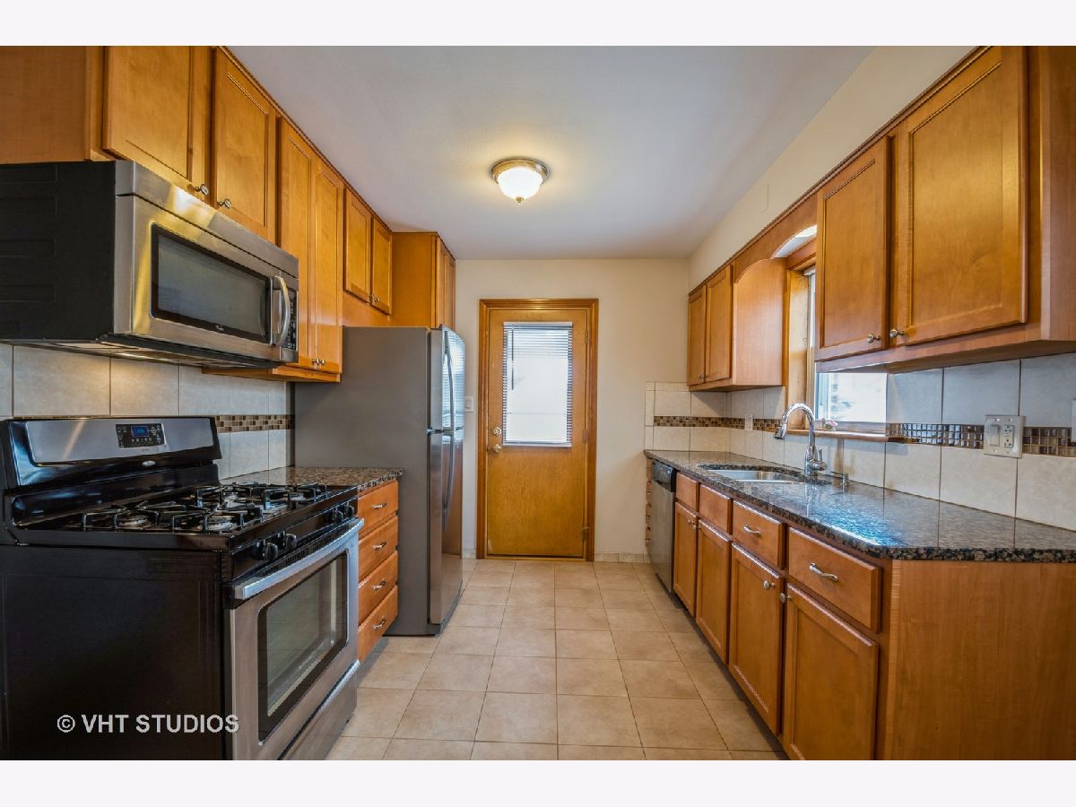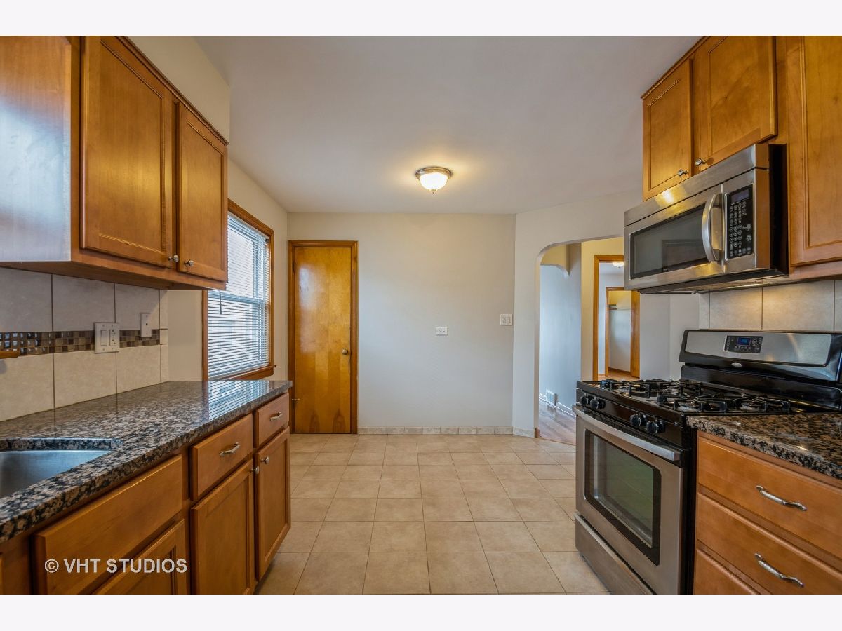 Solid Brick Ranch! Remodeled kitchen and bath, move in condition. Clean and bright, all room just freshly painted. Beautiful hardwood floors. Spacious updated kitchen features custom wood cabinets, granite countertops, stainless appliances and sink with garbage disposal. Carefree ceramic tiled floor throughout kitchen and adjacent dinette area. Two pantries for all your storage needs. Ceramic tiles bath has updated tub, fixtures and vanity sink. Nice sized bedrooms, large double door closet in master. Full open slate basement ready to finish. Huge fenced backyard. Very convenient location, walk to Dunham Park, short distance to Jefferson Park Metra, CTA trains. Immediate occupancy.