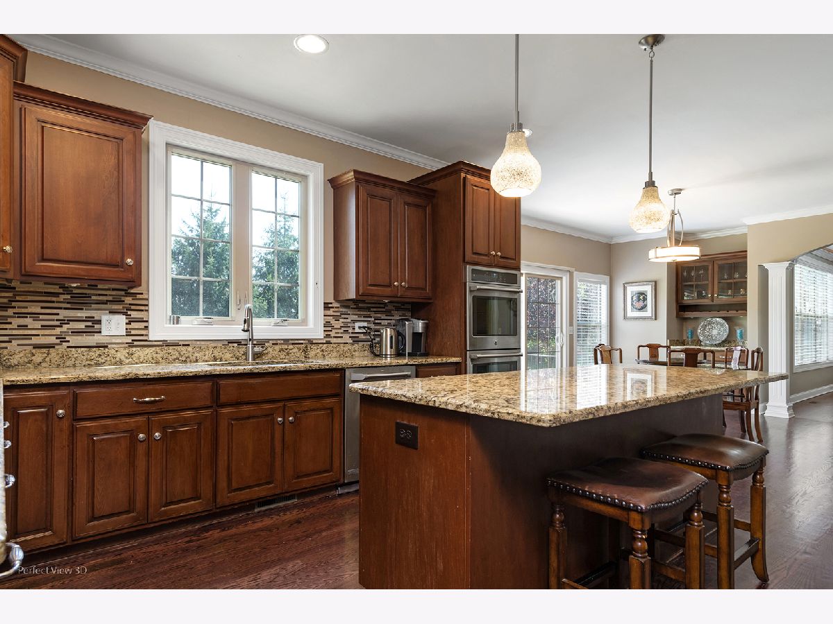 Welcome to this absolutely gorgeous, custom build home in Ashwood Park of Naperville at top Indian Prairie school district 204! This beautiful spacious home located on over a one-third acre lot with fenced yard and features with a 2-story foyer, solid oak floors through the entire 1st and 2nd floors plus stairs and hallway. Large formal living and dining rooms feature custom millwork, recessed 9' tray ceilings, and custom wood blinds. First floor study room provides the perfect space when working from home. Fully equipped kitchen with granite countertops, stainless steel appliances, custom woven wood shades, loads of 42"cabinets, pendant and recessed lighting. Adjacent breakfast room provides access to the large paver patio and lovely, sizable, landscaped yard. Generous family room with stone, wood burning fireplace, custom blinds and ceiling fan. First floor laundry room provides access to the attached 3 car garage. Master suite has tray ceiling with hidden accent lighting, walk-in closet with organizing system, luxury full bath features dual vanity with granite countertop, whirlpool tub, large, separate shower. Bedrooms two and three features generous closet space and Jack and Jill Bath with dual vanity and granite countertops; Bedroom four has vaulted ceiling and private full bath. Home also features custom millwork and wainscotting in the foyer, study, living and dining rooms and second floor hallway. The professionally finished basement adds additional finished square footage and features huge recreation area being used as a fitness/cinema room, and kitchen area with central island, granite countertops and cabinets, and a refrigerator. Basement also with luxury vinyl planked flooring, two bed rooms, and storage room, and a full bath with toilet, amenity, full size shower. Additional highly valued features such as: Brand new cooktop, year 2024 about $4K valued new high-end sum pump with backup sump pump and high-end battery, exterior Brick and year 2022 new painted exterior cedar siding, year 2021 newer water heater, a concrete driveway, 3 car garage, and inground sprinkling system and security system. Ashwood Park is great community and enjoy your summer at the private 8+ Million Dollar Clubhouse with activities for the entire family...3 Pools, 2 Sport Courts, Fitness Center, Indoor and outdoor basketball Court, Gathering Room/Recreation Room and 3 Season Veranda. Close to shopping, restaurants, grocery stores. Must see this great home today!!