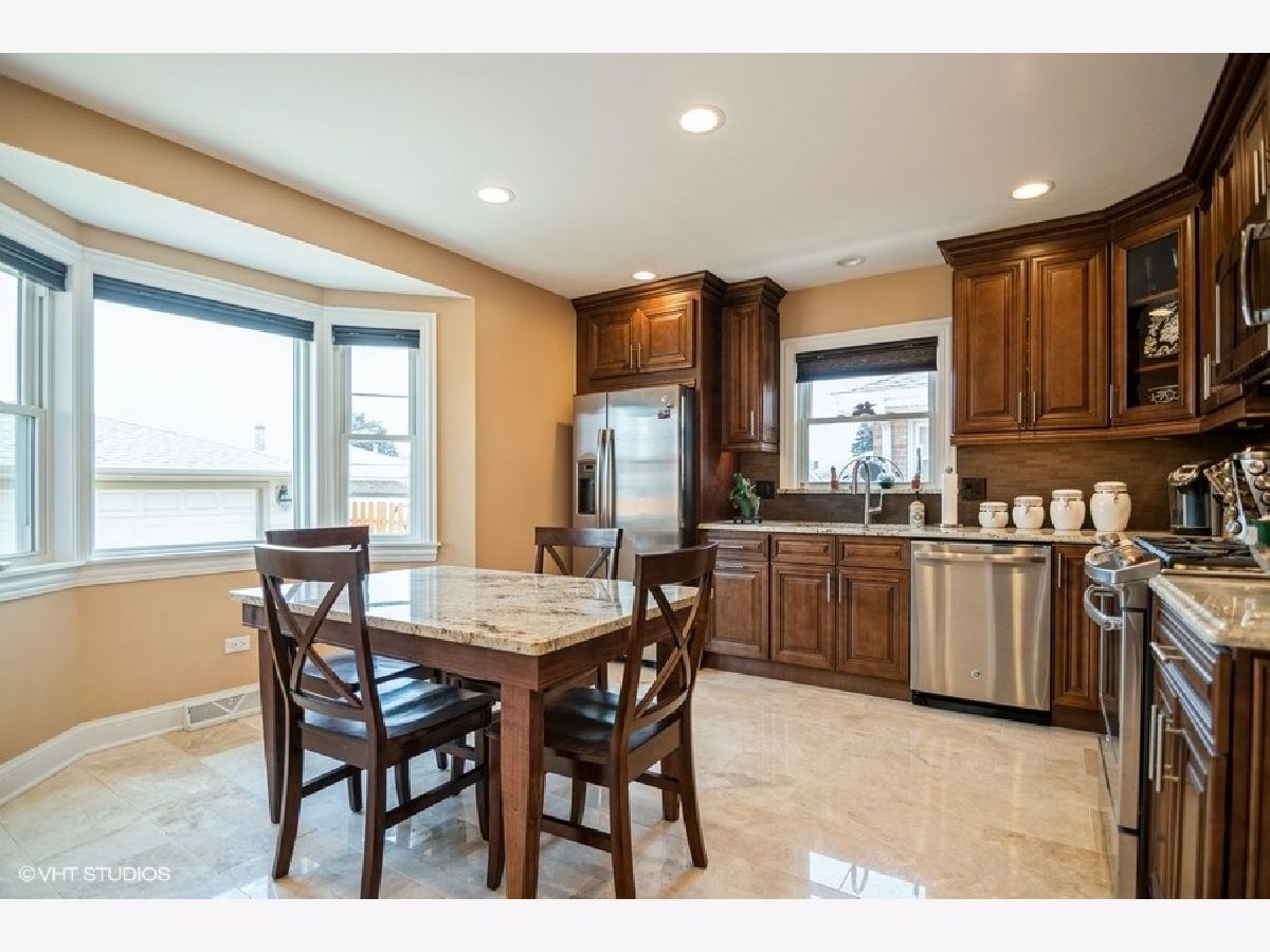 Outstanding 3-bedroom 2-bath raised ranch home within walking distance of the park district, pool, and all Norridge schools! You will be amazed by this house's attention to detail and craftsmanship. Great layout: huge living room with brand-new window and separate dining room full of natural light. Freshly painted and updated with new floors throughout. Three well-sized bedrooms. Gorgeous new kitchen with granite countertops, stainless steel appliances, and a lovely breakfast nook with a bow window. Fully-finished basement with incredible handcrafted woodwork on columns and stairwell, and a stunning custom-built wet bar. Bonus extra full kitchen in the basement! Everything you need to entertain guests or relax with family. Side driveway, 2-car garage, and a beautiful fenced-in yard with patio. This is one of the best locations in Norridge, central between parks, schools, and local shopping. Get it before it's gone!