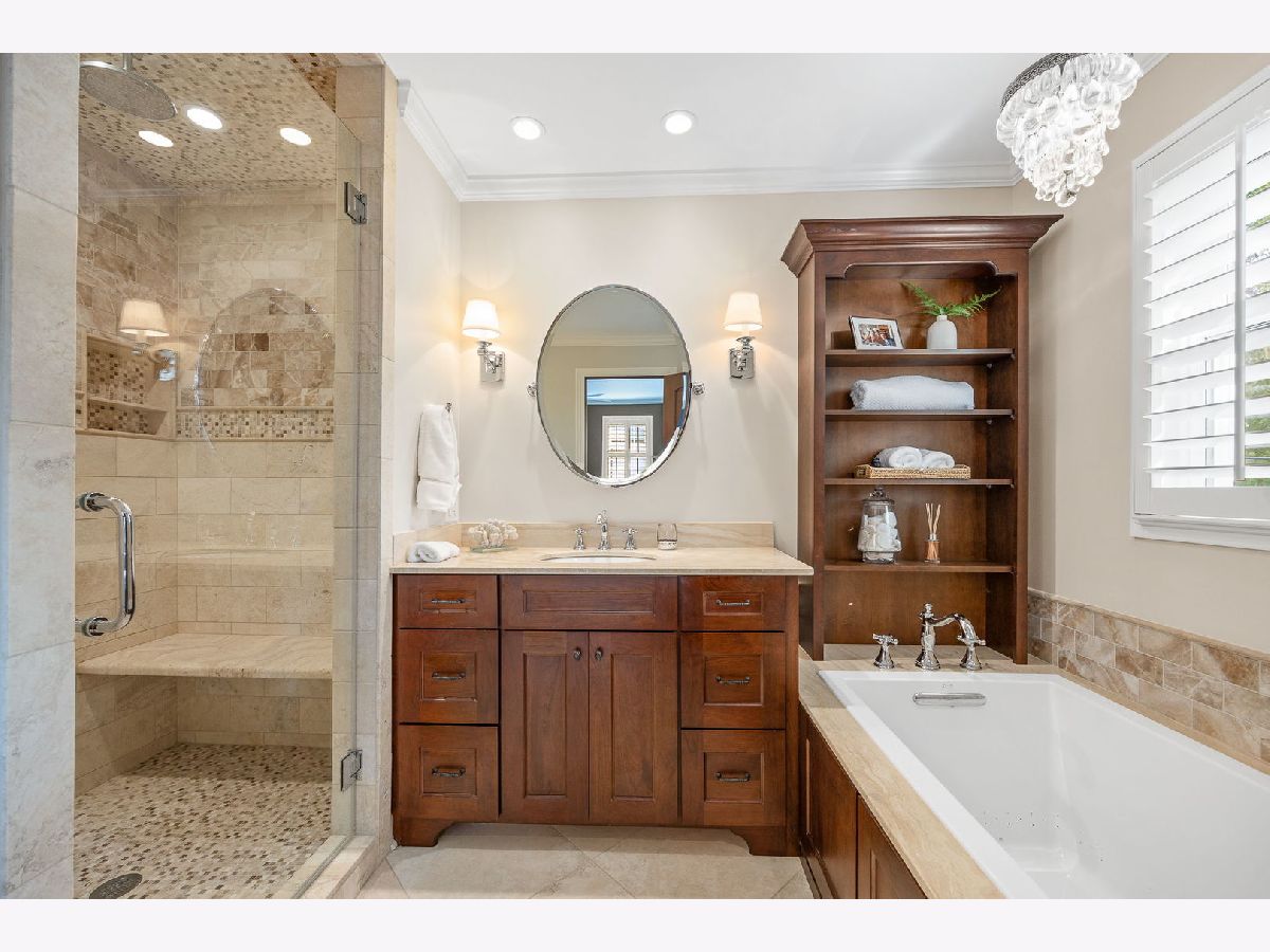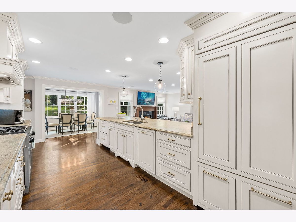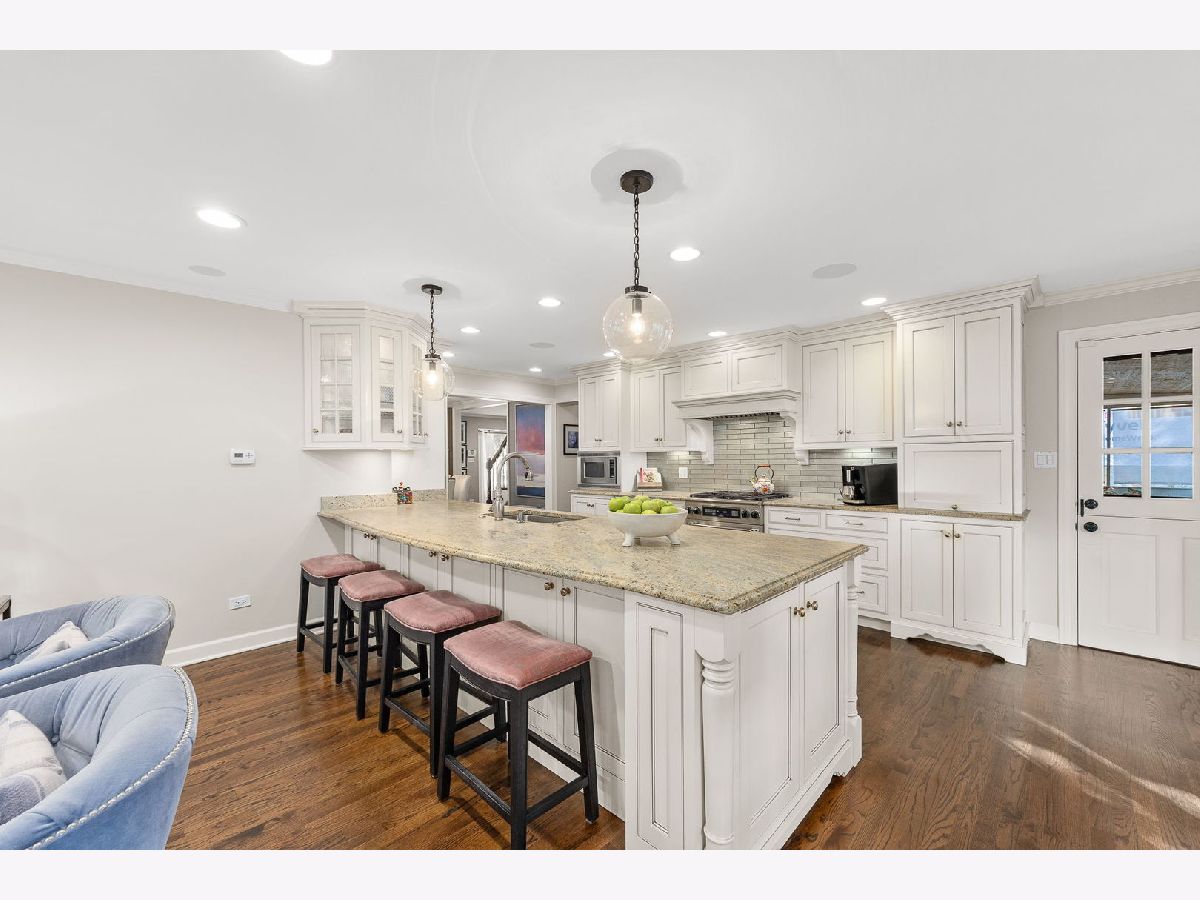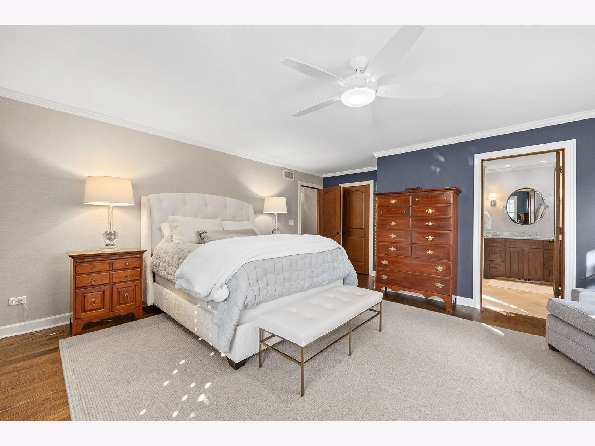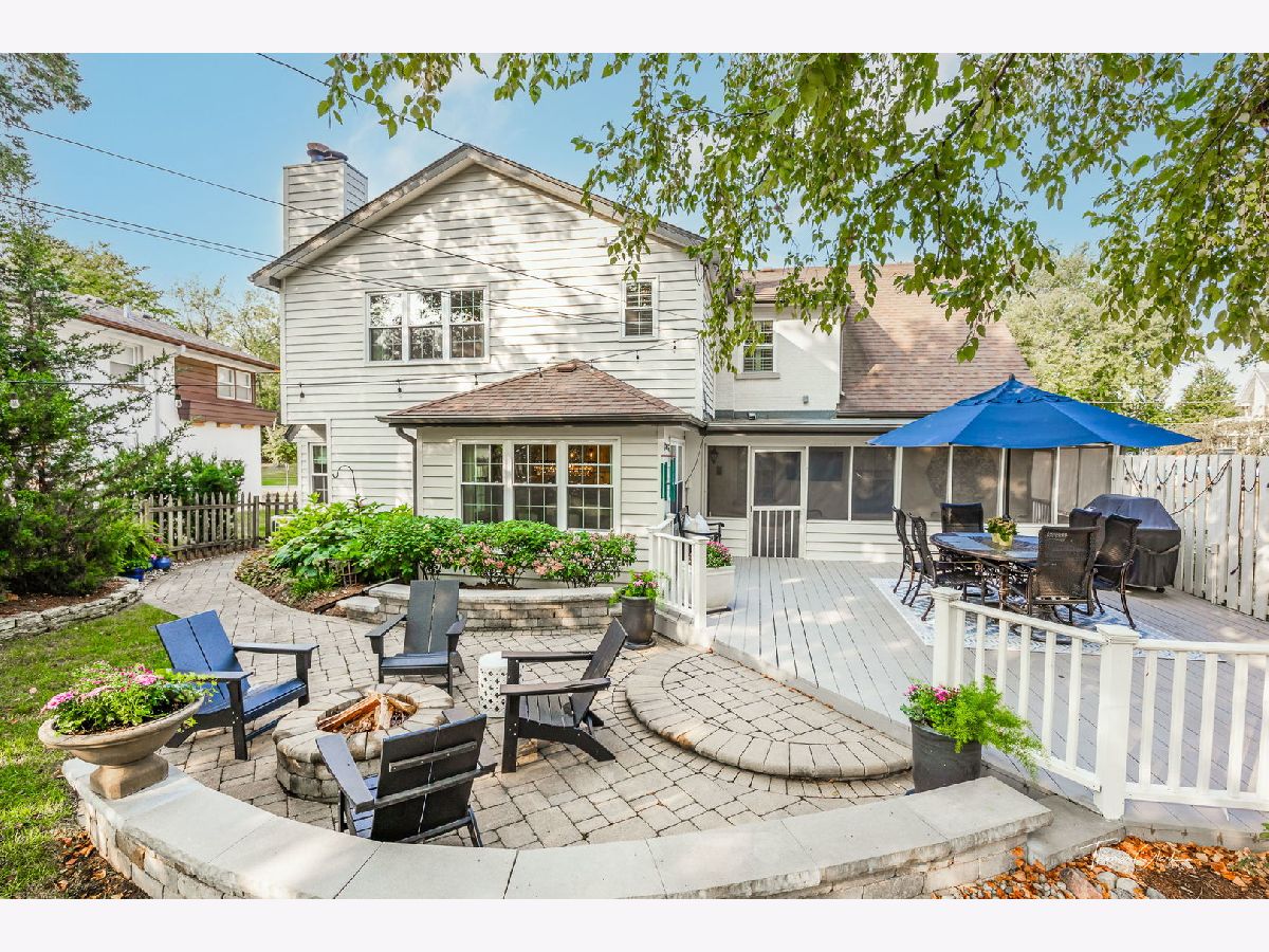 Nestled in one of the most sought after neighborhoods this charming, architecturally unique home is a true gem offering modern updates and timeless design. The exterior boasts a natural stamped concrete driveway and walkway that leads to the quaint front porch and the fully fenced backyard is huge offering plenty of outdoor space, a deck and paver brick patio. Inside you'll find a seamless blend of contemporary finishes and thoughtful renovations including a remodeled chef's kitchen featuring an expansive center island, custom cabinetry, backsplash, high end appliances, a range with custom hood, refrigerator bar and tons of storage. The adjacent eat-in areas, large family room and living room and the charming screened-in porch makes entertaining a breeze. The first floor also offers a fifth bedroom or work office, a half bath and hardwood floors throughout adding warmth and elegance to every room. Upstairs you'll find 4 large bedrooms designed for relaxation and privacy. Bedrooms are generously sized with room for king sized beds, seating areas and additional furnishings. The Primary suite is ample and offers a walk in closet, fireplace and an updated bath with custom vanities, spa like shower, soaking jetted tub and luxurious fixtures. The shared second bath is updated to perfection. Lower level includes a recreation room, exercise room, plenty of storage and has stairs leading to the garage. This stunning home has been completely renovated over the years. Additional updates and features include HW floors throughout the entire home, remodeled bathrooms, all interior mahogany doors, light fixtures, newer furnace, AC's, garage door, outdoor patio, professional landscaping, shutters throughout, custom drapery, closet organizers and so much more! This magazine worthy home is perfectly situated on a tree lined street-a simple stroll to downtown Glen Ellyn, train and schools!