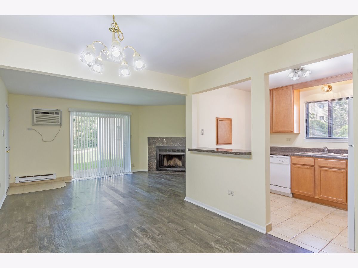 Clean and bright Fox Cove main level condo. Fresh paint and new vinyl wood flooring throughout. Fully applianced kitchen with stunning maple cabinets ~ Appreciate the natural light coming in the rare kitchen window that is not common among these units! Spacious living room with fireplace and sliding door that opens to a private patio. 2 wall unit air conditioners in living room and bedroom. Convenient main level coin laundry located just next door to the unit. Beautiful private views from the back. Amazing location near shopping, dining, parks and major highways. This adorable unit will go FAST!