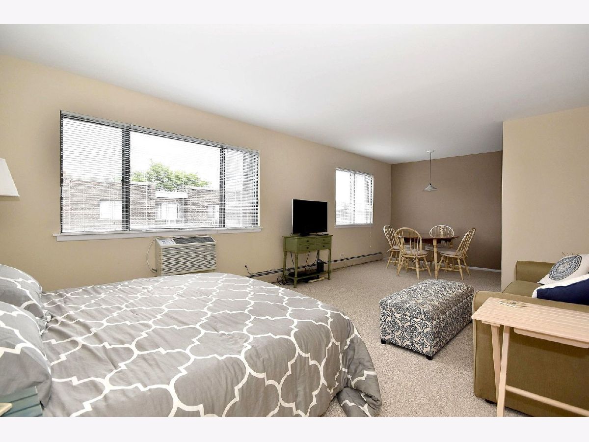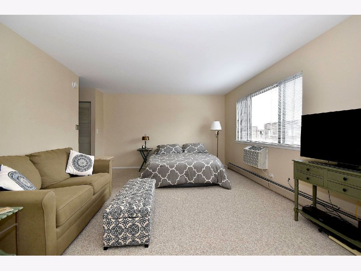 Why rent when you can own this condo for less than $800 a month with $3,000 down including heat and a garage parking spot? This longtime owned Studio is the larger 'Frisco' model and has been meticulously kept. Lovely top level unit in 4 floor elevator building. Walk into tiled foyer with large closet. Huge great room area has been newly carpeted. Easy access to tiled kitchen with good cabinet and counter space. Ceramic tile bathroom with new toilet. Views of lovely Courtyard out your windows. One assigned parking spot, #74, in heated garage as well as assigned storage locker, #17. Coin laundry, party room and open courtyard area for sunning and relaxing. New roof. Terrific location close to Jewel, restaurants, shops, bars, CTA Blue Line and expressway! Low assessments include heat, water, gas and more. Moving towards being 100% owner occupied. No rentals allowed. Roof is a flat TPO (Thermoplastic Polyolefin ) installed in 2019. This home can be yours for less than $800 a month!