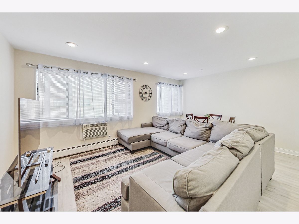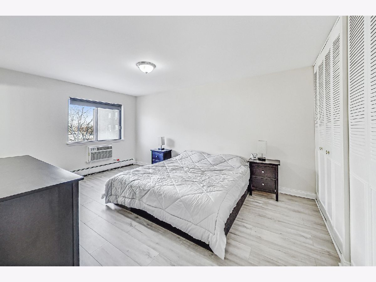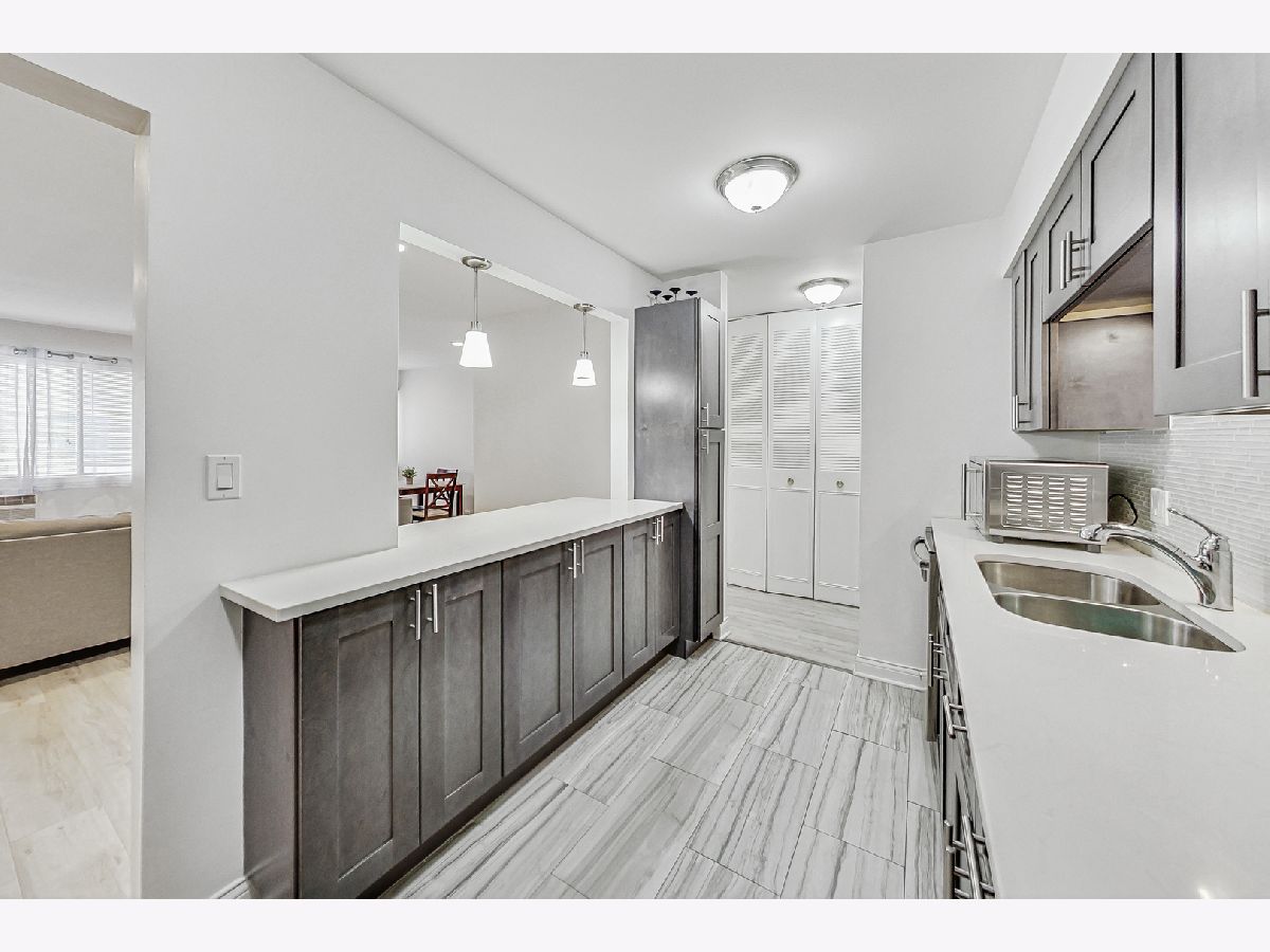 Tons of natural light fills this large corner unit. The kitchen is beautiful with quartz counters, decorative backsplash and all the modern updates. 2 large bedrooms and 2 full updated bathrooms make this the perfect place. Units like this are rarely available and it comes with 1 garage space, additional street parking also available. Assessment includes heat, gas and water. Close to I-90, I-294, Ohare Airport, The Blue Line Cumberland Station. Close to shopping. Parking space #93, Storage #44