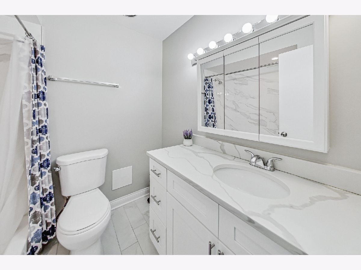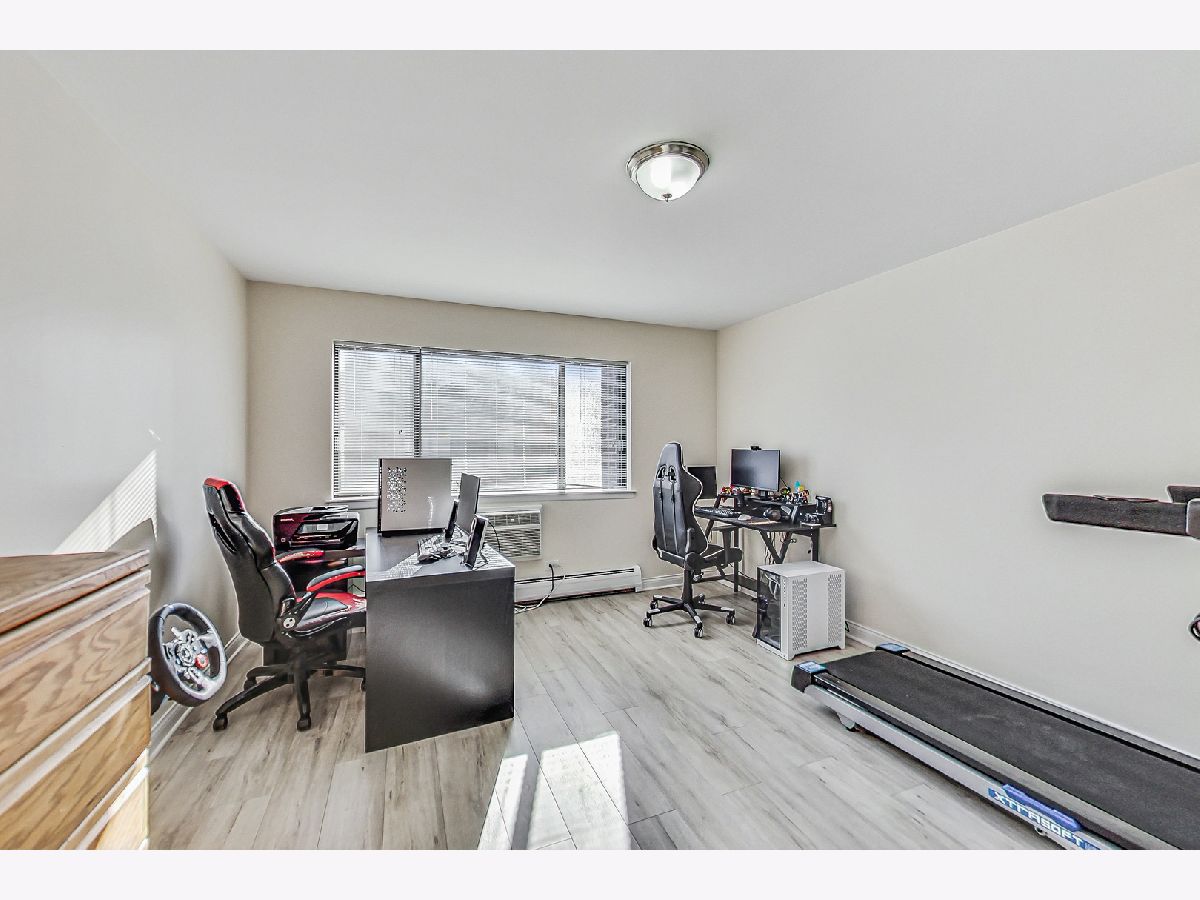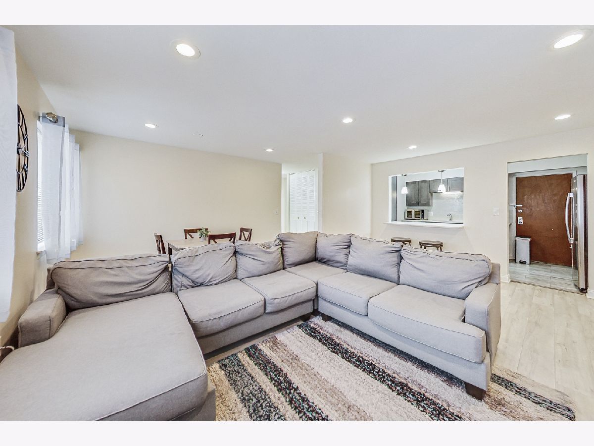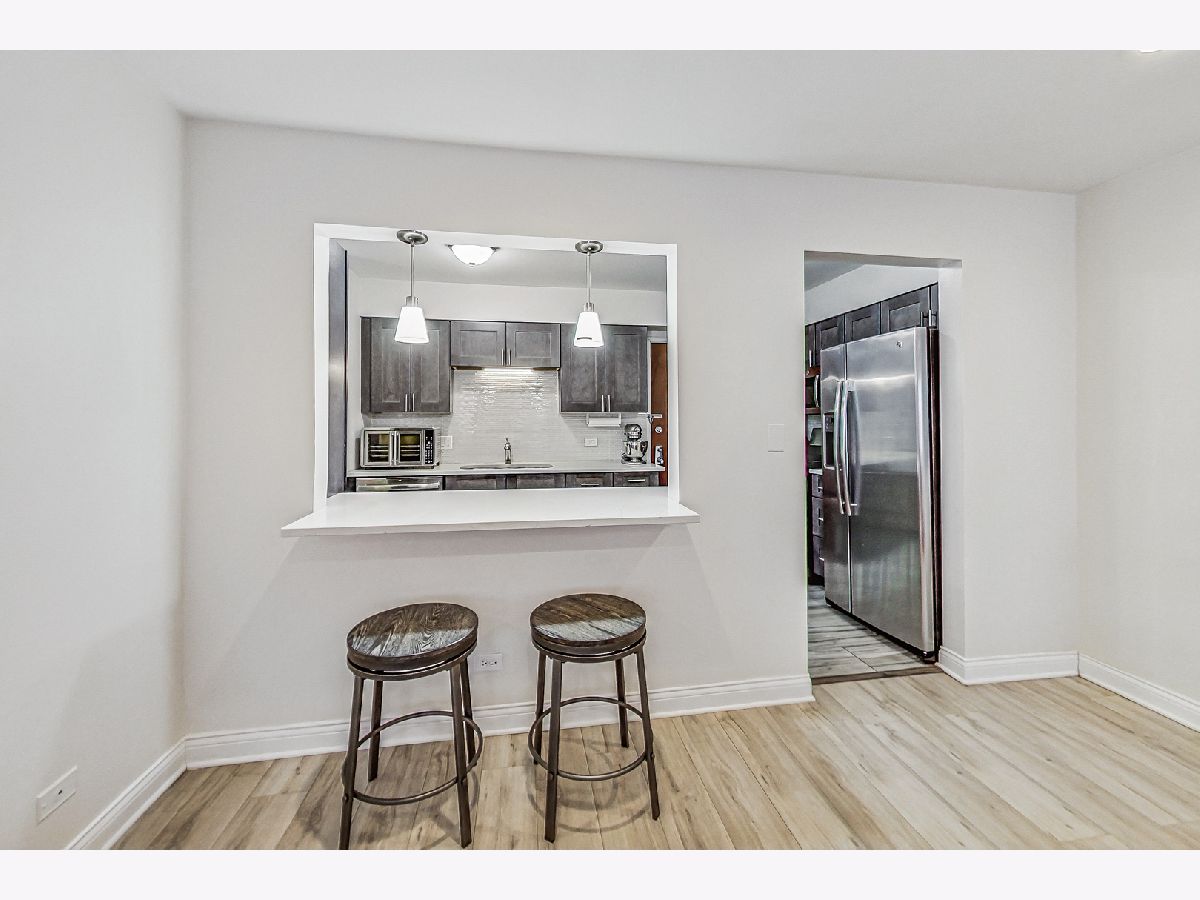 Tons of natural light fills this large corner unit. The kitchen is beautiful with quartz counters, decorative backsplash and all the modern updates. 2 large bedrooms and 2 full updated bathrooms make this the perfect place. Units like this are rarely available and it comes with 1 garage space, additional street parking also available. Assessment includes heat, gas and water. Close to I-90, I-294, Ohare Airport, The Blue Line Cumberland Station. Close to shopping. Parking space #93, Storage #44