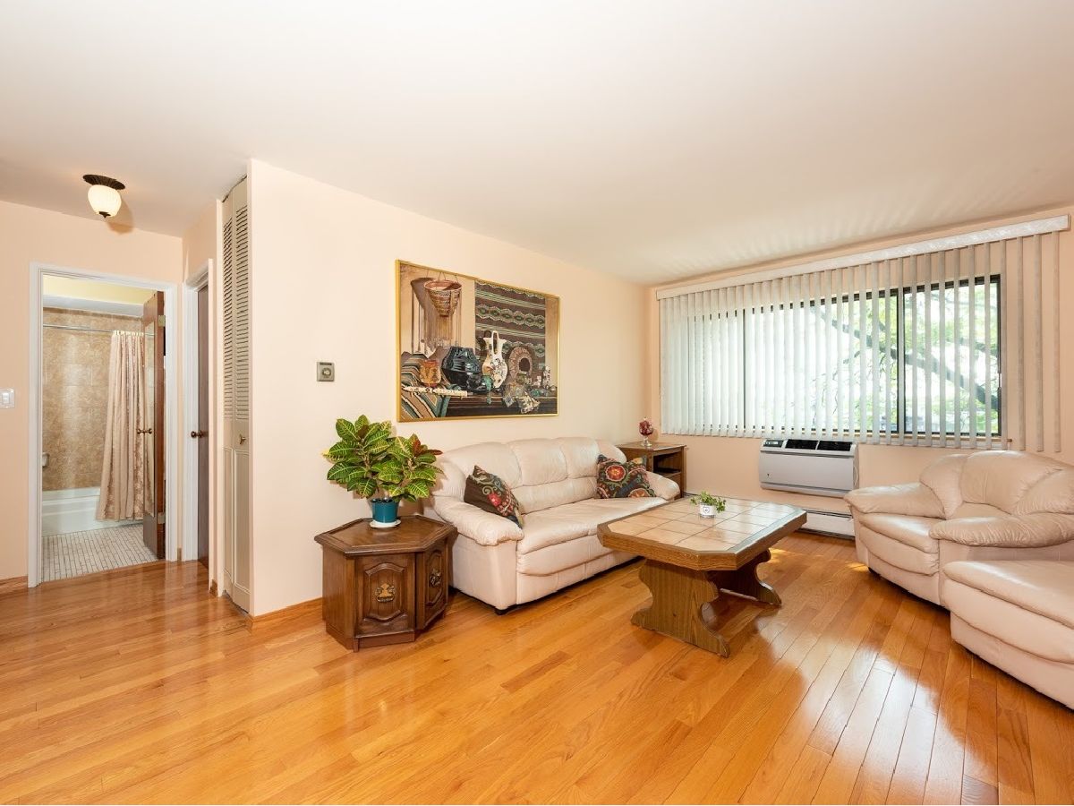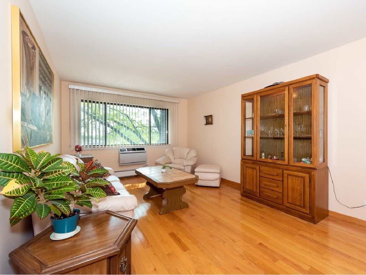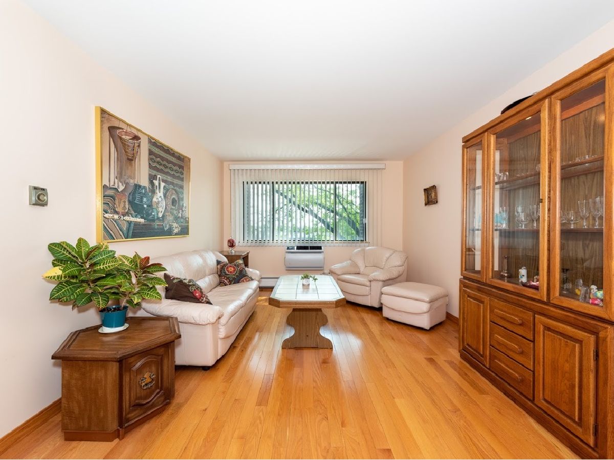 Great condition, move-in ready 3rd floor condo in excellent location, near public transportation, stores, restaurants, banks, Blue Line/CTA station, I-90, O'Hare and Forest Preserve. Nicely upgraded with beautiful hardwood floors and oak baseboards throughout except the kitchen. Bright and inviting living room has large window for providing a lot of natural light. Dining room connects nicely with the living room for easy living and entertaining. Kitchen has refinished wooden cabinetry and new stove. Large bedroom with wall to wall closet. Nice bathroom updated with ceramic tile walls and tub surround. Unit has a lot of closets and new wall AC unit in the living. Unit comes with one garage parking space. Easy street parking in front. Well maintained building. Amenities include coin laundry, storage lockers, hospitality room and sundeck. Reasonable assessment fee includes everything but electric. Pet friendly. Very nice place in one of the best locations in town!
