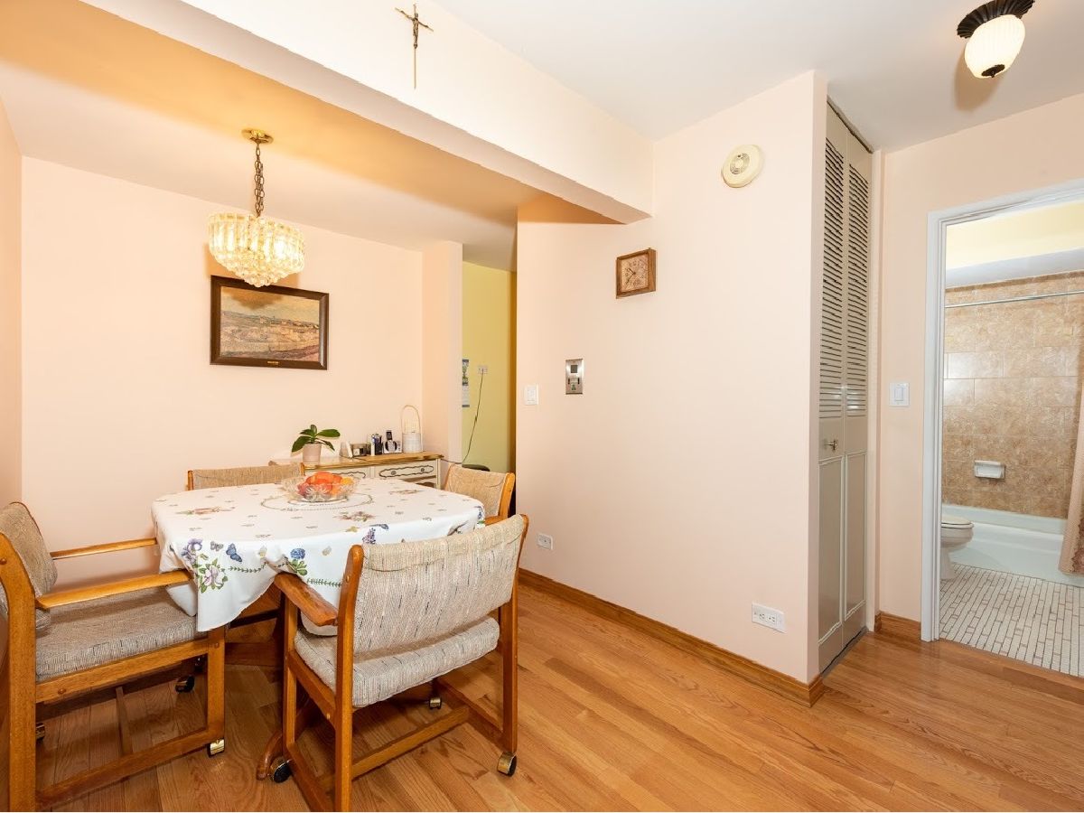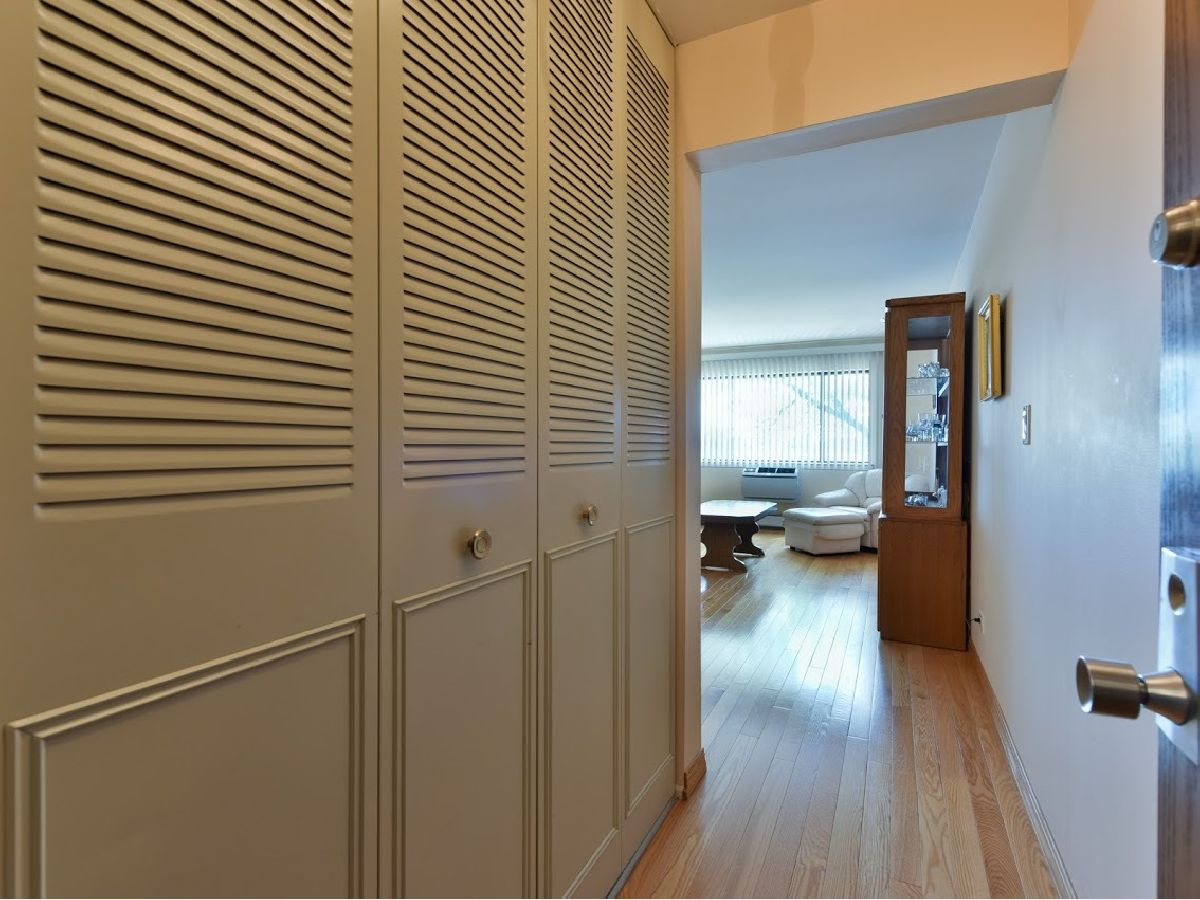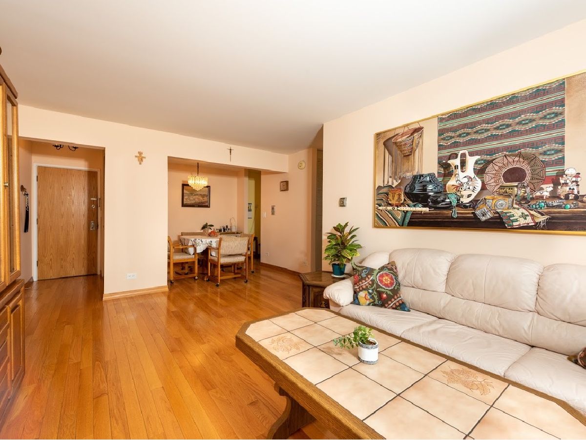 Great condition, move-in ready 3rd floor condo in excellent location, near public transportation, stores, restaurants, banks, Blue Line/CTA station, I-90, O'Hare and Forest Preserve. Nicely upgraded with beautiful hardwood floors and oak baseboards throughout except the kitchen. Bright and inviting living room has large window for providing a lot of natural light. Dining room connects nicely with the living room for easy living and entertaining. Kitchen has refinished wooden cabinetry and new stove. Large bedroom with wall to wall closet. Nice bathroom updated with ceramic tile walls and tub surround. Unit has a lot of closets and new wall AC unit in the living. Unit comes with one garage parking space. Easy street parking in front. Well maintained building. Amenities include coin laundry, storage lockers, hospitality room and sundeck. Reasonable assessment fee includes everything but electric. Pet friendly. Very nice place in one of the best locations in town!