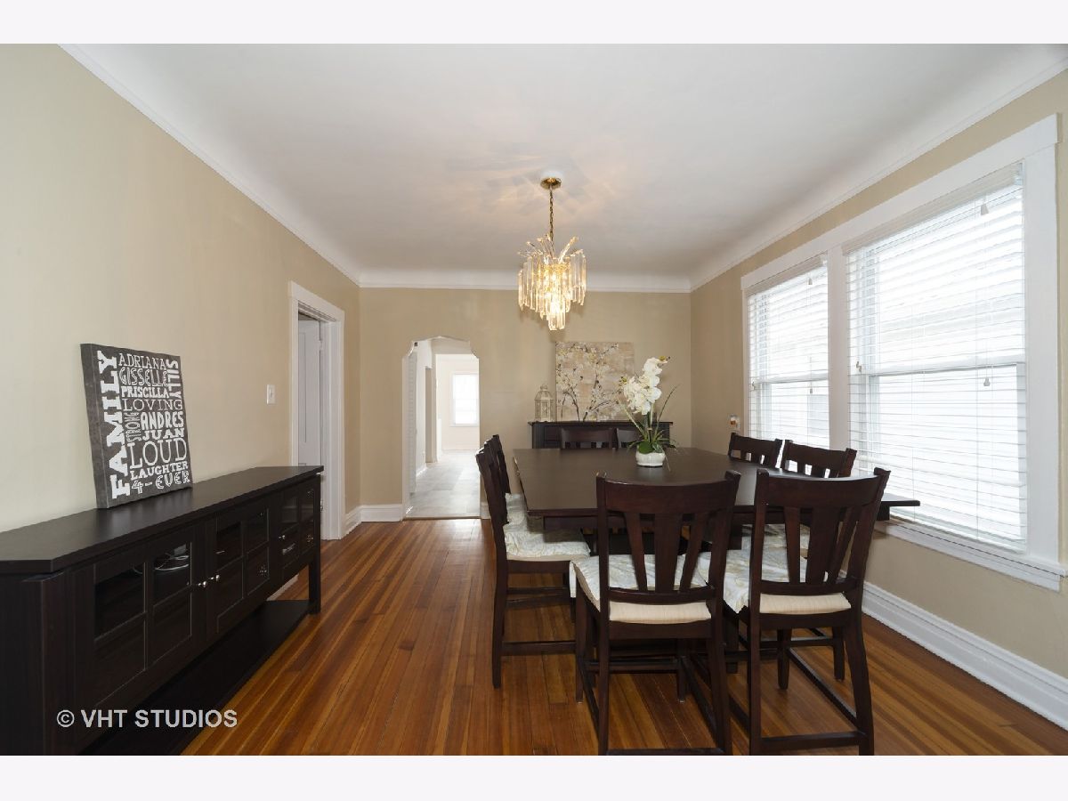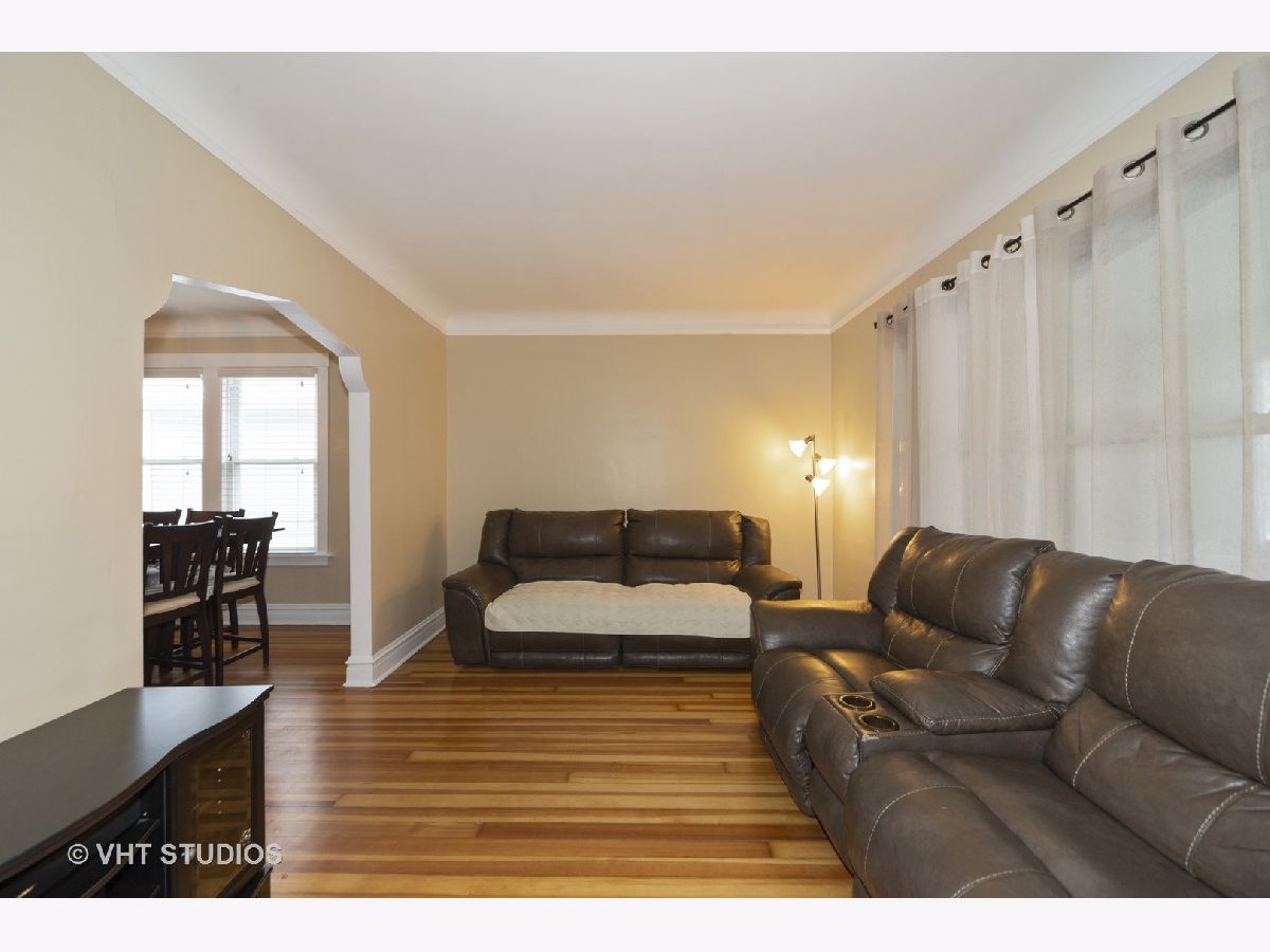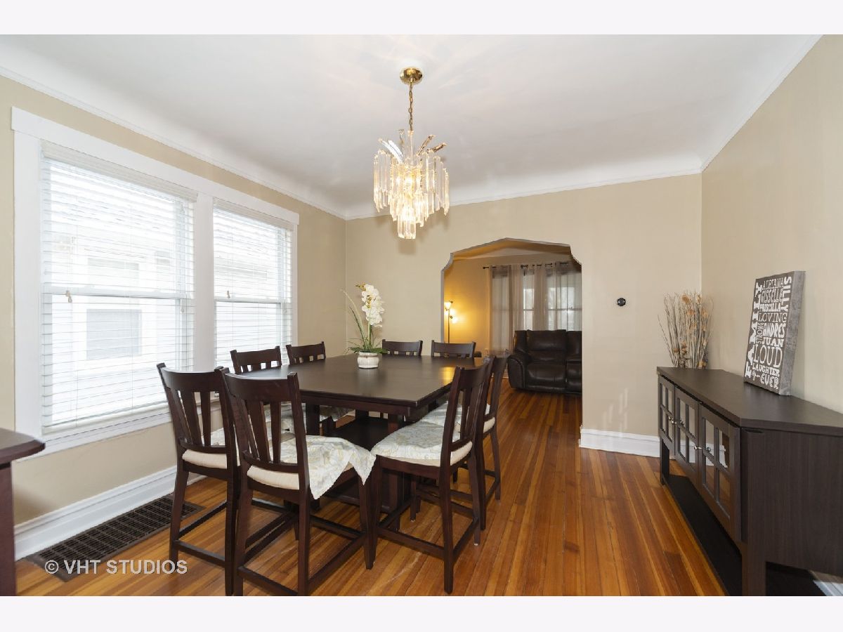 Welcome home to your quaint bungalow in a quiet corner of Mayfair! Drop off your coat and boots in the enclosed porch then enter the foyer of this freshly painted move-in ready starter home. The living room opens to the formal dining room with decorative plaster archways not to be overlooked. Easily accessible first-floor bedrooms and bathroom lead to the spacious kitchen, which features an additional eating area with soaring ceilings above. This space also serves well as an ideal work/creative spot with natural light absolutely washing the bright white walls in the morning. Imagine coffee here before the day begins - what an energizing way to start the day! High ceilings in the basement provide plenty of room for storage and acts as a blank canvas, combined with the unfinished attic, for future expansion plans. Sitting on an oversize lot with a recently updated 2.5 car garage (roof and gutters 2019) the backyard allows for an open feel as you relax on the brick paver patio. Other recent updates include refrigerator (2019), stove (2018), dishwasher (2017), furnace (2018), AC Freon (2018). House is equipped with the Nest bundle (Doorbell, Thermostat, Hub, Exterior Camera). A fenced park right at the end of the block is a prime place to let the dog run. Easy access to the expressway, CTA bus/train, Metra make this an ideal commuter's choice. With nearby restaurants and breweries, this home is ready right now and has the flexibility to grow with you in the future!