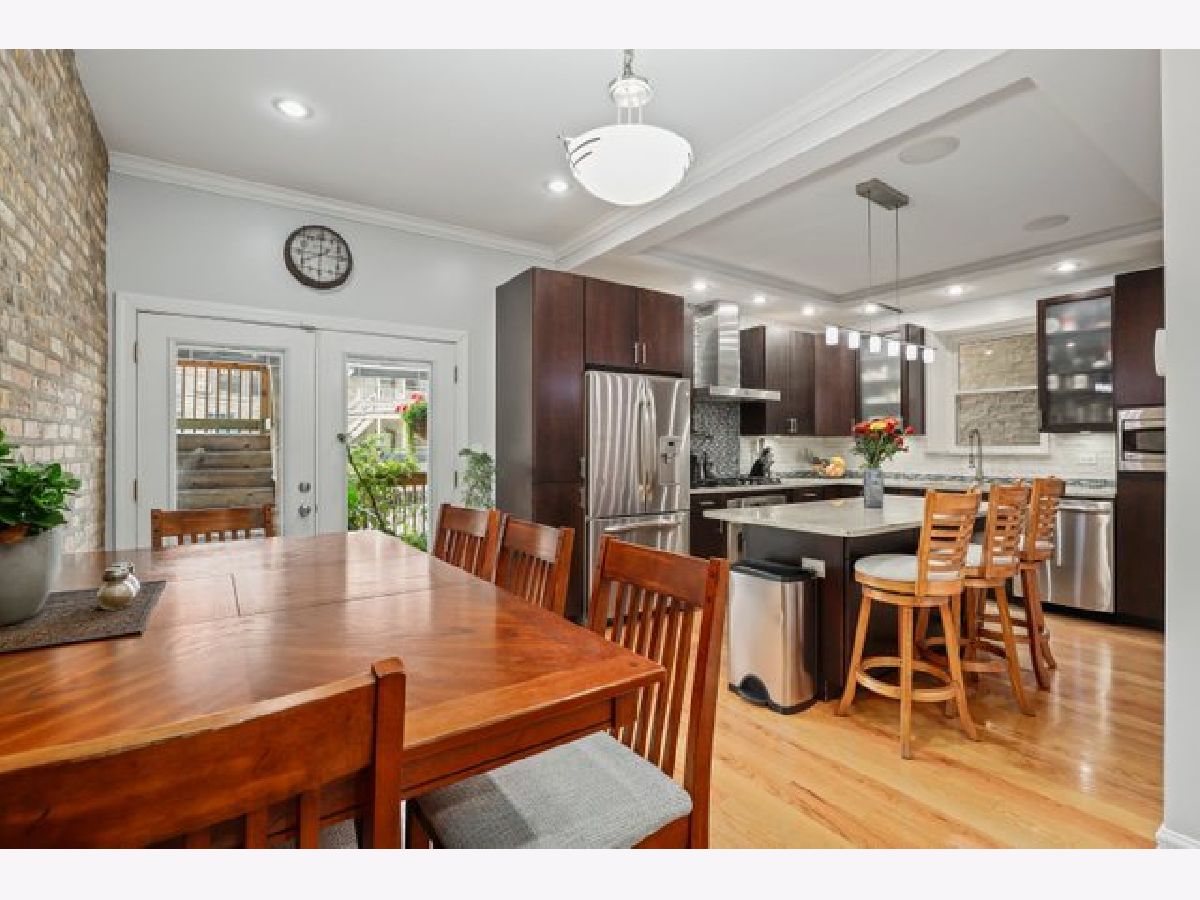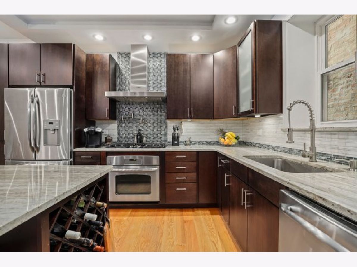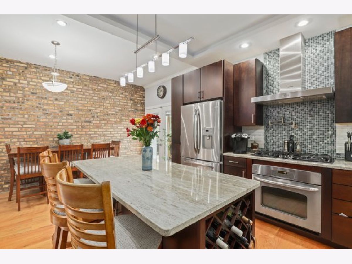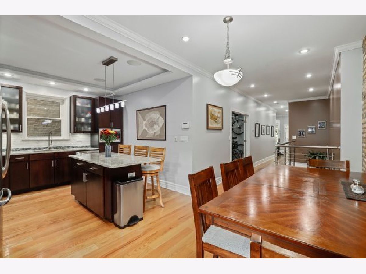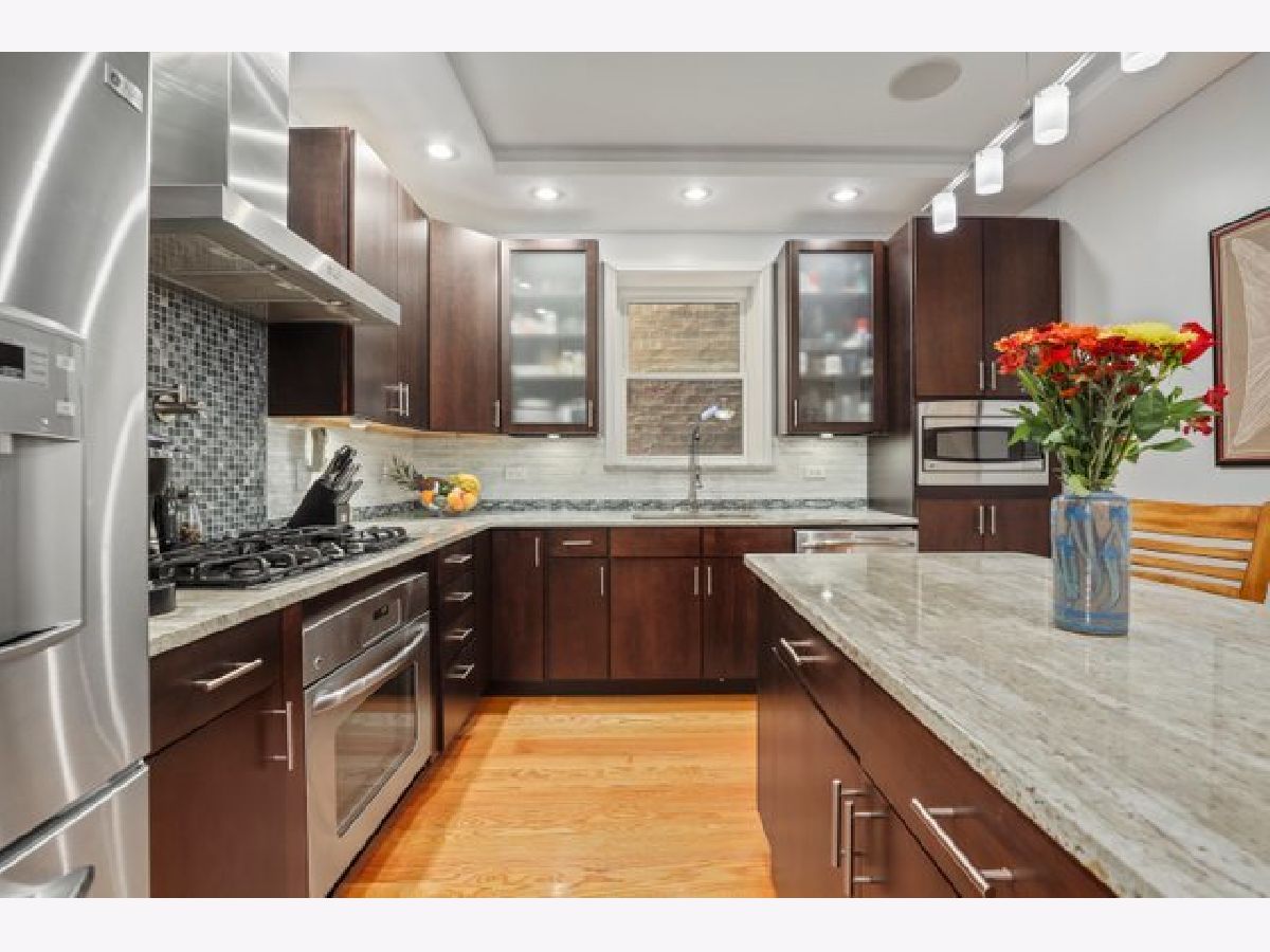 Contemporary 4 bedroom, 3 bath on quiet street in the heart of Uptown. Main level has exposed brick in the kitchen and hardwood floors throughout, living room with gas fireplace, two bedrooms and 2 full baths with a Jacuzzi tub. Kitchen has custom cabinets, all stainless steel appliances, granite counters, range hood, extensive cabinet space with split pantry, granite topped island that allows bar stools and still plenty of space for large dining table. Expansive private deck. Lower level has high ceilings, spacious family room and heated floors. Primary bedroom with en suite bath, vanity with 2 sinks, 2 separate showers, and a Jacuzzi tub. Office/small bedroom, laundry with side by side Bosch washer/dryer and storage. Wet bar with wine cooler, cabinetry and granite counter. Large storage room plus additional storage in adjacent common basement. All bedrooms have organized closets, Gated parking with tandem space for 2 cars. 5 minutes to Red Line, Lake Shore Drive, parks, beach, Montrose harbor, dog park, retail and restaurants. Mariano's a mile north, Jewel half mile south. Blocks to Aragon Ballroom, Green Mill, and Baton Club.