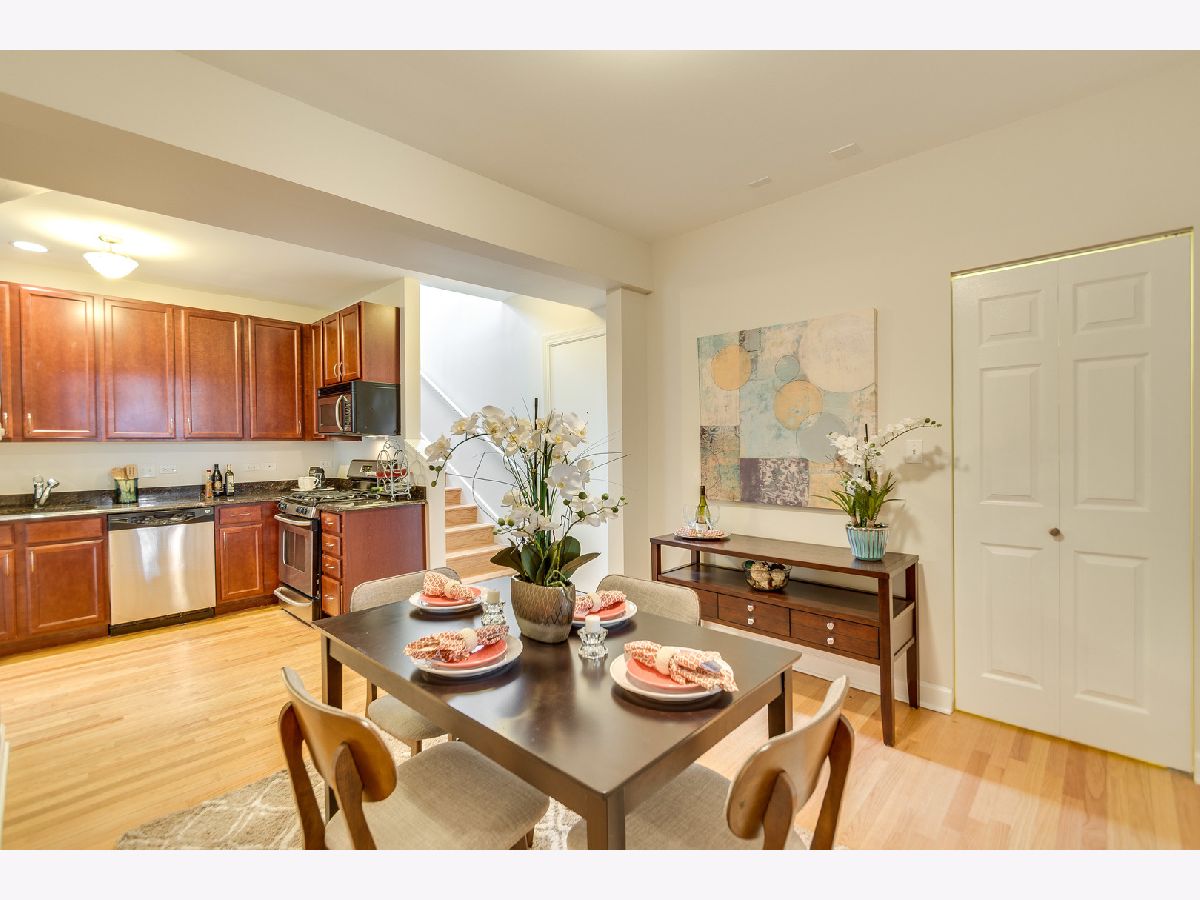 Large contemporary 2 bedroom/2 bath duplex on a tree lined street in albany park! Bright and expensive windows flood the unit with natural light.. This open and airy floorplan has an updated kitchen, SS appliances, Granite countertops, custom backsplash, Hardwood floors throughout and built out closets. Kitchen steps out to communal deck. Great for entertaining! Close to Horner Park, Starbucks, tons of restaurants and shopping AND only 1 block from the brown line train stop. Parking is available to rent for $100 across the street.
