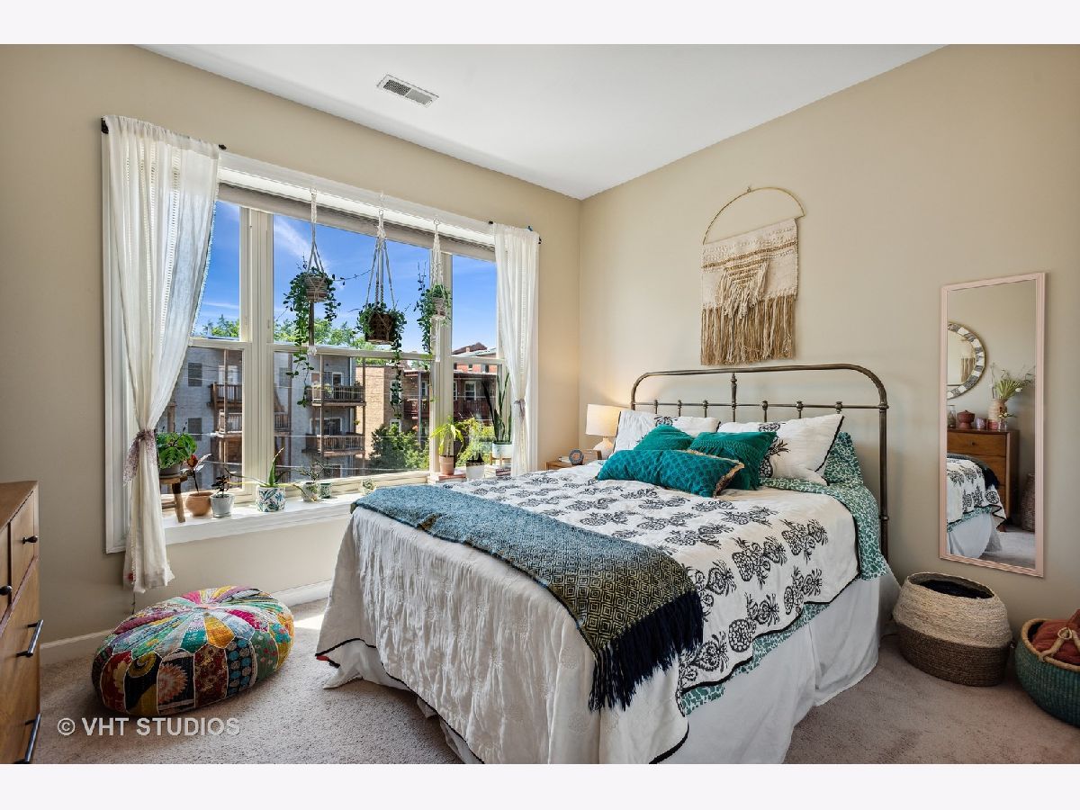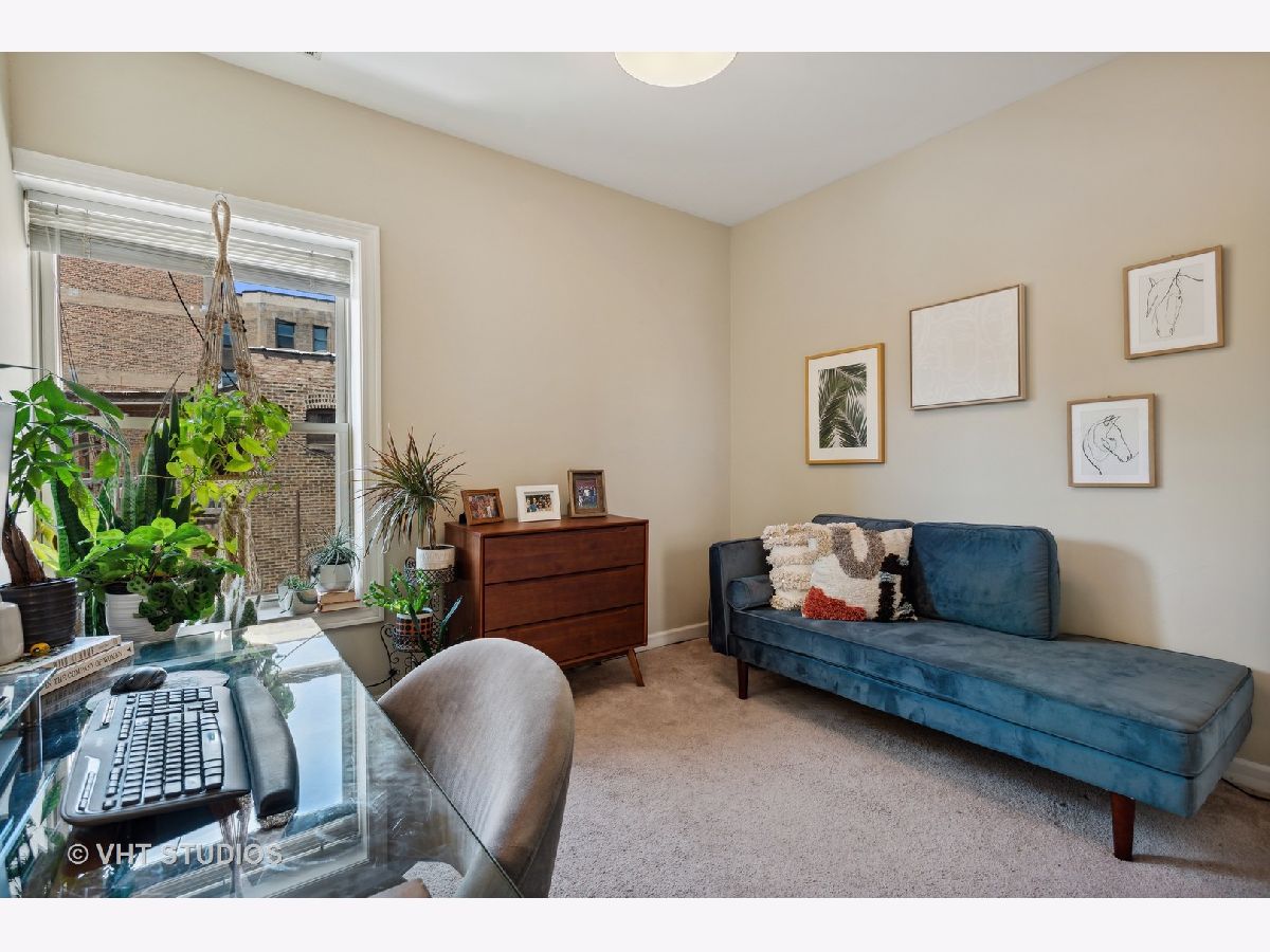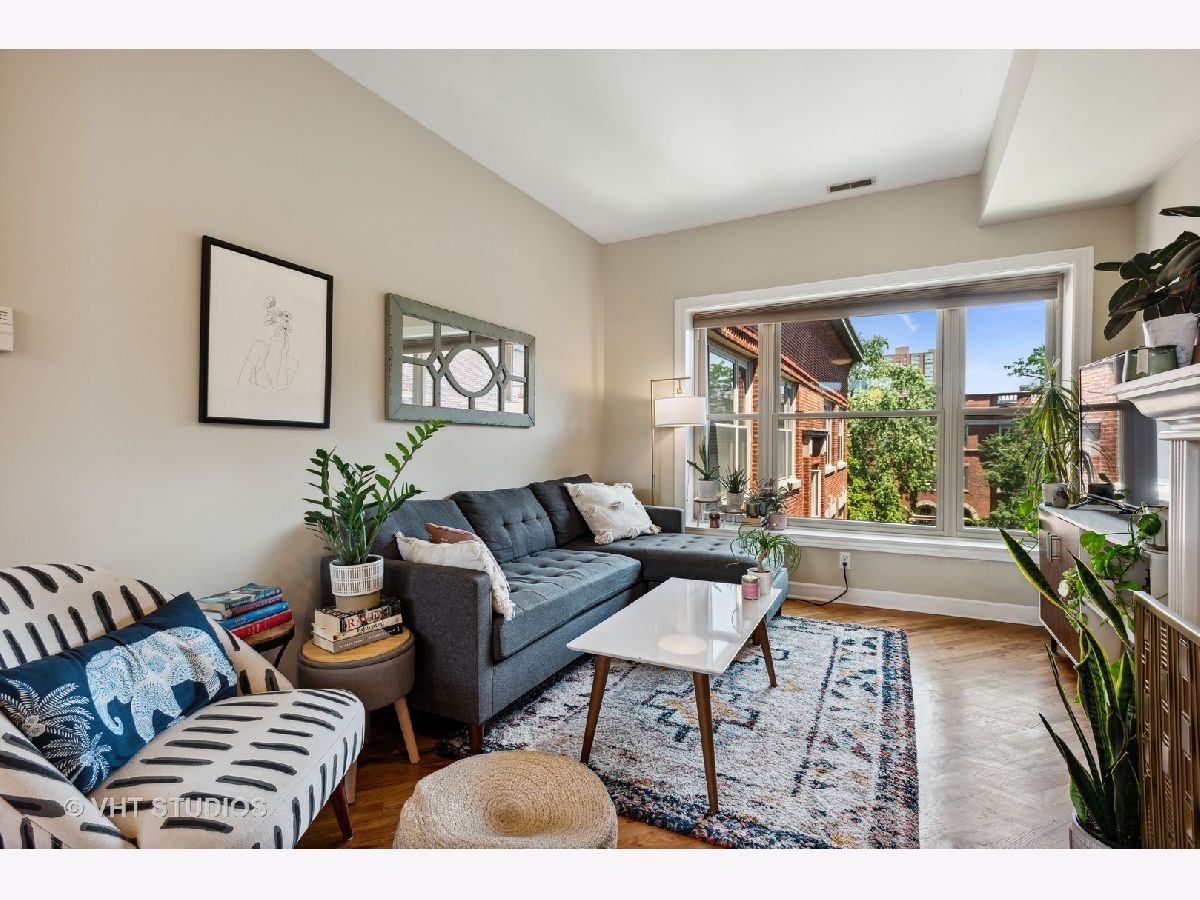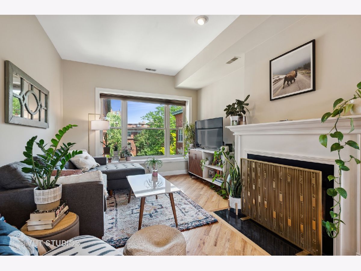 Gorgeously updated boho-chic condo in the heart of Uptown! Top floor unit, drenched in sunlight, overlooking the lush and manicured courtyard. Open concept layout for entertaining. Beautifully updated kitchen with tons of cabinet space, newly painted cabinets (2020), and crisp white quartz countertops (2020) including a large breakfast bar and buffet sidebar. Stainless steel appliances (2019) and in-unit laundry. Thoughtfully updated bathroom with new vanity (2020) and medicine cabinet (2020) and wallpapered accent wall (2020). Diagonal hardwood floors add additional charm throughout the living areas. Gas fireplace for you to cozy up to at night. Two generously sized bedrooms with large closets with organizers. Spacious back balcony where you can BBQ, plant herbs, and retreat and relax after a long day. Wonderfully maintained front courtyard for you and your furry friends (pet-friendly!) to relax. Central HVAC. Dedicated deeded exterior gated parking space. Very large storage closet is dedicated to this unit. Bike storage in the basement. Walk to many good restaurants, stores, and the lake. Easy access to Lake Shore Drive. This one is too good to pass up!