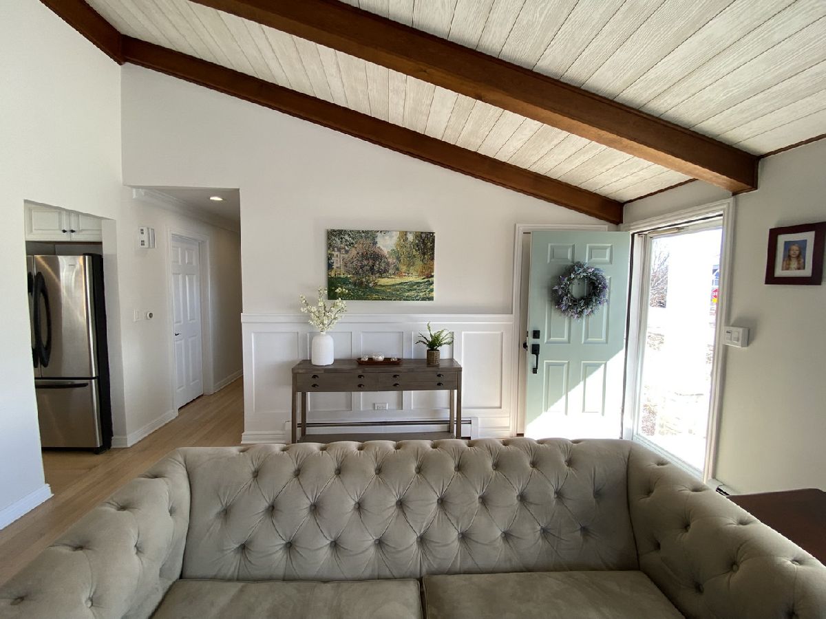 This one of a kind, updated 3 bedroom, 2 bath RANCH offers charm and character in a prime Northwest Downers Grove location. House originally built and owned by local architect, this home features vaulted ceilings with wood beams and a 12-foot stone, three-sided, wood-burning fireplace. Updated throughout, large kitchen with tons of countertop space and cabinets, beautifully refinished floors, and a new roof, November 2024. Attached 2 1/2 car garage with tons of storage space. Expansion over garage for addition space possible. Backyard offers a fire pit area and also a newer deck with a pergola. Two blocks to Hoopers Hollow, 4 Blocks from train and highly rated district 58 grade schools and Downers Grove North High School.