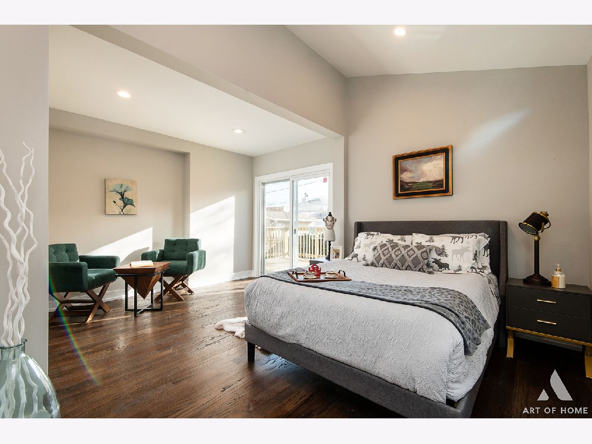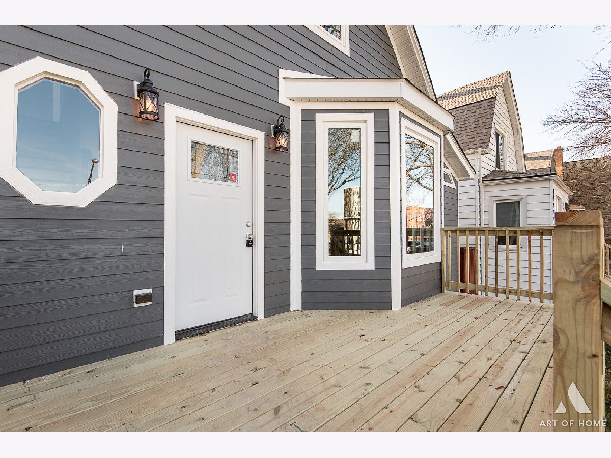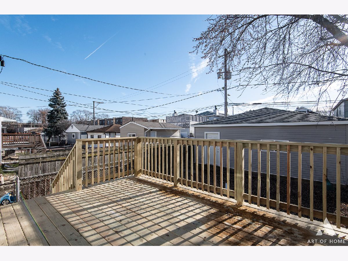 Introducing a truly remarkable property: 2 story home with inviting front porch, spacious deck and private balcony, detached 2 car garage and fenced lot! Meticulously rehabbed , this home has been transformed with a unique floorplan that caters to modern living and optimizes space in the most exceptional way. As you step inside the foyer, you'll be greeted by the bright and open first floor with eat in table kitchen, living room, dining room with coffee- tea nook, everything connected for perfect family gathering or entertaining creating a warm and inviting space, Master Bedroom is your own oasis with seating area, full bathroom, large walk in closet plus private access to the deck. There is also additional full bath on first floor and walk in coat closet for convivence. The kitchen boasts clean modern lines, ample storage with separate pantry, stainless steel appliances, and a plenty of space for eat-in table. There is also access to your deck and backyard. Whole first floor has hardwood floor. The upper level features 3 spacious bedrooms, One has private balcony overlooking backyard. There is also a brand new bathroom with tub/shower combo. The lower level holds another delightful surprise. Here, you'll find room very spacious Family Room with half bath, walk in closet plus a fully functional large laundry/mechanical room for additional storage. This home maximizes the living space, providing an ideal setting for you to move in without any additional work. Thanks to the 2 story design with a oversized windows with additional pictures windows, natural light floods whole house creating an inviting and comfortable atmosphere. Garage offers 2 car parking plus there is also a landing pad for additional parking. Located in the highly sought-after area, this property offers access to commute, parks, restaurants, and stores. This is an exceptional opportunity to own an move-in-ready home in a prime location.